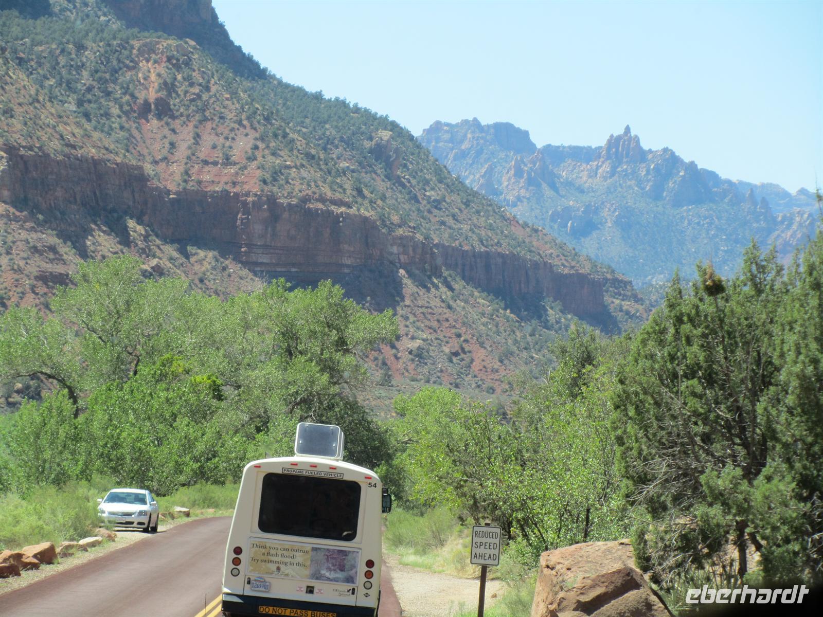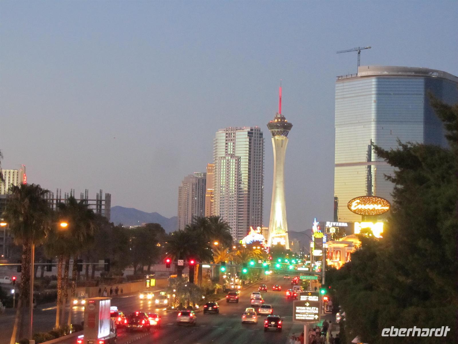 Heute führt unsere Reise durch den Zion Nationalpark weiter nach Las Vegas. Der Nationalpark ist komplett anders, als die Parks die wir vorher besichtigt haben. Er wirkt schon eher europäisch. Wir fotografieren den berühmten Schachbrettfelsen und weiter geht die Fahrt nach Las Vegas und die Temperaturen steigen stetig an. Mittlerweile haben wir an die 40 Grad. Am frühen Nachmittag stoppen wir kurz in einem Outletcenter, was die Gäste dankend für eine kleine Shoppingtour annehmen. Danach startet das Erlebnis Las Vegas. Wir checken im Treasure Iseland ein. Nach dem Abendessen besichtigen wir gemeinsam mit Margeruite die Metropole. Wir starten an unserem Hotel und schauen uns die Piratenshow an. Danach gehts zum Wynn Hotel, Ventian, Luxor und einigen weiteren Hotels. Wir sehen die tolle Wassershow vor dem berühmten Bellagio Hotel und schauen uns den "Golden Nugget" an. Den Abschluss bildet eine LED Show auf der Freemont Street. Gemeinsam mit einigen Gästen fahre ich kurz vor Mitternacht noch auf das höchste Gebäude der Stadt, den Statosphere Tower. Dies ist ein beeindruckender und gelungener Abschluss der Nachttour durch Las Vegas.