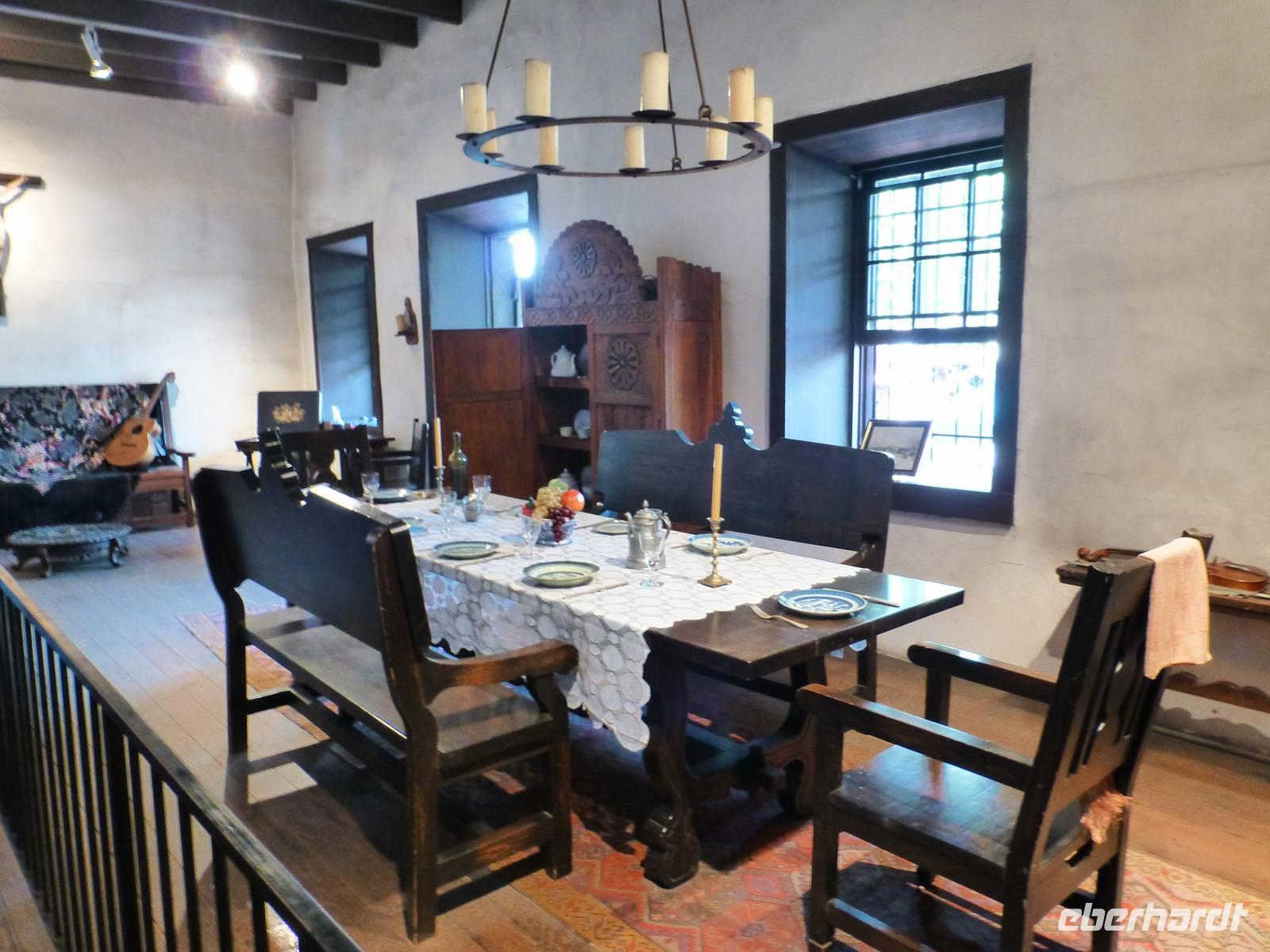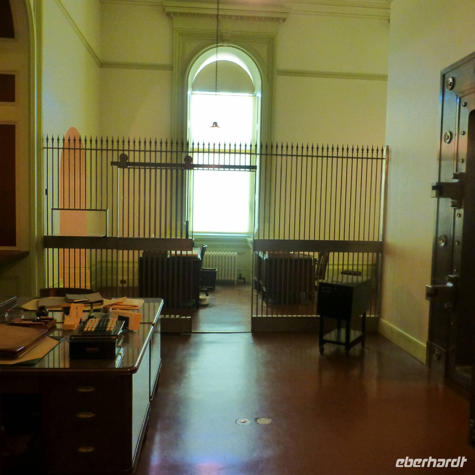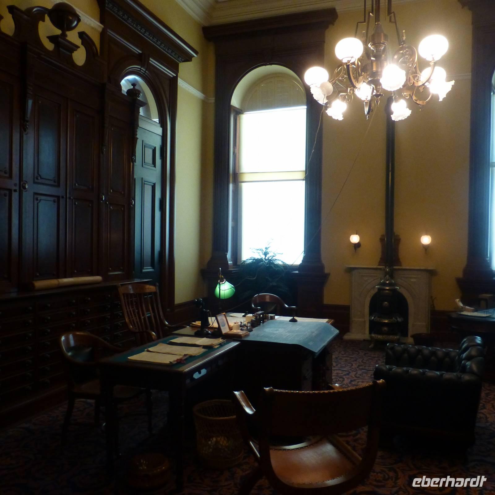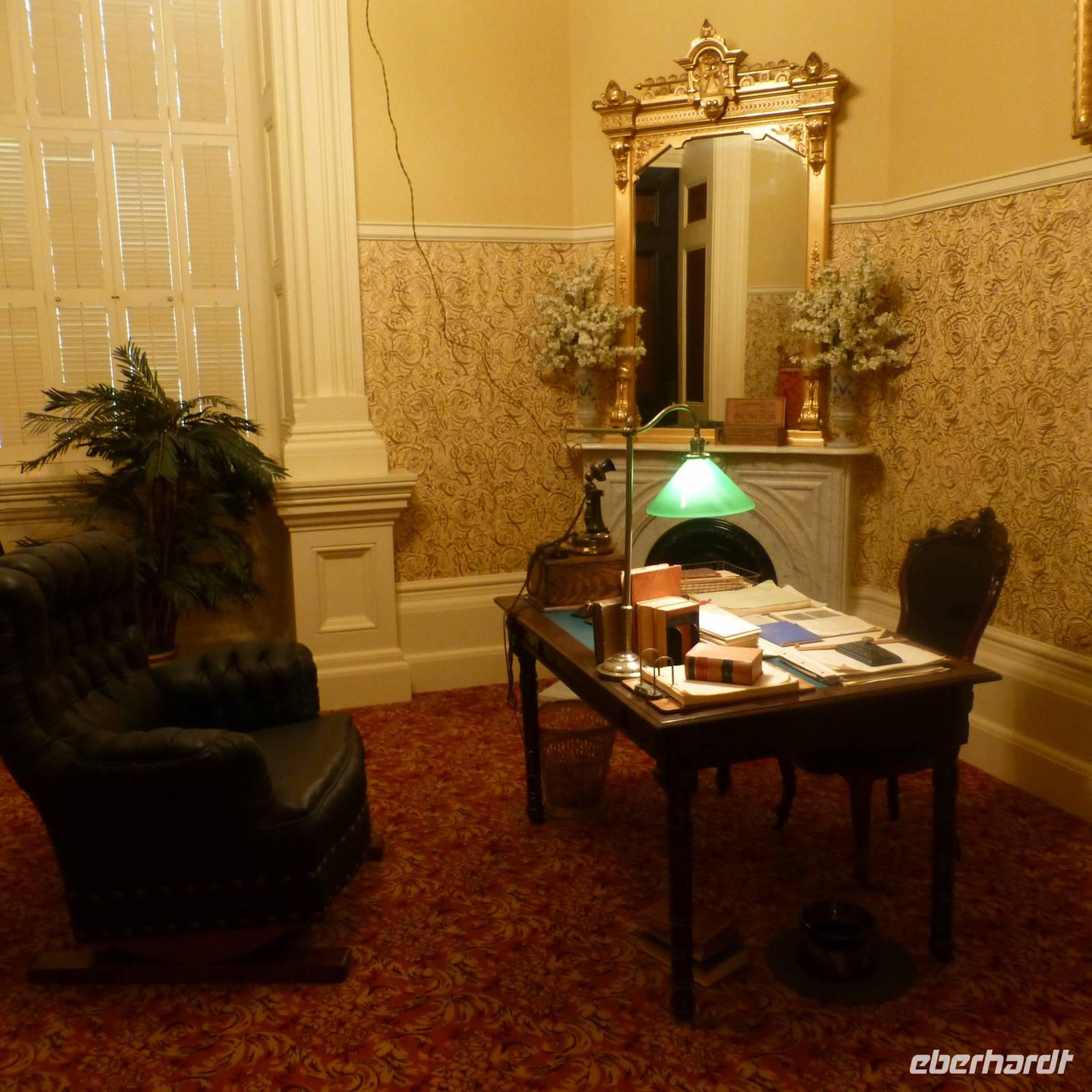 Als wir am heutigen Morgen erwachen, ist es zum ersten Mal auf der Reise richtig kalt-frisch draußen. Aber das ist auch kein Wunder, haben wir die letzte Nacht doch im Tal umgeben von bewaldeten Bergen verbracht. Entgegen der letzten Tage fahren wir heute schon früher ab und begeben uns in Richtung Sacramento, Brians Heimatstadt. Nach rund vier Stunden verdichtet sich der Verkehr - wir haben die kalifornische Hauptstadt erreicht. Beim Capitol steigen wir aus. Wir am Flughafen oder jedem anderen Regierungsgebäude werden wir auf Waffen o.ä. Gegenstände durchsucht und können alsbald das wunderschöne Capitol von innen besichtigen. Schon der Blick hoch zur Kuppel ist toll, den das Licht, das hier hereinfällt, strahlt so schön auf die gelb verzierten Kuppelwände. Das Erdgeschoss ist wie eine Art Museum. In verschiedenen Räumen sind die Büroeinrichtungen von 1902 bis 1906 nachgestellt. Immer wieder laufen wichtige Geschäftsleute mit Handy am Ohr. In der obersten Etage ist während unseres Aufenthalts eine Senatssitzung, an der wir Besucher auch teilnehmen können - natürlich müssen wir dabei mucksmäuschenstill sein aber wir haben ja in der USA ja eh nichts zu sagen;-) und interessant ist es allemal.