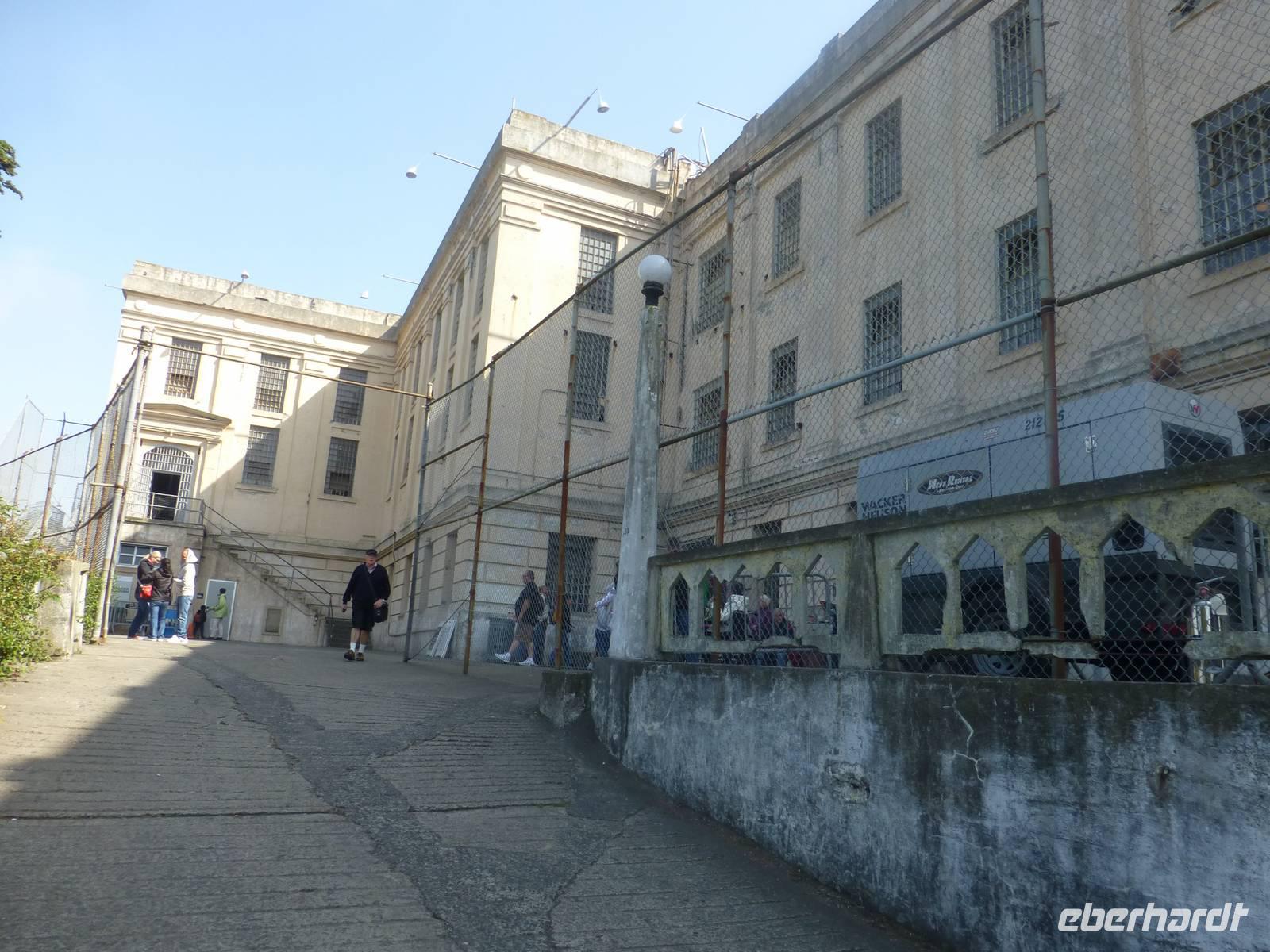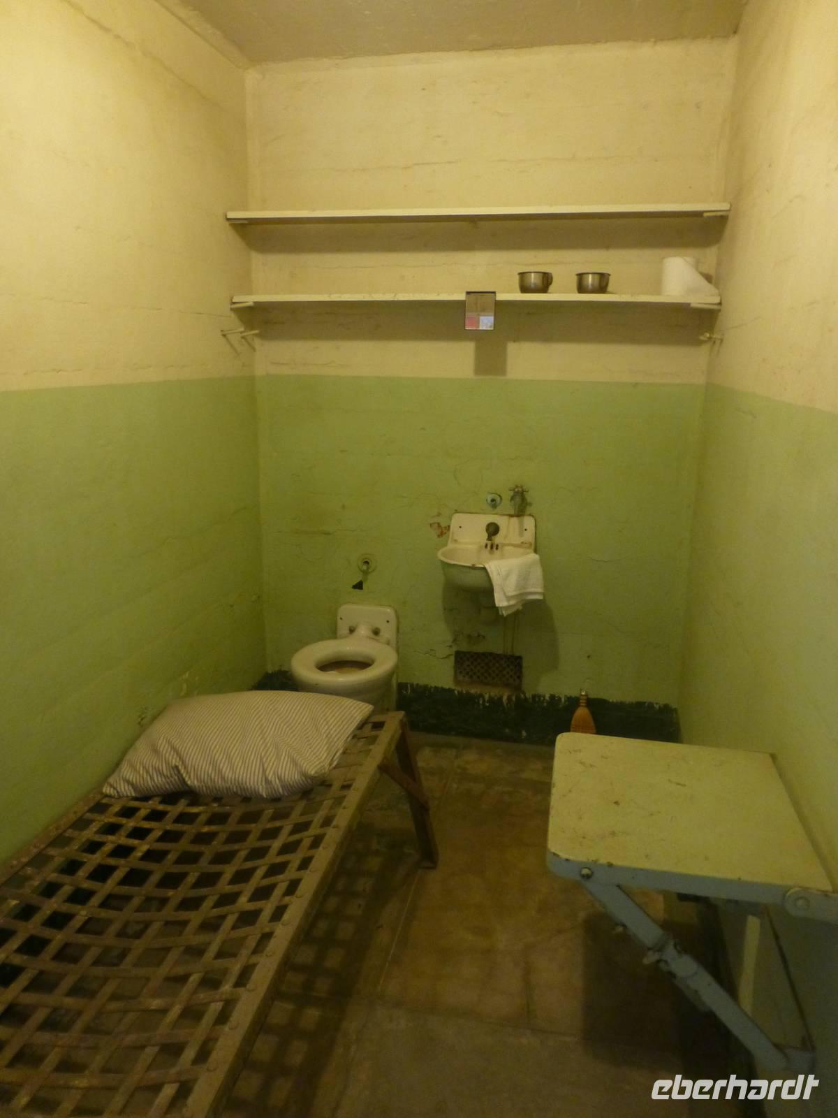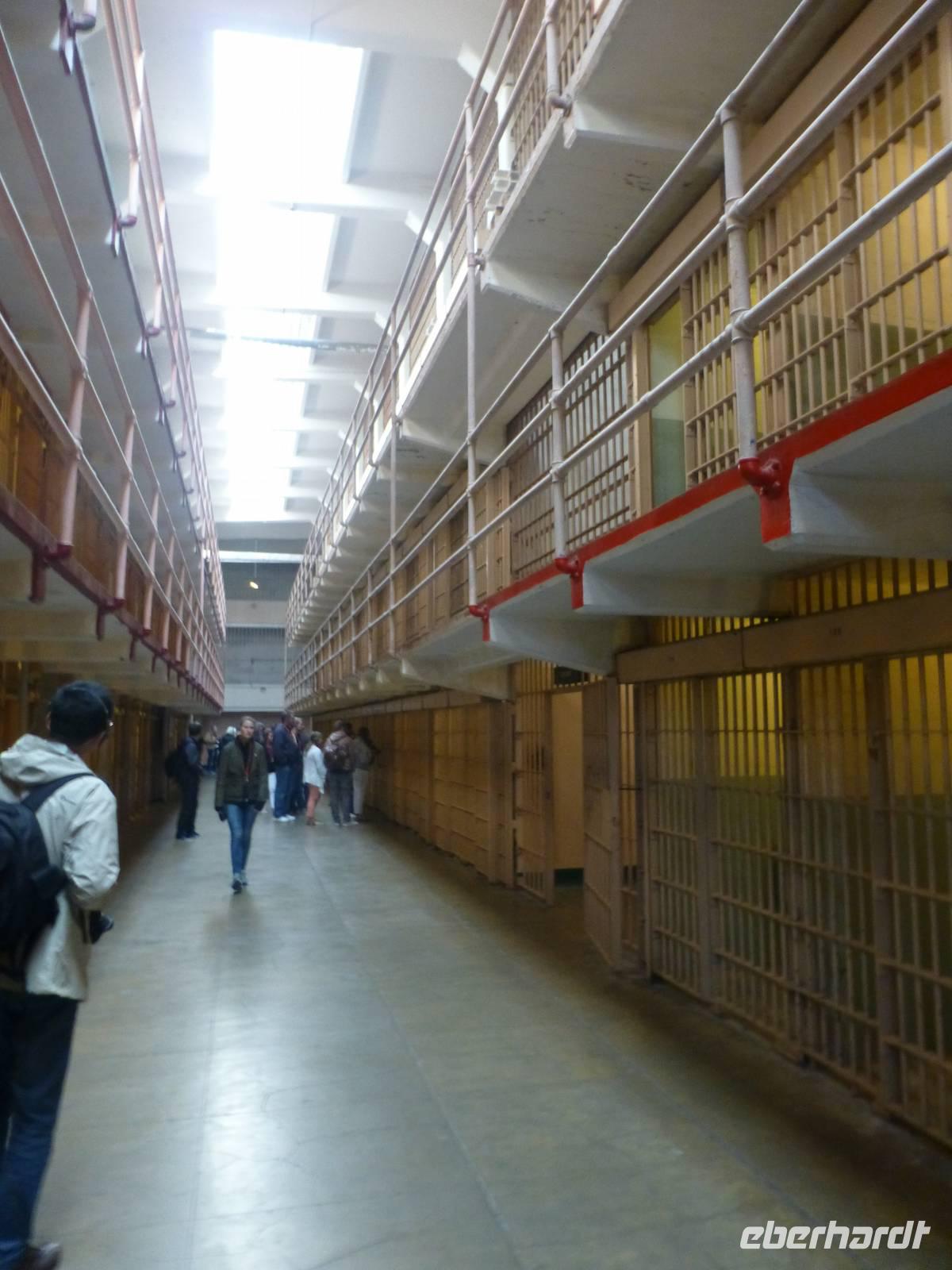 Nachdem wir mit der Alcatraz-Fähre übergesetzt haben, müssen wir erst einmal einen steilen Berg bewältigen, bevor das Gefängnisgebäude erreichen und wir unsere Audio-Guides in deutscher Sprache erhalten. Die Führung, die wir nun erhalten ist wirklich sehr eindrucksvoll. Gefängniswärter und ehemalige Gefangen berichten von ihrem Alltag in diesem Gefängnis und der Erzähler versetzt uns mit seiner Stimme in die Gefühl, als würden wir selber einen Tag den Knastalltag erleben. So eindrucksvoll es auch ist, es bringt aber auch ein düsteres Gefühl in uns hervor und den Wunsch, so etwas nicht einmal selber erleben zu müssen. Als wir uns vor dem Gebäude wieder treffen, müssen wir das Erlebte und Erfahrene erstmal miteinander diskutieren, um ein wenig zu verarbeiten.