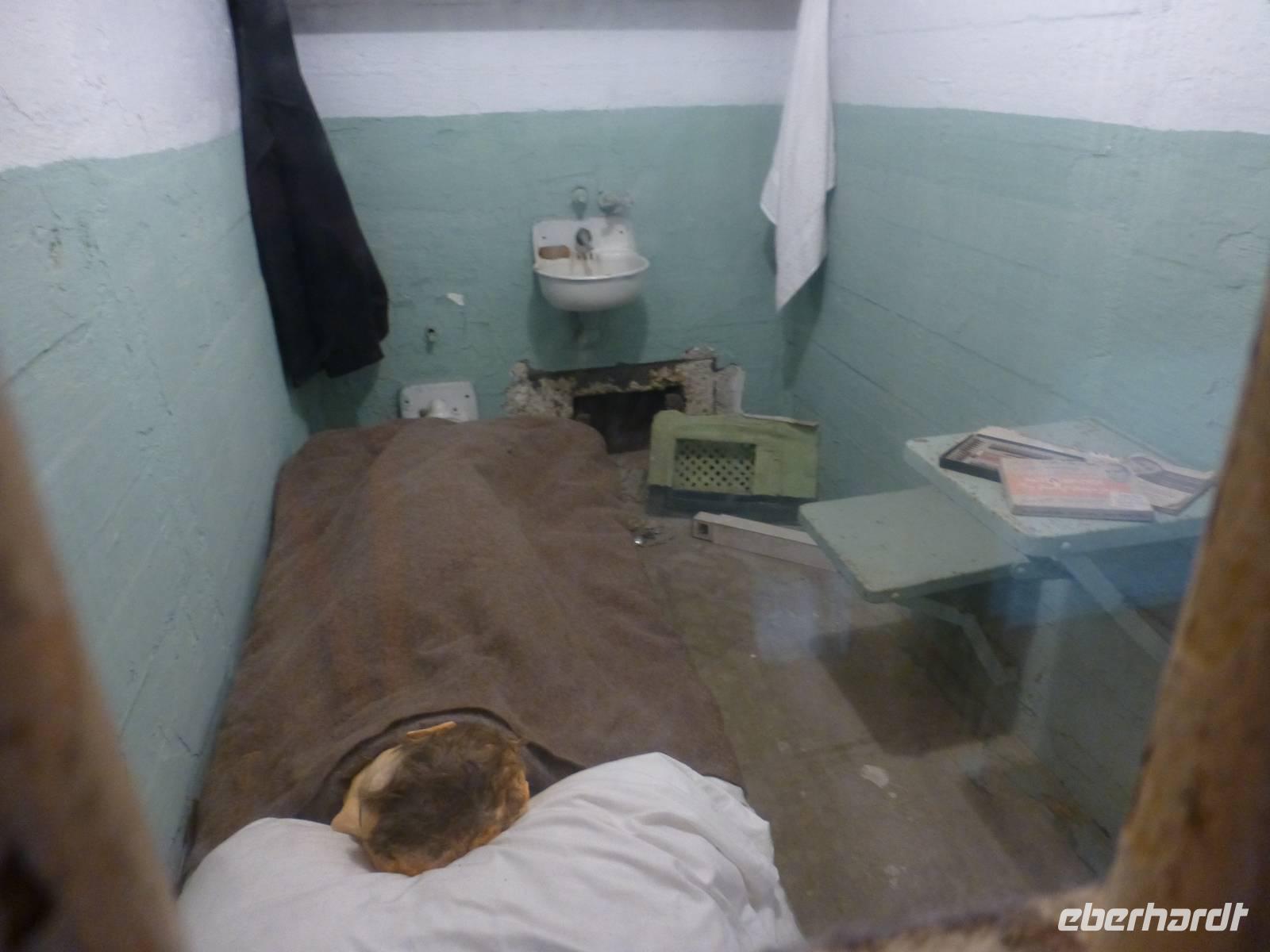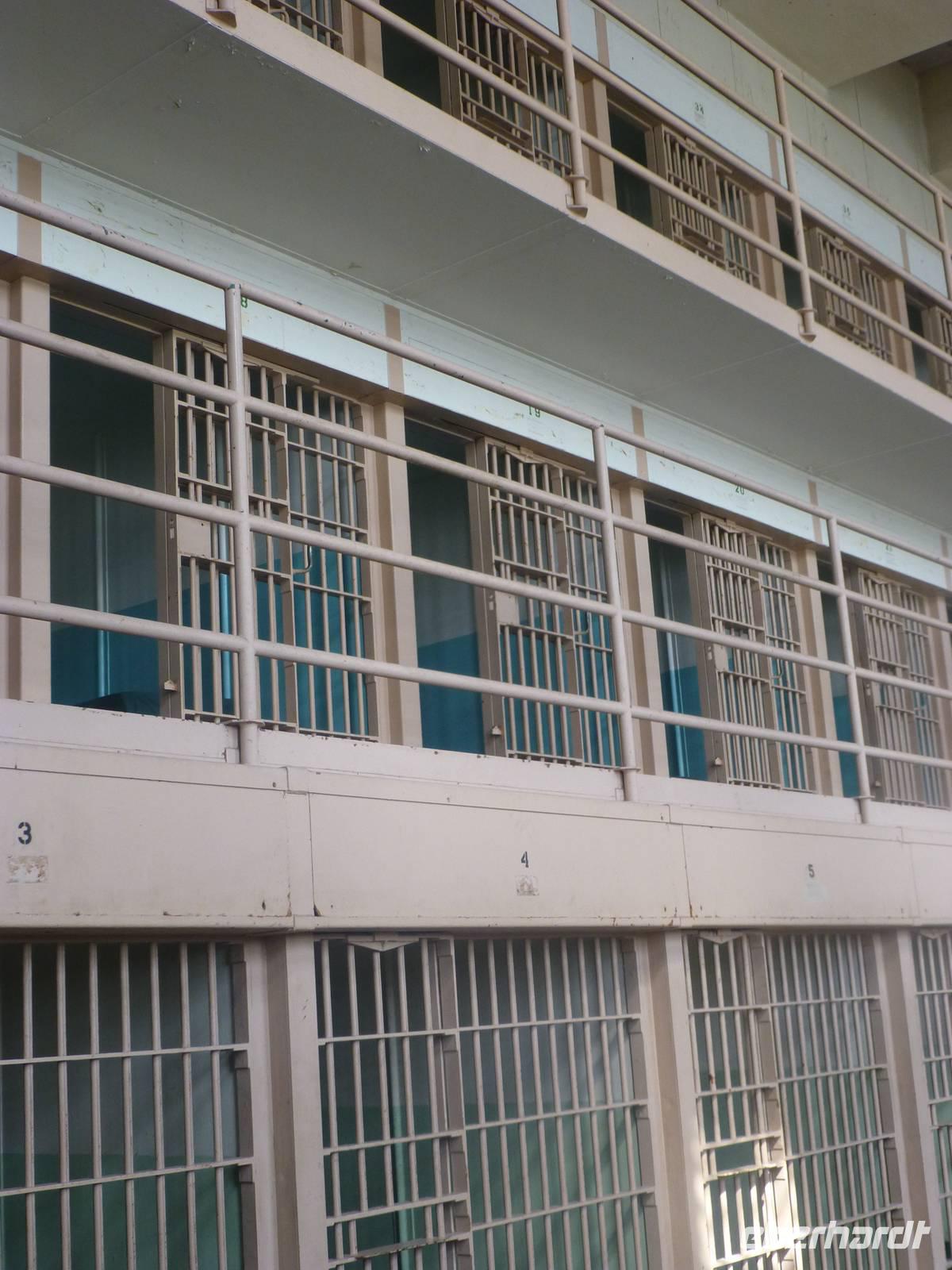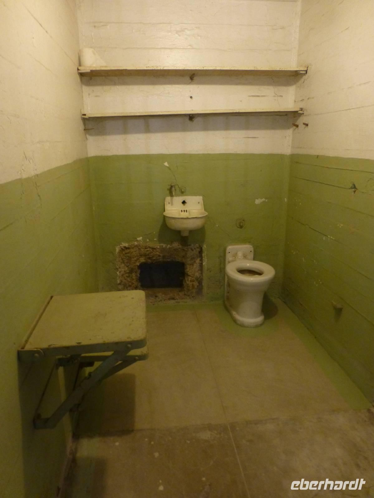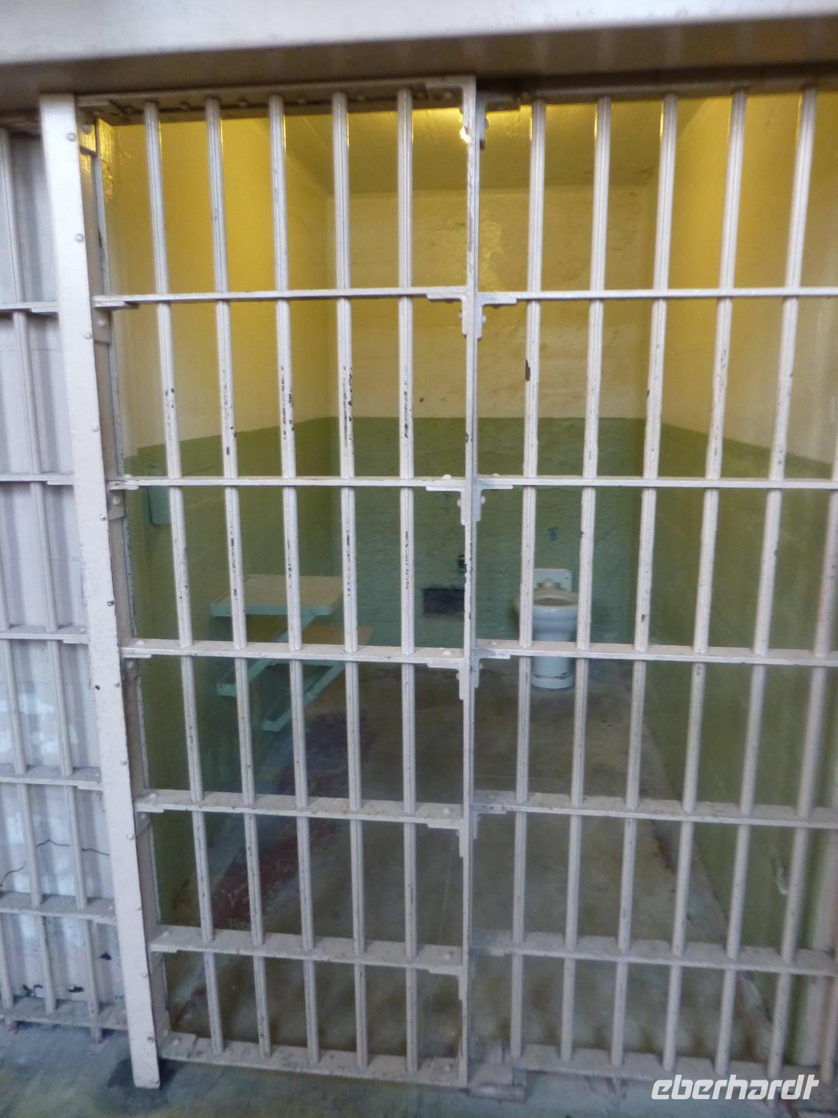 Nachdem wir mit der Alcatraz-Fähre übergesetzt haben, müssen wir erst einmal einen steilen Berg bewältigen, bevor das Gefängnisgebäude erreichen und wir unsere Audio-Guides in deutscher Sprache erhalten. Die Führung, die wir nun erhalten ist wirklich sehr eindrucksvoll. Gefängniswärter und ehemalige Gefangen berichten von ihrem Alltag in diesem Gefängnis und der Erzähler versetzt uns mit seiner Stimme in die Gefühl, als würden wir selber einen Tag den Knastalltag erleben. So eindrucksvoll es auch ist, es bringt aber auch ein düsteres Gefühl in uns hervor und den Wunsch, so etwas nicht einmal selber erleben zu müssen. Als wir uns vor dem Gebäude wieder treffen, müssen wir das Erlebte und Erfahrene erstmal miteinander diskutieren, um ein wenig zu verarbeiten.