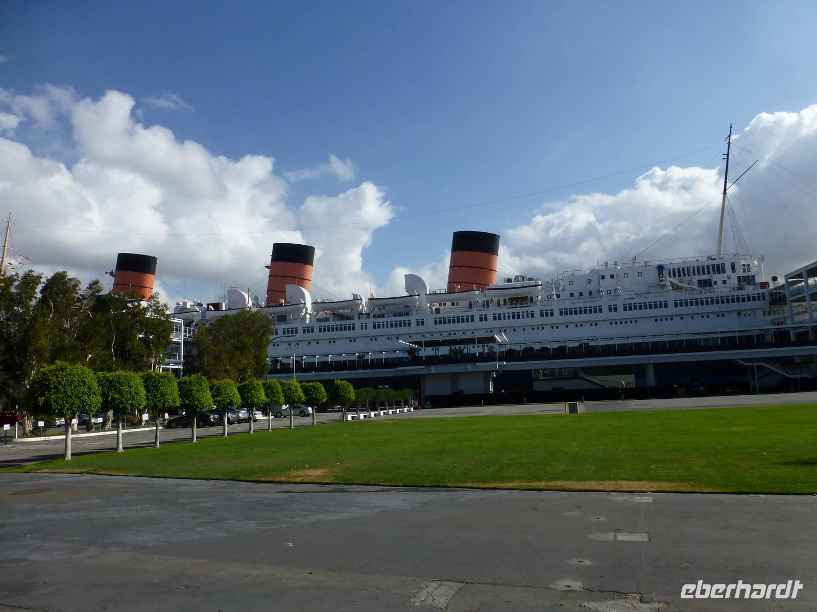 Ausgeschlafen und gestärkt vom ersten amerikanischen Frühstück lernen wir Brian kennen, unseren Busfahrer für die Rundtour. Mit ihm und Margaruite wollen wir heute LA entdecken. Zunächst fahren wir über den Highway nach Down Town. Die Himmelkratzer begrüßen uns schon von weitem. Dort angekommmen, machen wir natürlich einen Fotostopp. Und zwischen all den Hochhäusern haben wir eine kleine Ahnung davon, wie man sich in New York fühlen muss. Gemeinsam mit Margaruite unternehmen wir einen kleinen Bummel zur Disney Music Hall, fotografieren das Rathaus und bestaunen das Gebäude, in dem die örtliche Philharmonika spielt. Zurück im Bus fahren wir zur Olvera Street, das älteste Fleckchen Erde hier in LA. Wir schauen uns das älteste Haus der Stadt an und können davor die ersten Souvenirs und Postkarten kaufen. Aber auch T-Shirts, Traumfänger und bunte Tücher liegen in der Auswahl der Händler. Unser nächstes Ziel ist der Walk of Fame in Hollywood mit dem bekannten Schriftzug. Diesen kann man nur versteckt vom Kodak Theater fotografieren. Wir spazieren entlang des ¨Sternen-Zuges¨ und versuchen, bekannte Schauspieler zu entdecken. Einen Teil davon kennen wir auch aber leider nicht zu viele. Im Chinese Man Theater fotografieren wir die Hand- und Fussabdrücke von Ingrid Bergman und Co. Aber dennoch ist der Walk of Fame anders als in unseren Vorstellungen, nicht ganz so glamoreus aber trotzdem interessant. Dann fahren wir durch das Villenviertel Beverly Hills, das durch schöne Parkanlagen und gut verstecktenVillen besticht. Wir erreichen den Rodeo Drive. Lins und rechts von uns befinden sich die exklusiven Boutiquen sämtlicher namenreicher Designer wie Prada, Dolce und Gabbana oder Chanel. Am Ende des Rodeo Drives sehen wir das ¨Beverly Wilshire Hotel¨, bekannt aus dem Film ¨Pretty Woman¨. Wir erreichen schießlich ¨Farmers Market¨, wo wir unsere Mittagspause verbringen. In einem Teil kann man sich an kleinen Kiosken zu Mittag stärken..vom Bäcker über Obst sowie italienischer und asiatischer Küche gibt es hier fast alles, was man sich vorstellen kann. Ein Stück weiter hinter befinden sich zahlreiche Boutiquen und Läden. Es handelt sich hierbei um eine Art künstliche kleine Welt aber dennoch sehenswert. Den späteren Nachmittag verbringen wir ins Santa Monica. Wir spazieren durch den Sand bis hin zum Pazifik, der heute sehr hohe Wellen schlägt. Nebenan befindet sich die bekannte Vergnügungspier mit Karussell und Achterbahn. Zum Anschluss spazieren wir noch über die 3rd Avenue in Santa Monica. Mit dem Bus fahren wir zurück nach Down Town, wo wir im Hotel ¨Figuerola¨ zum Abendessen erwartet werden. Spät am Abend erreichen wir schließlich wieder die ¨Queen Mary¨.