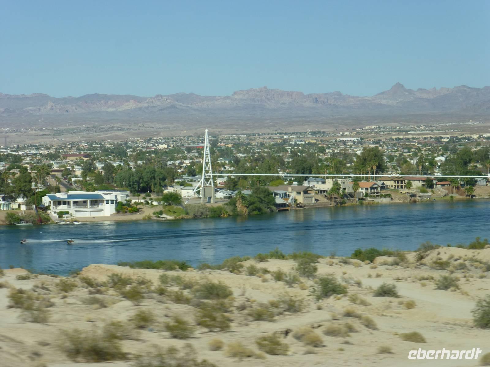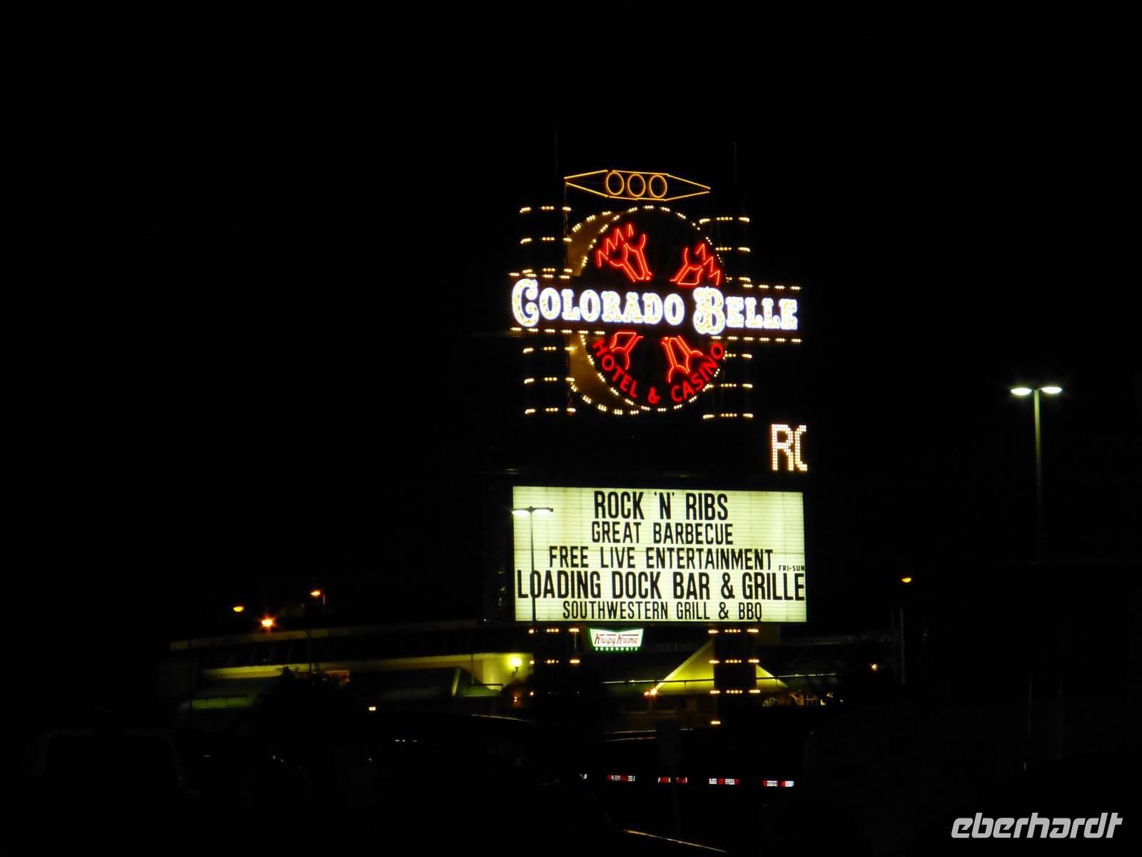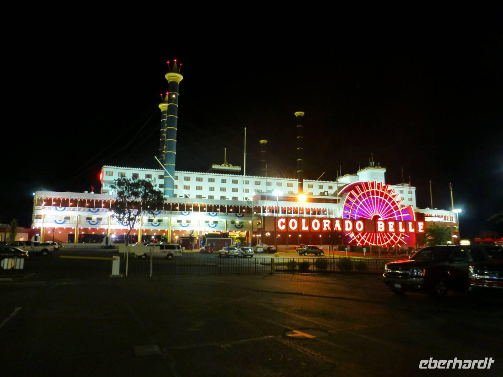 Heute heißt es Abschied nehmen von der ¨Queen Mary¨. Mit Koffern bepackt gehen wir zum Bus und verlassen die Millionenstadt LA in Richtung Mojava-Wüste. Eine längere Zeit noch begleiten uns verschiedene Autos auf dem Highway, doch je weiter wir LA hinter uns lassen, desto abgeschiedener und ruhiger wird es auf der amerikanischen Autobahn. Auch das Landschaftsbild ändert sich zunehmends. Es sind kaum noch Häuser sondern fast nur noch Wüste zu sehen.Vereinzelt ragen dann Häuser inmitten der Wüste hervor aber dabei handelt es sich meistens um kleinere Städte, die an der Autobahn ein paar Fast-Food-Restaurants und Outlets angesiedelt, also das wichtigeste für erstens die Amerikaner und zweitens für die Touristen;-). Gegen Mittag erreichen wir die Geisterstadt Calico, die wir uns anschauen und wo wir auch die Mittagspause verbringen. Eine richtige, typische Wildwest-Stadt, wie man sie sich aus diversen Büchern vorstellt. Hier gibt es auch ein großes Restaurant als auch ein Saloon, in dem der Sheriff auf seine Braut wartet. Leider konnten wir ihn heute nicht verkuppeln;-). Aber natürlich gibt es auch sonst viel zu sehen wie bspw. eine Schule, die von außen aussieht wie eine Kirche oder aber auch ein kleines Gefängnis. Für einen kleinen Opulus kann man auch mit einem kleinen Zug durch die Mine fahren. Von einem Aussichtspunkt am Ende der Geisterstadt hat man ein wunderschönes Fotomotiv auf die vor sich ausgestreckte Geisterstadt. Im Calico-Café verköstigt man uns mit Hamburgern, Hotdog, Bier oder Kaffee. Unsere Fahrt führt uns weiter in Richtung Laughlin. Unterwegs halten wir am wohl bekannten ¨Café Bagdad¨,wo einst der gleichnamige Film gedreht wurde. Uns allen sagte der Film leider nix aber die vielen Fotos und Autogramme im Inneren des kleinen Häuschen deuten wohl wirklich daraufhin, dass der Film zumindest in der USA bekannt sein muss. Gegen fünf Uhr am Nachmittag erreichen wir ¨Klein Las Vegas¨. Noch sind es nur Hotels, die inmitten der Wüste in die Höhe ragen. Wir checken in unser modernes 4-Sterne-Hotel ¨Aqurius¨ ein. Neben der Rezeption befinden sich zahlreiche Spielautomaten und Roulette-Tische zum ¨Warmmachen¨ für Las Vegas. Gegenüber von unserem Hotel befindet sich ein weiteres Outlet und so nutzen wir die Chance, Levis-Jeans zu kaufen, die hier um einiges billiger sind als bei uns in Deutschland. Ab 17:00 Uhr kann man im hoteleigenen Restaurants auch vom Buffet zu Abendessen. Zwei Getränke pro Person inklusive Bier, Wein oder aber auch Margaruitas sind im Reisepreis bereits beinhaltet. Unser Tisch befindet sich vor einem riesengroßen Panoramafenster mit einem wunderschönen Blick auf den Colorado-Fluss. Nach dem Abendessen spaziere ich mit einigen unserer Gäste entlang des Colorados zum ¨Coloradobelle¨, ein Hotelschiff in Form eines Schaufelraddampfers, das nachts wundervoll in allerlei Farben erblinckt. Sowieso hat sich die Stadt nun gewandelt und ein buntes Lichtermeer erleuchtet links und rechts der Hauptstraße....ein Lichtermeer, ein kleiner Wahnsinn.