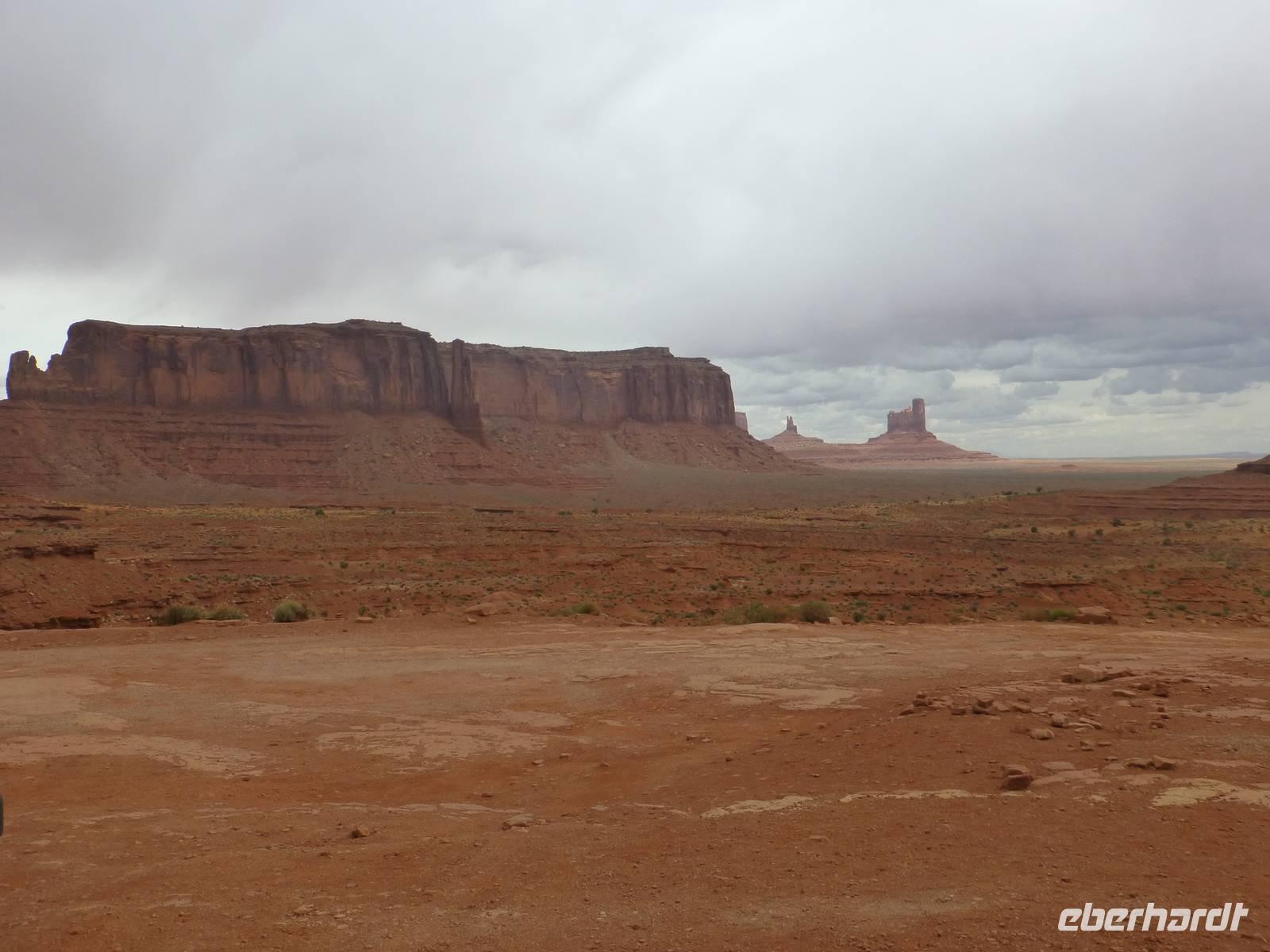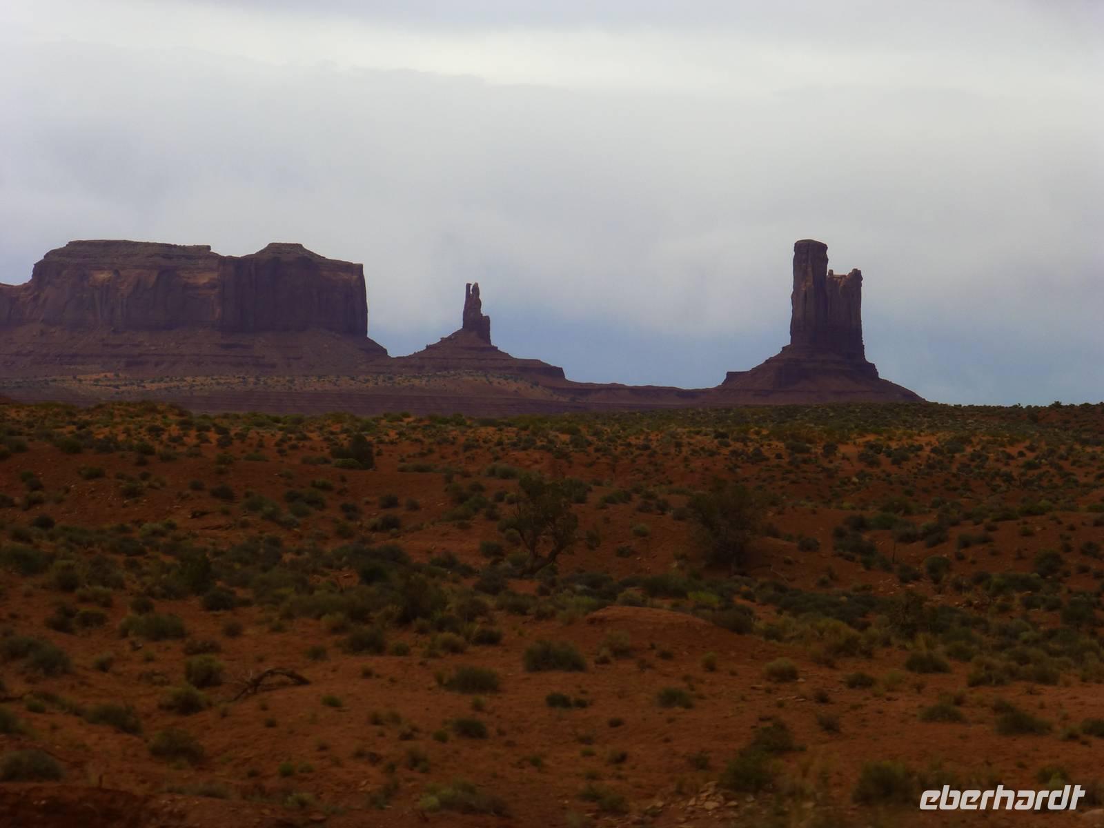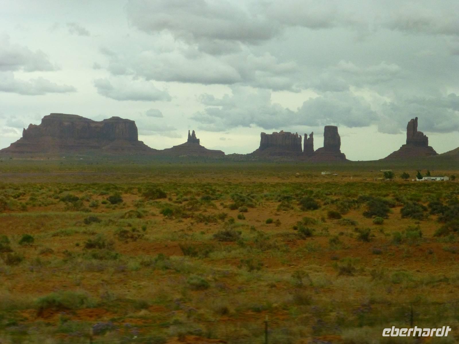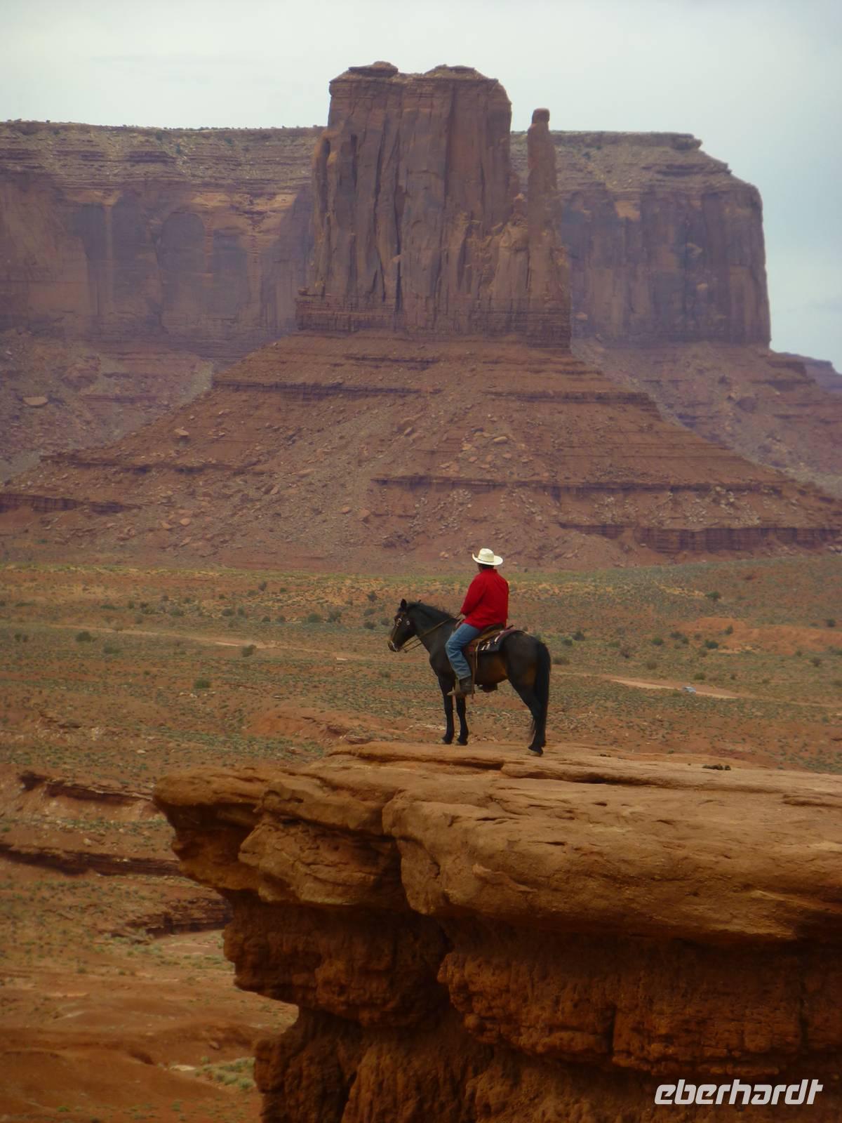 Nach nur einer Nacht packen wir schon wieder die Koffer und fahren erneut zum Grand Canyon Nationalpark. Da es heute kühler ist und die ersten Regentropfen vom Himmel fallen, ist die Sicht heute auf die Schlucht um einiges besser als am Vortag. Wir halten am Aussichtspunkt ¨Dessert View¨ und haben nun, natürlich nach dem ersten Gruppenfoto, Zeit, noch einmal ausreichend den Cran Canyon mit seiner roten Farbe zu fotografieren. Hier gibt es auch einen Aussichtsturm, den wir besteigen und von wo man aus eine noch bessere Aussicht hat. Dann geht es weiter und wir stellen die Uhr um eine Stunden nach vor. Kurz hinter dem Bundesstaatenschild ¨Utah¨ biegen wir zum Nationalpark ¨Monument Valley¨ ab. Es regnet zwar noch aber wir lassen uns nicht entmutigen und steigen auf die offenen Jeeps der Navajo-Indianer um. Bergabwärts geht erstmal unsere Tour und wir fahren vorbei an den ¨Drei Schwestern¨, dem ¨Elefanten¨ und dem ¨Kamelrücken¨. Unser erster Stopp ist an einem Picknickplatz, an dem uns die Frauen der Indianer zum Mittagessen erwarten. Es gibt Tacos (vom Leipziger Hauptbahnhof;-)) mit Bohnen, Käse, Tomaten, Salat und Zwiebeln. Dazu werden Kaffee und Wasser gereicht - natürlich stilecht von Metallgeschirr. Gestärkt schwingen wir uns wieder auf die Jeeps und unternehmen nun eine Rundfahrt durch das Tal - mit diversen Fotostopps inklusive. So haben wir die Chance, wunderschöne Bilder von den roten Steinen in ihren verschiedenen Formen zu machen. Es ist einfach wunderschön hier, unbeschreiblich und für mich persönlich ist der Anblick der Felsformationen noch schöner als die Schlucht vom morgen. Am Ende halten wir noch am Lieblingsplatz von John Ford, der hier auch Filme mit John Wayne gedreht hat. Der Felsen erinnert uns doch stark an die Marlboro-Werbung und tatsächlich reitet besagter Reiter an die Stelle und lässt sich von uns fotografieren. Nach rund zweieinhalb Stunde ist unser Ausflug in das Monument Valley leider schon wieder zu Ende und wir steigen zu Brian in den Bus um. Nun haben wir mehr als zwei Stunden Fart vor uns, bevor wir unser nächstes Ziel, das kleine amerikanische Örtchen Moab erreichen. Da es jetzt schon ziemlich spät geworden ist, gehen wir gleich zum Abendessen ins Restaurant ¨Eddie McStiff¨. Typisch amerikanisch ist es sehr laut in dem Restaurant aber das gehört nun ma dazu. In einem anderen Raum spielt eine 3-Mann-Combo Western-Musik. Nach dem Abendessen fahren wir weiter zu unseren wunderschönen 3-Sterne-Hotel ¨Archway Inn¨ und freuen uns sehr auf unser Bett.