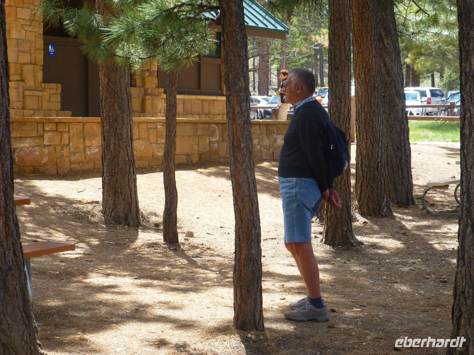 Wir packen wieder unsere Koffer und es geht weiter auf unserer Rundreise. .Zunächst halten wir kurz am Red Canyon, der sich im Dixie-National-Forest befindet zu einem kleinen Fotostopp des "Salz und Pfeffer"- Streuer. Gegen Mittag erreichen wir unser Quartier für die nächste Nacht: das Best Western Ruby's Inn, kurz vor dem Bryce Canyon gelegen. Marguerite erkundigt sich, ob die Zimmer schon frei sind, was aber leider nicht der Fall ist. In den USA ist der Zimmerbezug meist erst ab 16:00 Uhr möglich. Wir fahren in den Nationalpark und zunächst zu einem Aussichtspunkt. Hier verbringen wir an den Picknickplätzen unsere Mittagspause. Wer nichts essen möchte, geht schon mal vorsichtig an den Aussichtpunkt. Vor uns eröffnet sich der Bryce in seiner vollen Schönheit. Er gleicht einem wunderbaren Amphietheater. Marguerite erklärt uns die Wandermöglichkeiten, die wir am Nachmittag unternehmen können: Entweder eine einfache Wanderung entlang der Canyon-Kante, die wunderbare Aussichten bietet oder aber eine Wanderung, die in die Schlucht des Bryce Canyons hineinführt. Der Abstieg soll noch leicht zu schaffen sein aber der Anstieg ist doch etwas schwieriger. Ein kleiner Teil der Gruppe entscheidet sich erfreulicherweise für den Abstieg in die Schlucht uns so steigen wir herab und sehen die verschiedensten Felsformationen in unterschiedlichster Weise angebracht. Da der Tag langsam zu Ende geht, geht natürlich auch die Sonne unter und die Steine werden in ein warmes orange gefärbt....wir können uns Bryce Canyon gar nicht satt sehen und wenn uns die Zeit nicht so im Nacken sitzen würde, wäre ich gern noch ein wenig
