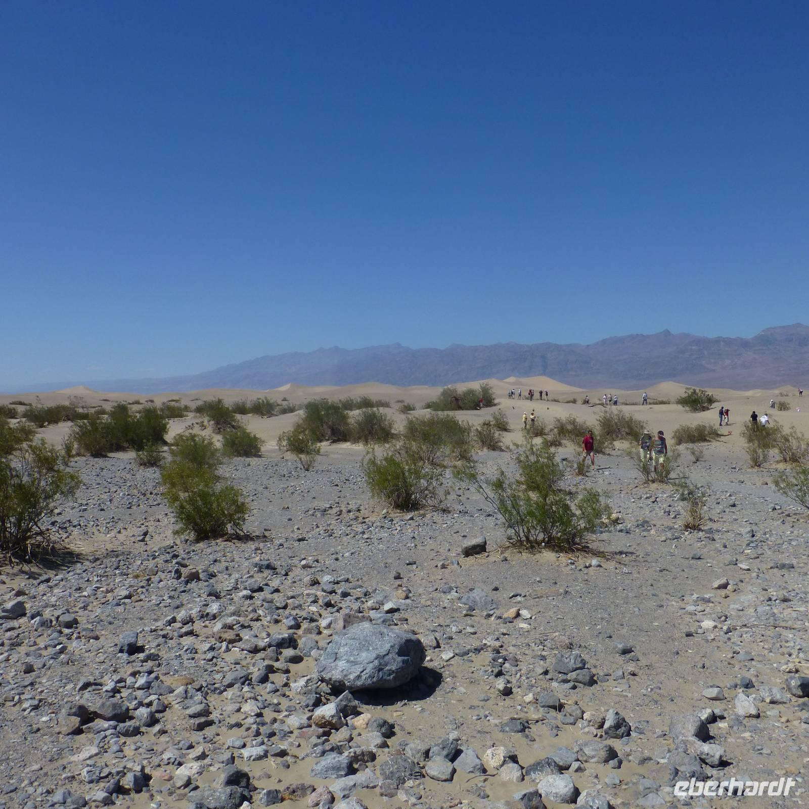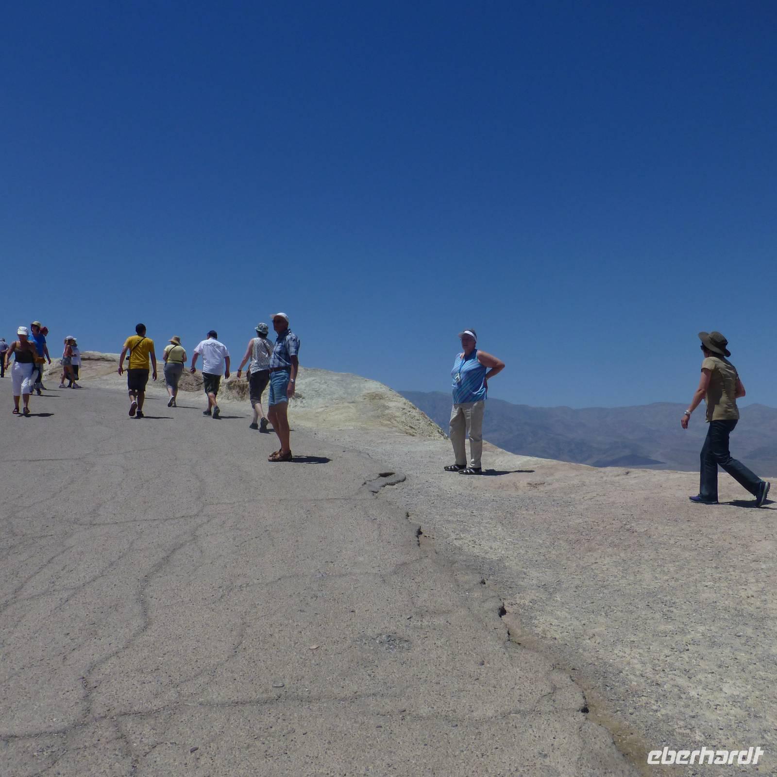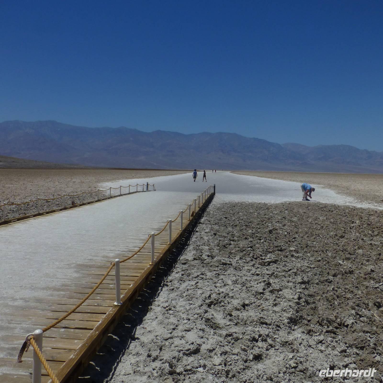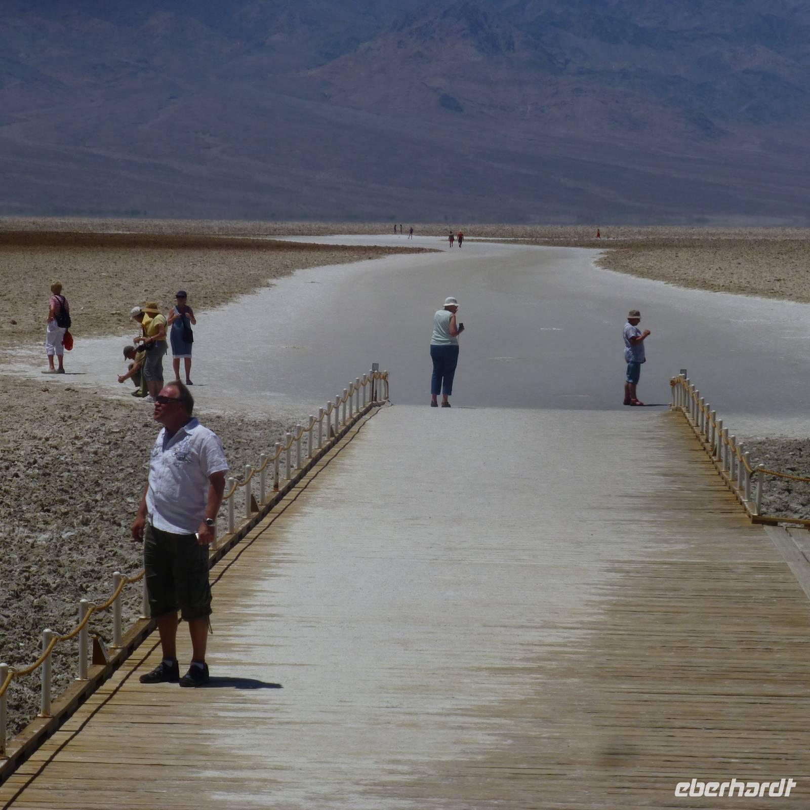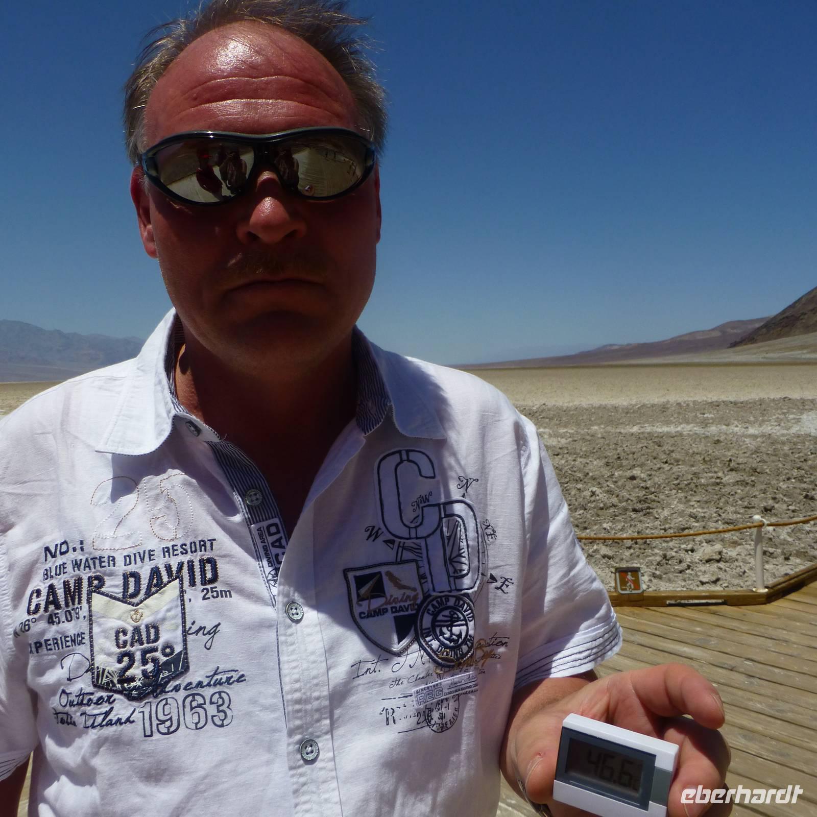 Doch noch müde und verschlafen von der letzten, kurzen Nacht, treffen wir uns am Morgen zum Frühstück und setzen anschließend unsere Fahrt in Richtung Yosemite-Nationalpark fort. Aber zuerst fahren wir zum und durch das Tal des Todes.Viel haben wir schon davon gehört und sind nun gespannt, wie es tatsächlich ist. Wir halten am Badwater-Point, dem tiefsten Punkt der Erde. Wir machen einen kurzen Fotostopp und fahren weiter zu einer kleinen Ranch zur Mittagspause. Als wir aussteigen, begrüßt uns schon die Hitze, die vom Tal des Todes ausgeht. Wir stehen in gefühlten 50 Grad Hitze und gönnen uns zur Erfrischung erstmal ein Kaltgetränk oder ein Eis. Dann geht es weiter...eine lange Fahrt liegt vor uns doch schließlich erreichen wir das fruchtbare kalifornische Land wieder und wir erreichen am späten Abend unser Hotel in Bakersfield.