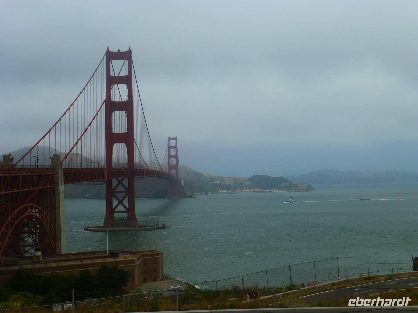 Zurück im Stadtzentrum fahren wir nun zur weltbekannten Golden-Gate-Bridge. Wer möchte, und das sind fast alle meiner Reisegäste, kann über die Brücke auf die andere Seite spazieren. Diese "Brückenbegehung" dauert ca. 45 Minuten und auf der anderen Seite angekommen, kämpft sich endlich die Sonne durch die Wolken hindurch und der Himmel klart auf. Nachdem wieder alle auf Ihrem Bussitz Platz genommen haben, fahren wir weiter nach Sausolito, ein reiches Fischerdörfchen auf der gegenüberliegenden Seite von San Fransisco. Wir haben nun Freizeit um das kleine Viertel auf eigene Faust zu entdecken oder einen kleinen Mittagssnack zu uns zu nehmen. Dann fahren wir zurück in die Stadt wo wir ganz schnell in unser 4-Sterne-Hotel einchecken und uns gleich wieder am Bus zu treffen. Ein Großteil meiner Gäste hat für den Nachmittag den Besuch von Alcatraz fakultativ gebucht und die Fähre zur Gefängnisinsel legt um kurz vor um vier ab. Wer nicht "hinter Gitter " möchte, hat nun die Möglichkeit, San Francisco auf eigene Faust zu erkunden.
