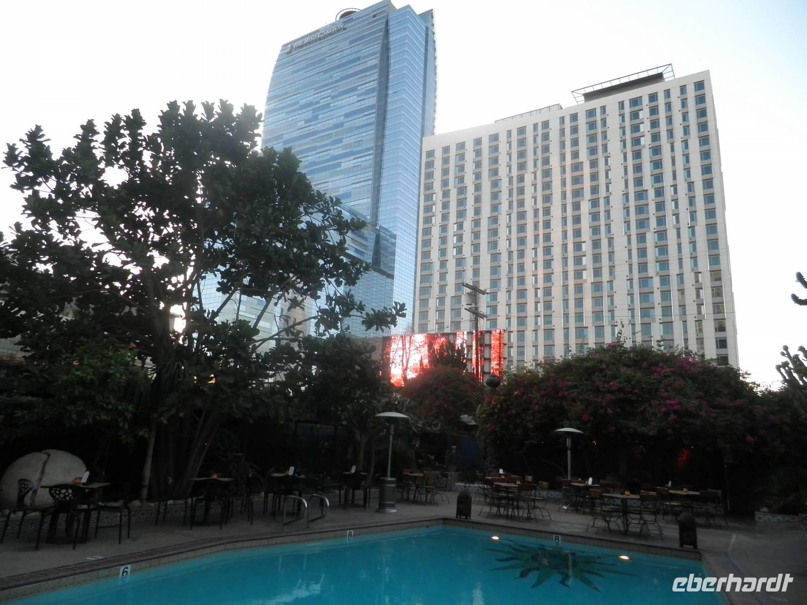 Am Montagmorgen trafen wir uns in zwei Gruppen, eine in Dresden auf dem Flughafen, andere Gäste begannen ihre Reise auf dem Leipziger Flughafen. Mit großer Freude kamen beide Gruppen schließlich in München am Abflugsteig unseres Lufthansa-Fluges nach Los Angeles zusammen. Die Freude war deshalb so groß, weil für die Dresdner Gäste der Reisestart doch etwas holprig gewesen war, denn der Flug von Dresden nach München hatte einige Verspätung. Gleich nach der Ankunft wurden wir zu unserem Abflugsteig eskortiert, so dass wir gerade noch rechtzeitig an Ort und Stelle waren. Darüber hinaus saß uns der angekündigte Streik der Lufthansa-Mitarbeiter quasi im Nacken. Und tatsächlich, hinterher erfuhren wir, dass unser Transatlantikflug der letzte war für einige Zeit. Wir hatten also Glück und konnten uns in das große Abenteuer "stürzen" und flogen über den "großen Teich", wie der Atlantik ja manchmal genannt wird. Weil wir mit der Sonne flogen und damit auch die Zeit sich an diesem Tag für uns um neun Stunden dehnte, erreichten wir am selben Nachmittag LAX, den internationalen Flughafen der kalifornischen Metropole. Wir waren pünktlich, Passkontrolle, Gepäckübernahme und Zollkontrolle erfolgten reibungslos, so dass uns unsere Reiseleiterin Janny schon bald in der Ankunftshalle begrüßen konnte. Wir führen unsere ersten Meilen in der "Neuen Welt" und erreichten bald Long Beach, einen Vorort von Los Angeles. Dort bezogen wir unsere Kabinen des historischen königlichen Schiffes "Queen Mary", das heute dort vor Anker liegt und als Hotel mit Museumscharakter dient. Das Interieur ist im Art Deco Stil eingerichtet, mit herrlichen Holzverkleidungen und Accessoires. Mit einem gemeinsamen Abendessen beendeten wir diesen langen Tag. Erschöpft begaben wir uns in unsere Kabinen und schlummerten dem nächsten aufregenden Tag entgegen.