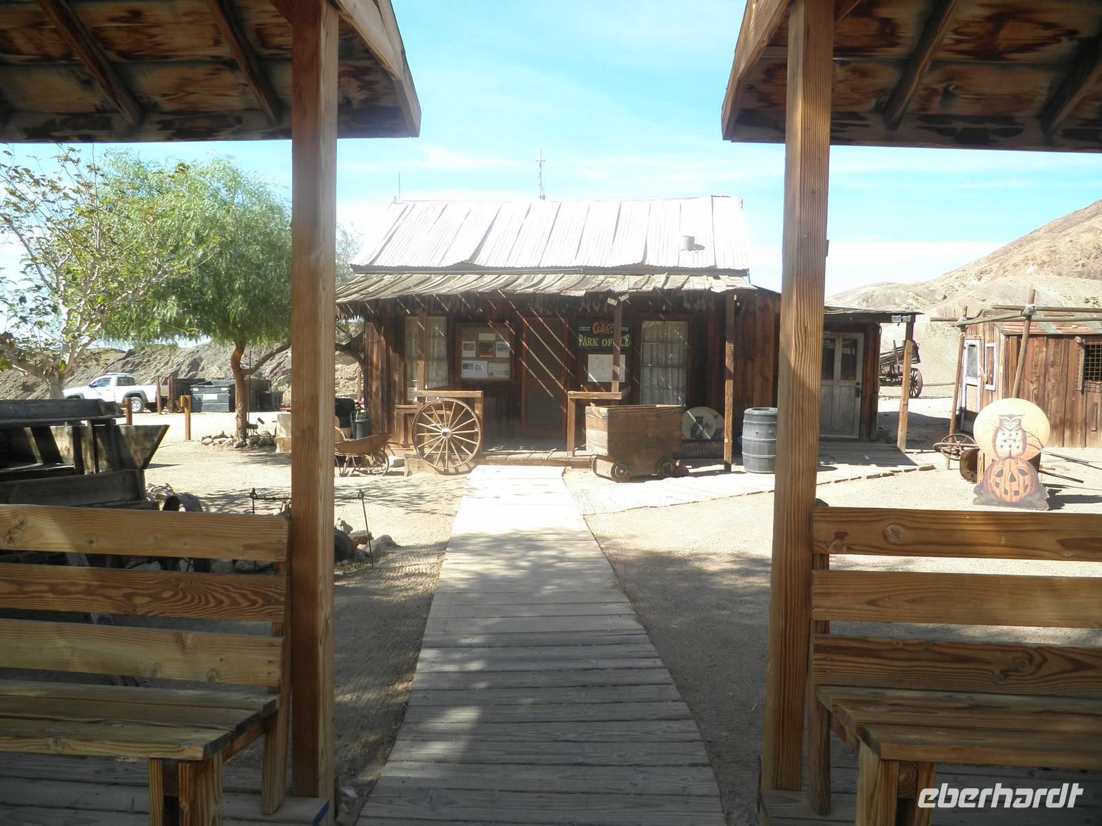 Wir brachen auf, um an diesem Tag eine der heißesten und für uns Menschen lebensfeindlichsten Gegenden aufzusuchen: Death Valley. Angenehm im klimatisierten Bus sitzend sahen wir unterschiedliche Gesteins- und Felsformationen und erfuhren eine Menge über das beschwerliche Leben der Arbeiter im 19. Jahrhundert beim Abbau von Borax in diesem Tal. Janny erzählte uns, dass auch heute noch Menschen bei Wanderungen und anderen Unternehmungen während der Sommermonate im Death Valley um Leben kommen, weil sie die Sicherheitswarnungen nicht ausreichend beachten. Im Juli und August klettern hier die Temperaturen auf weit über 40 Grad Celsius, das kann schnell sehr gefährlich werden. Für uns allerdings war der Ausflug ins Tal des Todes sehr angenehm, denn wir hatten ausreichend Wasser an Bord, für das unser Fahrer Sergei während unserer gesamten Reise sorgte, und unser klimatisierter bequeme Reisebus rollte problemlos durch die unwirtliche Gegend. In einem Oasenort legten wir einen Stop ein. Einige Gäste stöberten im kleinen Geschäft nach Mitbringseln, andere besichtigten das Freilichtmuseum des Dorfes, in dem einige sehr anschauliche Zeugnisse des Lebens hier in früheren Zeiten anzuschauen waren.