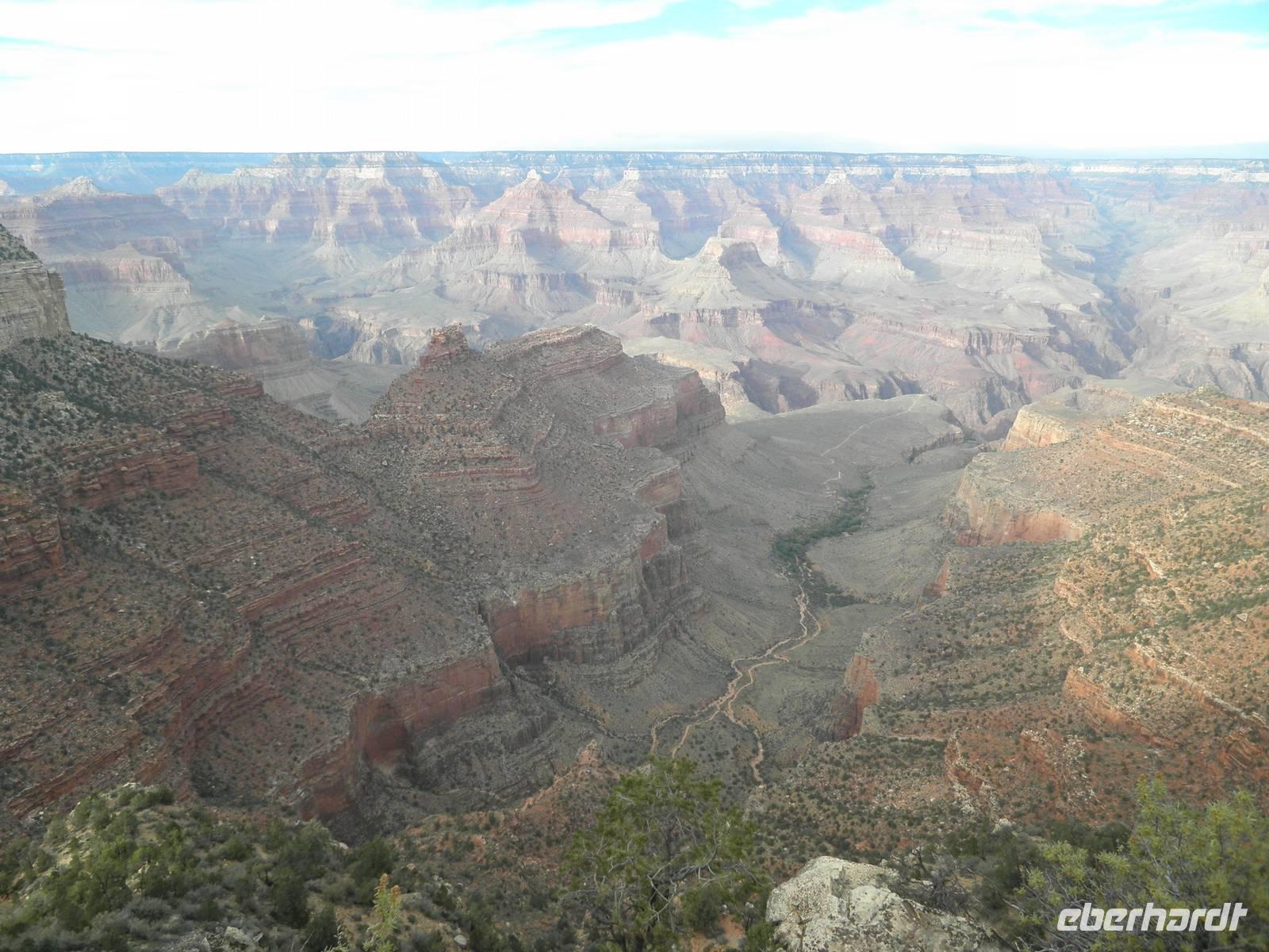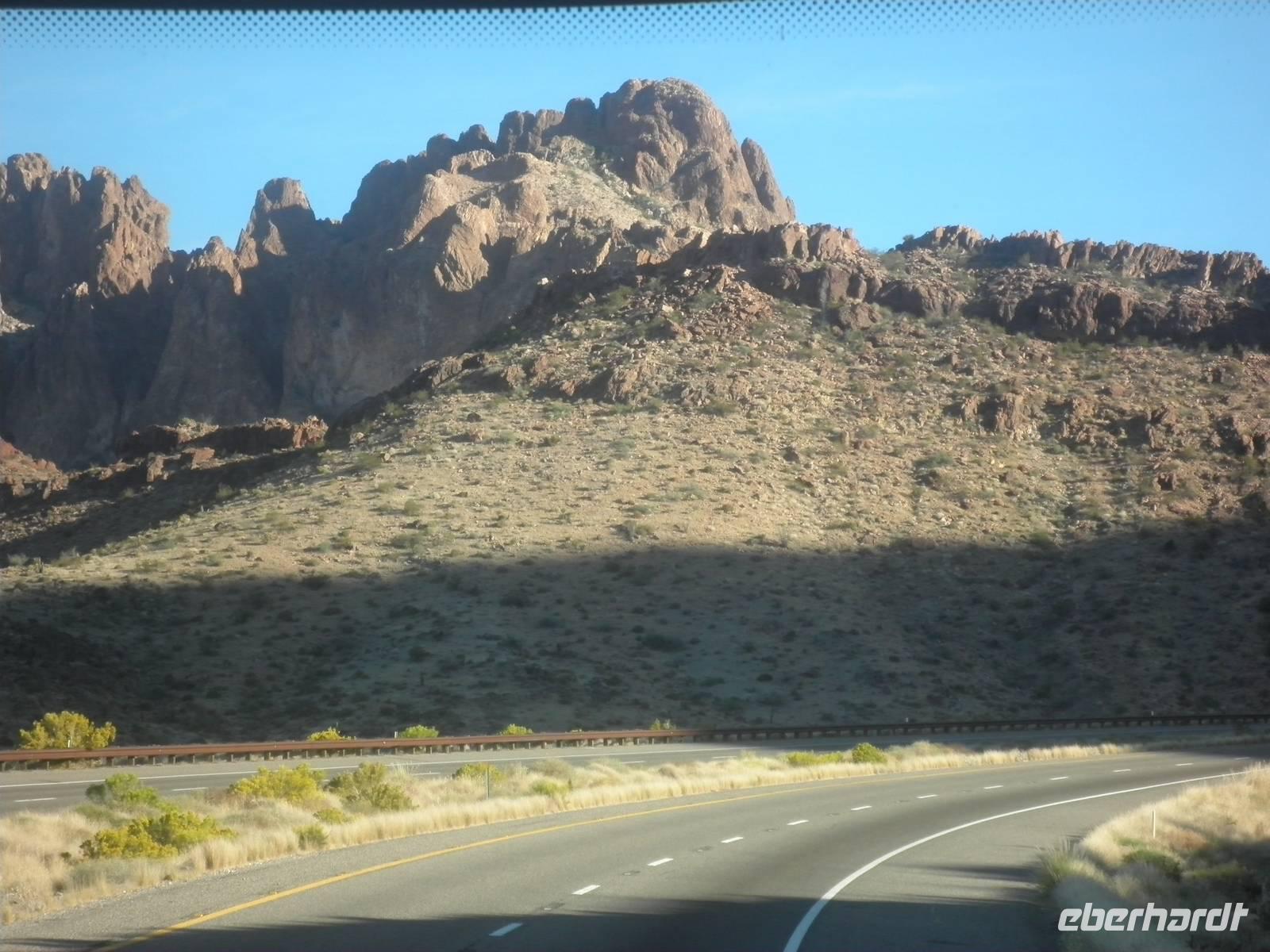 Heute verließen wir Los Angeles und führen in die Mohawe-Wüste. In Barstow hielten wir kurz, um uns mit Proviant zu versorgen. Als nächster Punkt auf unserer Reise erwartete uns Calico, heute eine Geisterstadt. Silberschürfer waren Ende des 19. Jahrhunderts hierher gekommen und hatten die kleine Ansiedlung gegründet. Nach einigen Jahren schon verließen die Bewohner den Ort und ließen Vieles so zurück, wie sie es bis zum letzten Tag benutzt hatten. Heute kommen Besucher hier her, besichtigen die alten Gebäude und versetzen sich zurück in eine längst vergangene Zeit. Wir sahen die alte Schule, eine Schmiede und das Haus des damaligen Sheriffs. Nach einer Weile verließen wir die Geisterstadt in der Einsamkeit und führen weiter auf unserer Route. Am Nachmittag erreichten wir schließlich Laughlin. Diese Stadt scheint hauptsächlich aus Hotels und Casinos zu bestehen. Auch in unserem Hotel lockten zahlreiche Spielautomaten die Spieler an. Weil wir früh angekommen waren, konnten wir die Zeit noch für einen Spaziergang am Colorado nutzen, der direkt hinter unserem Hotel vorbei floss. Oder man könnte schwimmen gehen im Hotelpool, denn in Laughlin war es heiß und trocken, über 30 Grad Celsius zeigte das Thermometer bei unserer Ankunft. Einige gingen einkaufen im nahe gelegenen Outlet-Center. Am Abend ließen wir uns ein Essen vom Buffet mit Bier und Wein gut schmecken.