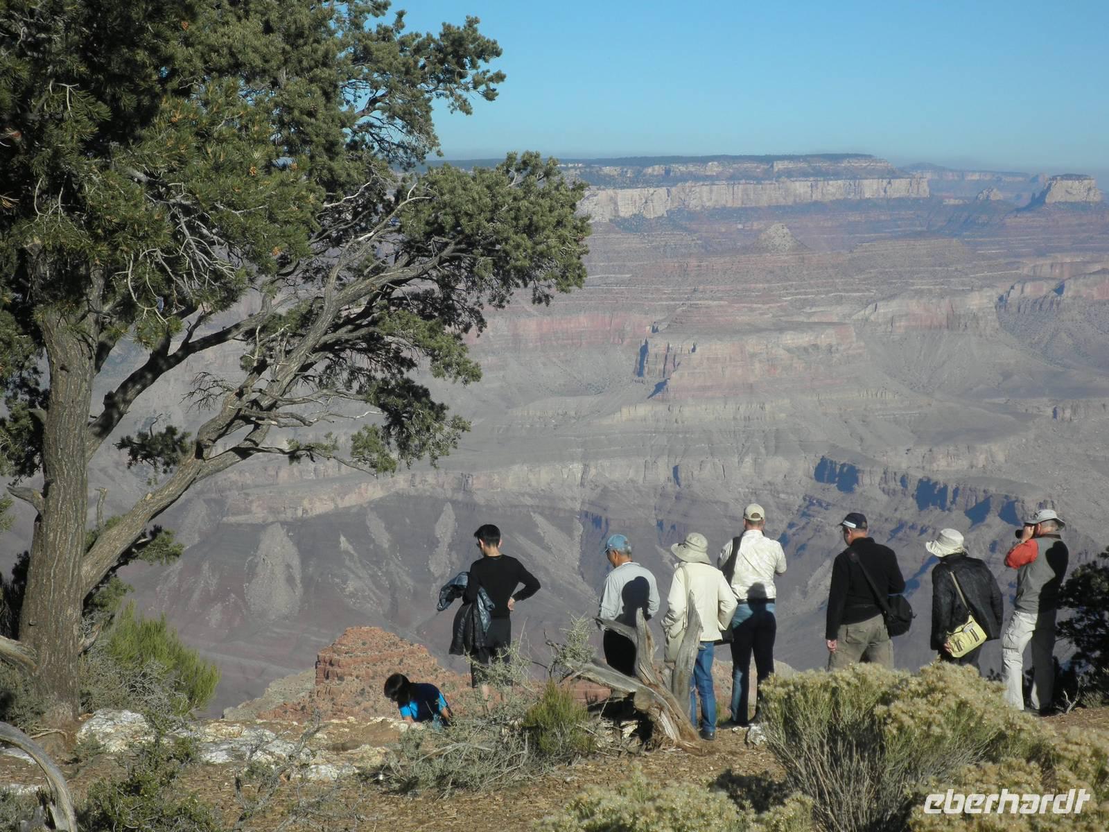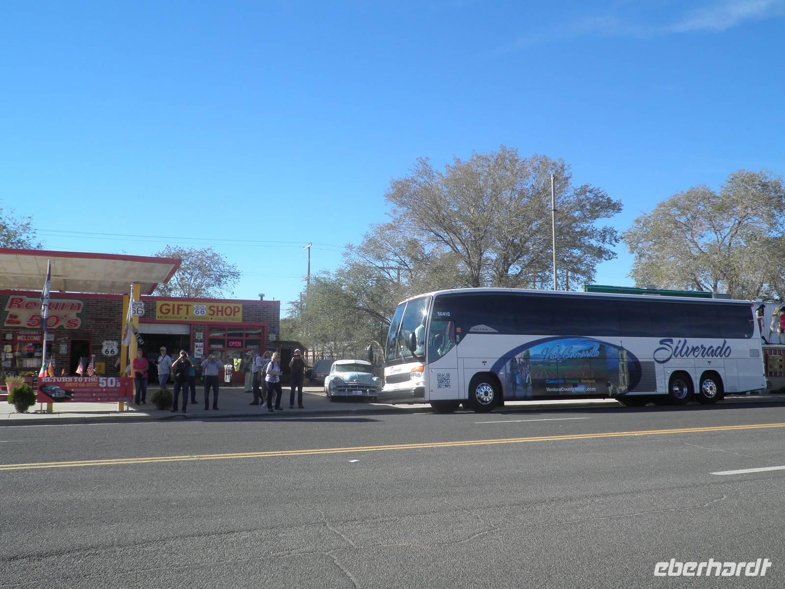 Der heutige Tag sollte ein ganz besonderer werden auf unserer Reise, denn der Grand Canyon stand auf unserem Programm, eines der Naturwunder unserer Erde. Doch zunächst kamen wir an die berühmte Route 66, das ist jene berühmte Straße, die über 3000 Kilometer quer durchs Land führt, von Chicago bis nach Los Angeles. Wir hielten in Seligman, fotografierten das berühmte Straßenschild der Route 66 und kauften Andenken davon. Nach einem kurzen Aufenthalt führen wir weiter, lange Strecken mussten auf unserer Reise überwunden werden. Am Mittag erreichten wir schließlich den Grand Canyon, wo wir unseren Besuch mit einem Rundflug über diese beeindruckende Tal begannen. Der Colorado River hat sich tief ins Gestein gefressen und dabei einen riesigen Crater erschaffen. Fast alle Gäste flogen mit und so hatten wir einen beeindruckenden Überblick über eine unbeschreibliche Landschaft. Man wird sprachlos und staunt, was die Natur hervorzubringen in der Lage ist. Nach unserem Rundflug im Kleinflugzeug wanderten wir direkt entlang am Crater des Grand Canyon. Auch das war ein besonderes Erlebnis mit zahlreichen atemberaubenden Ausblicken in den riesigen Crater mit verschieden farbigen Gesteinsschichten. Auf dem Weg zu unserem Hotel sahen wir Wapiti-Hirsche, die hier in großer Zahl beheimatet sind. Wir verbrachten eine ruhige Nacht in unserem Hotel am Rand des Grand Canyon Nationalparks.