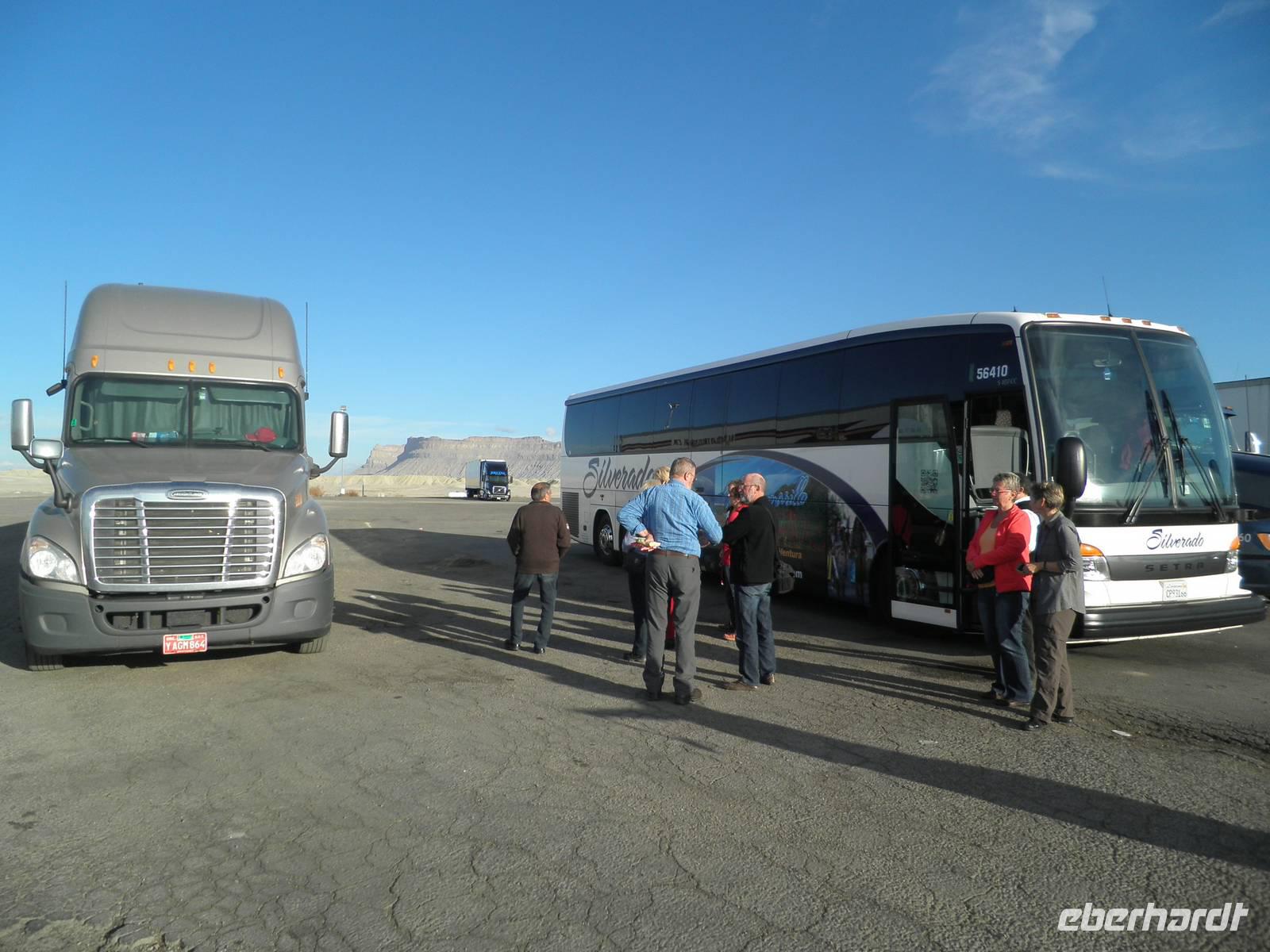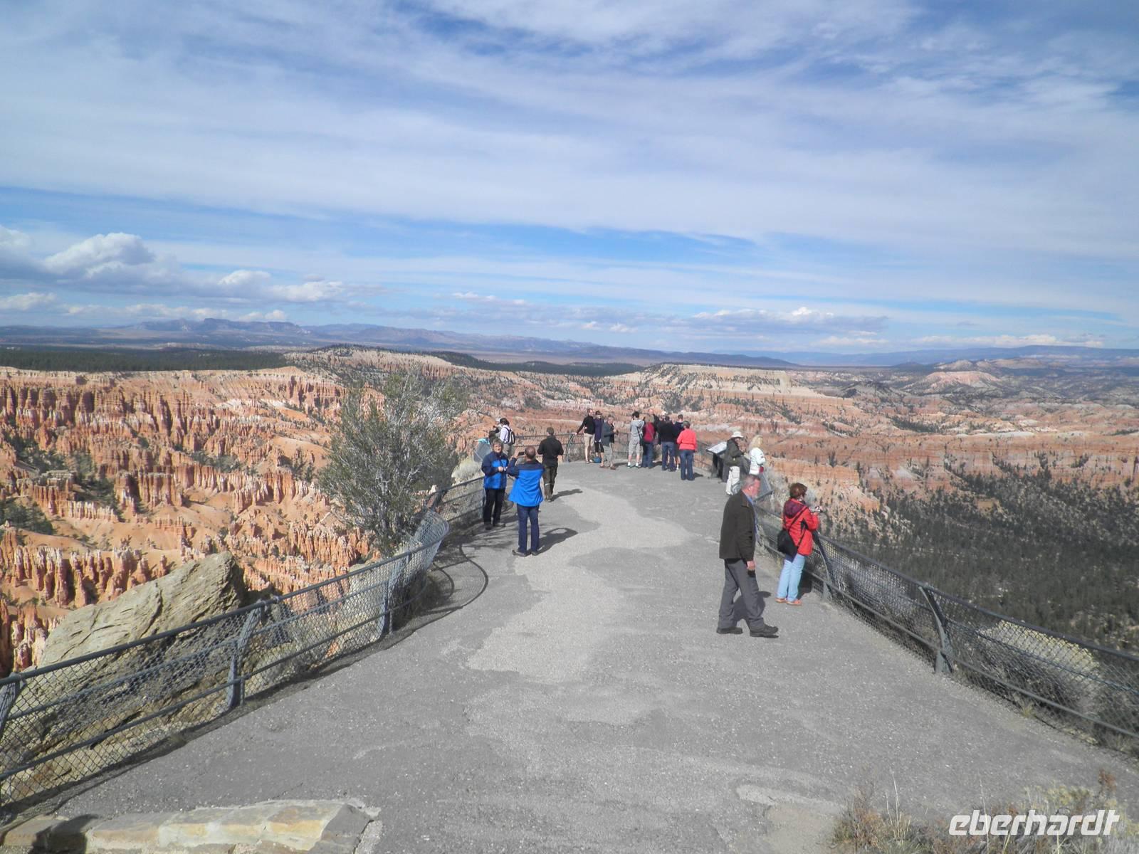 Wir verließen Moab und führen in Richtung Bryce Canyon Nationalpark. Da es sich um eine sehr lange Fahrt handelte, wurde unterwegs zweimal eine kurze Pause gemacht. Am frühen Nachmittag erreichten wir unser Hotel in der Nähe des Bryce Canyons. Nach einer Mittagspause dort trafen wir uns im Bud wieder und fuhren nun zum Canyon selbst. Mehrmals hielt unser Bus und wir hatten die Gelegenheit, verschiedene Perspektiven dieses überwältigenden Canyons zu sehen und zu fotografieren. Während einer Wanderung vom Inspiration Point bis zum Sunset Point Genossen wir das überwältigende Panorama dieses einzigartigen Naturkunstwerks. Am Abend erreichten wir schließlich wieder unser Hotel. Zum Abendessen bot uns ein leckeres Buffet allerhand Speisen, die wir entspannt genossen.