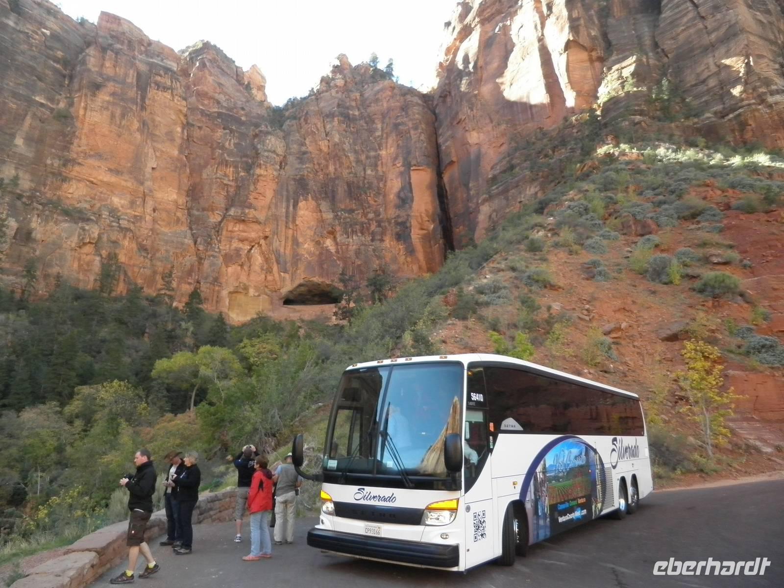 Wir begannen diesen Tag unserer Reise mit einem kurzen Aufenthalt im Red Valley, wo interessante und beeindruckende rote Felsformationen zu bestaunen sind. Zwei Felsen sehen aus wie Salz- und Pfefferstreuer. Nach einigen Meilen Fährt erreichten wir den Zion Nationalpark. Auch dieser Park ließ uns staunen. Gewaltige Felsformationen in verschiedenen Farben, hauptsächlich in rot, bestimmen das Bild dieses Park. Mehrmals hielten wir an, damit wir gute Fotos machen konnten. Unsere Mittagspause verbrachten wir an der Zion Lodge. Dort konnten wir unsere mitgebrachten Sachen essen und ein paar der wunderschöne Wanderwege nutzen. Anschließend begaben wir uns wieder in unseren Bus, eine lange Fahrt hatten wir noch vor uns, denn das Ziel für den heutigen Nachmittag hieß: Las Vegas!