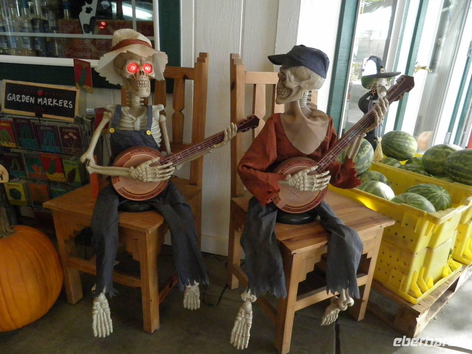 Zunächst führen wir hinaus aus dem Yosemite Nationalpark und genossen noch für eine Weilse seine grandiose Natur. Nach einer längeren Fahrt hielten wir an in der kleine Stadt Merced. Dort besuchten wir eine Farmshop, der als Familienbetrieb arbeitet. Nicht nur lokale Produkte wie Nüsse, Kürbisse und Obst konnten wir dort kaufen, es gab auch einige Haustiere, die wir beobachten konnten. Im Freien waren Hängebauchschweine, Ziegen, Emus und ein ganz junges Kalb zu sehen, drin gab es mehrere große Papageien in Käfigen, die das ein oder andere Wort "drauf" hatten. Und wir hatten eine Menge Spaß daran. Weil Halloween in den USA groß gefeiert wird, gab es auch dort zahlreiche Kürbisse, Skelette, die Gitarre spielten und deren Augen rot aufleuchteten sowie Spinnweben als Dekoration.