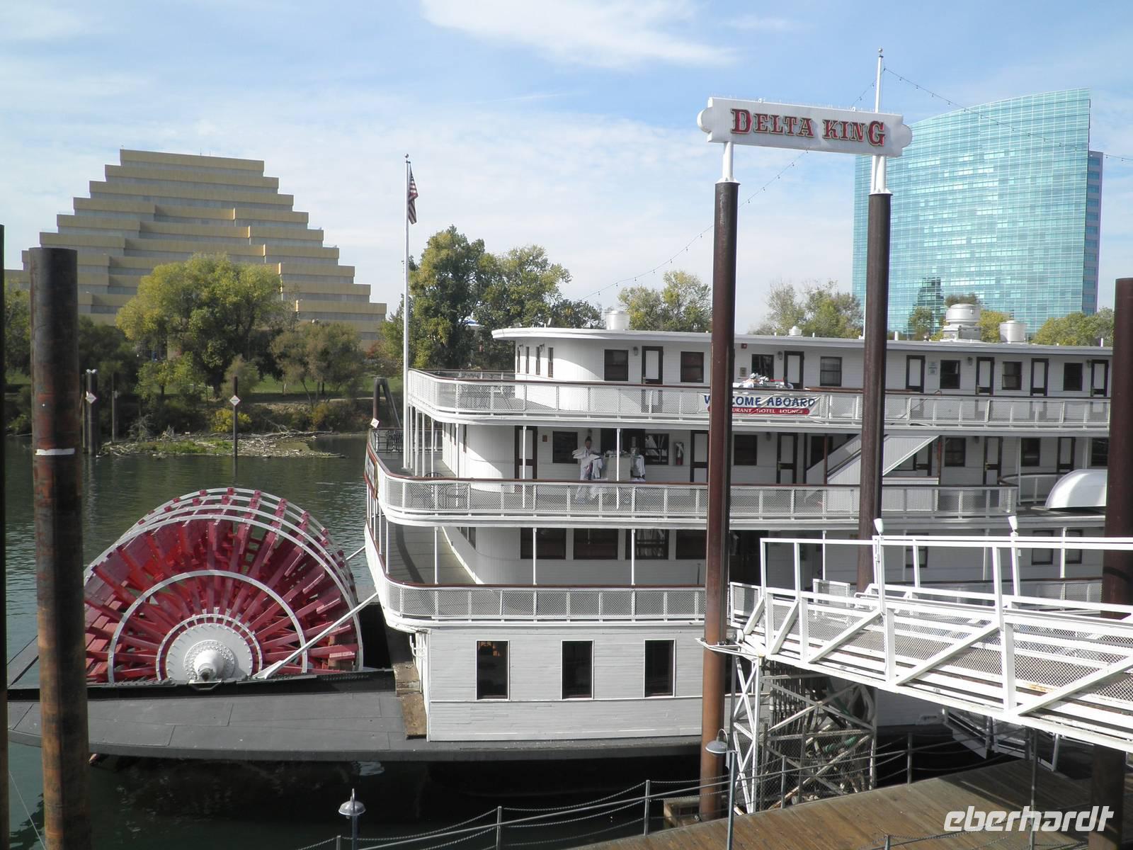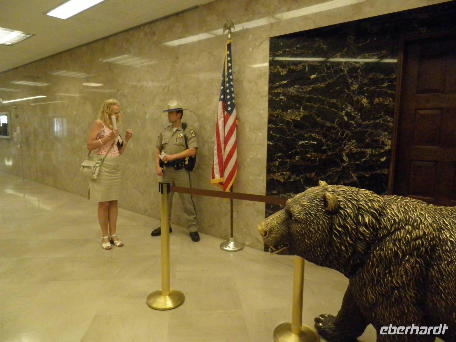 Das nächste Ziel dieses Tages war Sacramento, die Hauptstadt Kaliforniens. Wir besichtigten das Capitol, ein Gebäude, das durchaus Ähnlichkeit mit dem Capitol in Washington. Unsere Reiseleiterin Janny ließ sich Visitenkarten des Gouverneurs geben, die sie als Souvenir verteilte. Im Anschluss daran führender einStück durch die Stadt und Janny erklärte uns viel über das Leben der Goldgräber Mitte des 19. Jahrhunderts. In diese Zeit fällt die Gründung der Stadt, die in Old Sacramento immer noch den Charme dieser Zeit ausstrahlt. Wir spazierten durch diesen Stadtteil und versetzten uns in die längst vergangene Goldgräberzeit.