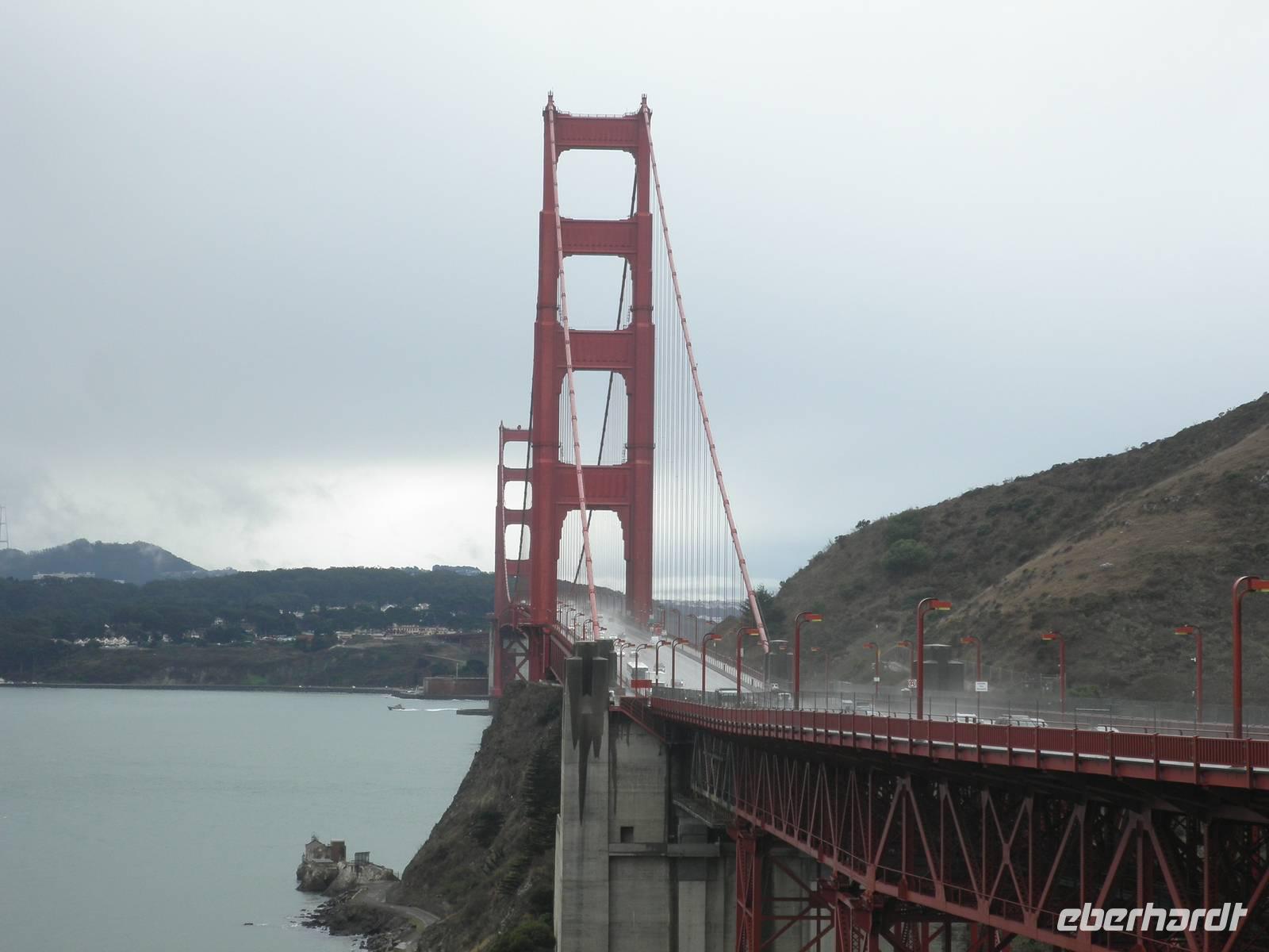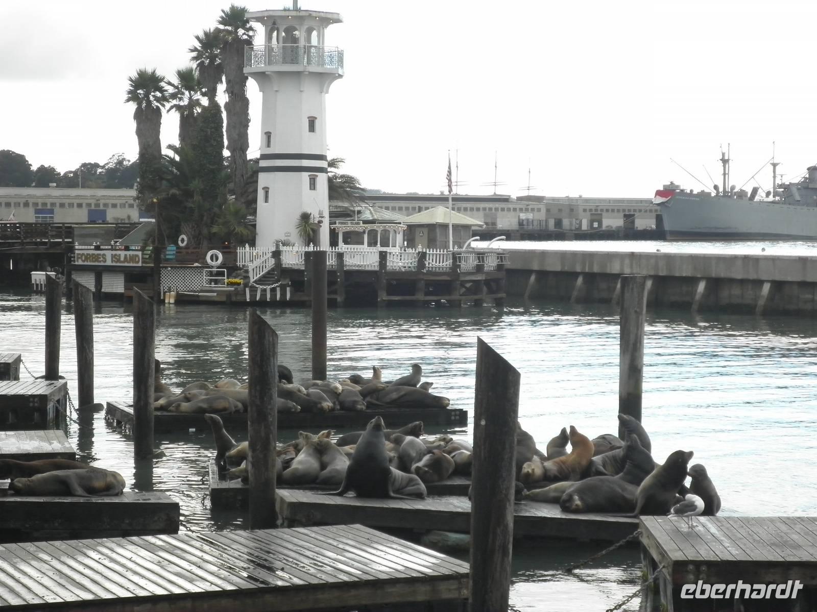 Unser Tag begann sehr früh, denn wir wollten die Fähre in Sausalito besteigen, um damit nach San Franzisco überzusetzen. Es war der erste und einzige Tag unserer Reise, der uns mit Wolken und später auch Regen begrüßte. Dennoch genossen wir die Fahrt auf der Fähre, die uns einen ersten Blick auf die Gefängnisinsel Alcatraz, die Golden Gate Bridge und die Skyline der Stadt bescherte. Nachdem wir angelegt hatten, spazierten wir an einigen der Piers entlang, bis uns unser Bus wieder aufnahm. Jetzt begann unsere Stadtrundfahrt. Natürlich hielten wir an der berühmten Golden Gate Bridge, um Fotos zu machen. Einen Pause in Sausalito nutzten wir für einen Spaziergang in dem kleinen Ort mit Yachthafen und zahlreichen Souvenirgeschäften. Unsere Mittagspause verbrachten wir dann am Fisherman's Wharf. Einige Gäste spazierten rum Drehpunkt der Cable Cars der Linie Powell & Hyde, andere besuchten die Seelöwen, die sich fast immer am Pier 39 auf hölzernen Flössen ausruhen oder probierten von den Köstlichkeiten des Meeres, die hier ganz frisch angeboten werden. Am Nachmittag bezogen wir unsere Zimmer im Holiday Inn Hotel Golden Gateway, um den Nachmittag Zeit für eigene Unternehmungen zu haben. Am Abend holte uns der Bus am Hotel ab und wir führen wieder hinunter an den Hafen. Am Pier 39 besuchten wir das Fischrestaurant Neptune's, wo wir uns köstlichen Lachs oder Scampis schmecken ließen. Zurück zum Bus schlenderten wir die Pier entlang und stöberten durch die viele. Souvenirgeschäfte. Unser Bus brachte uns schließlich ins Hotel zurück und wir verabschiedeten uns herzlich von Sergei, unserem ukrainisch stämmigen Fahrer, der uns die ganze Reise über sicher gefahren hat.