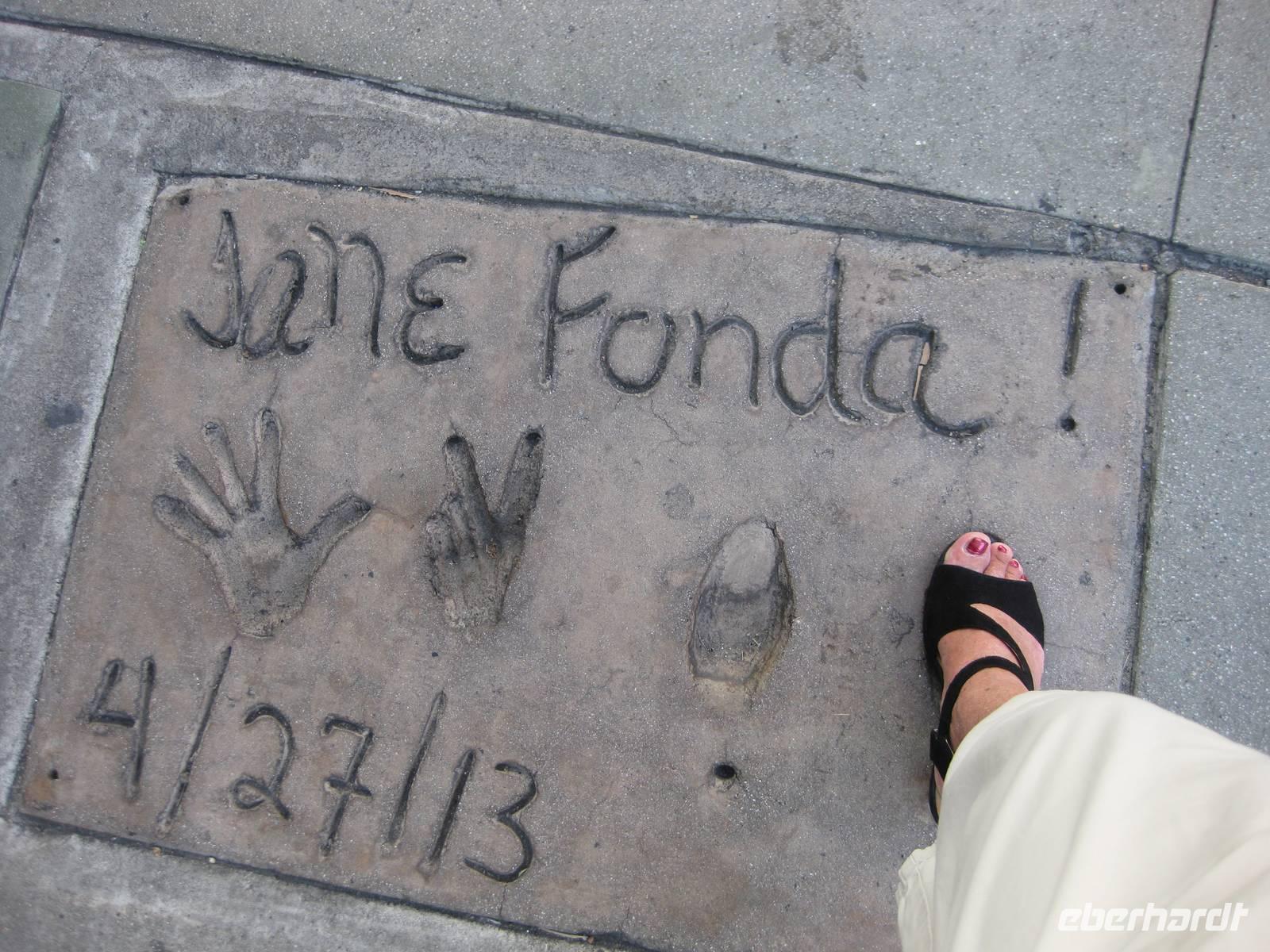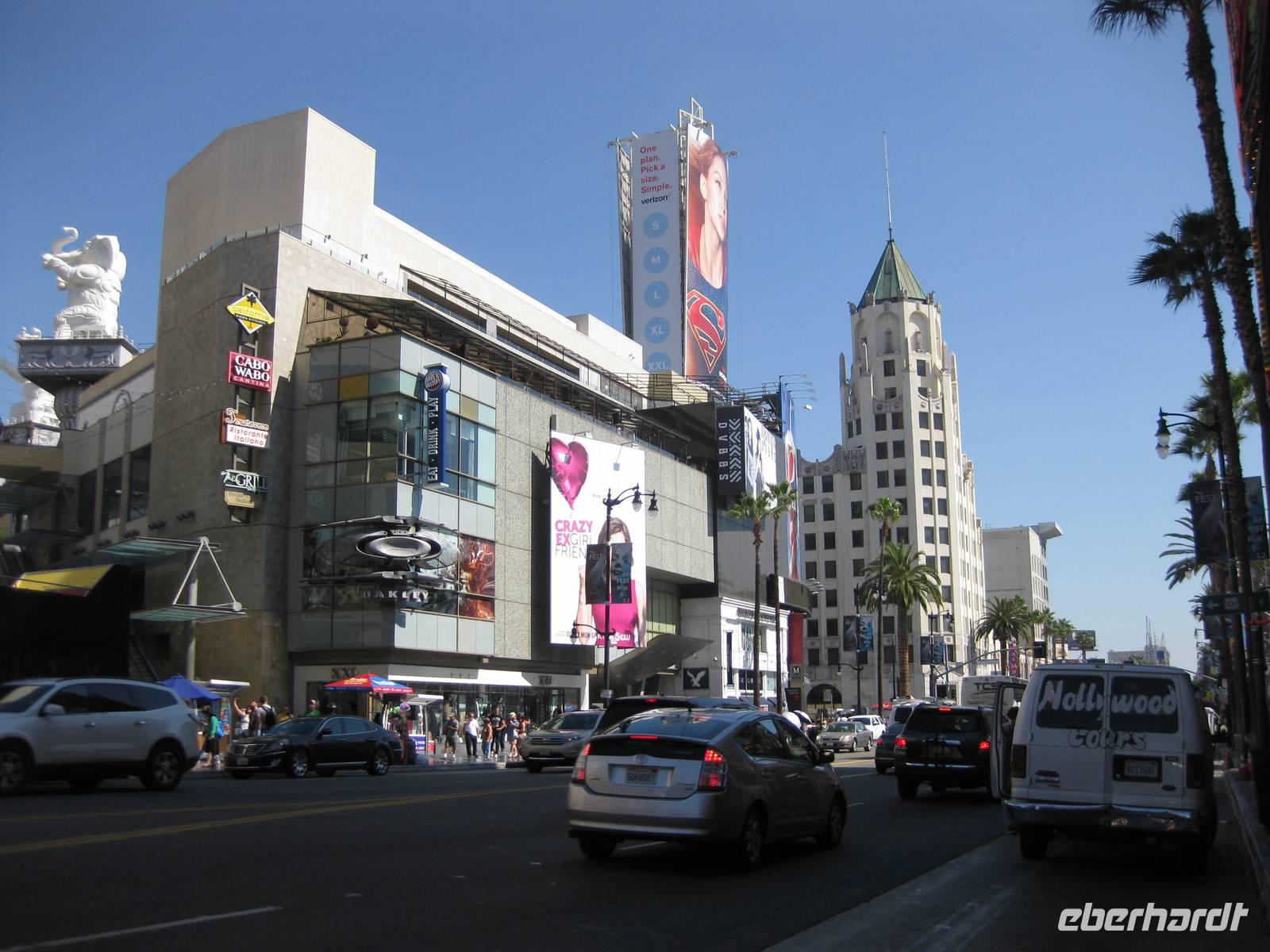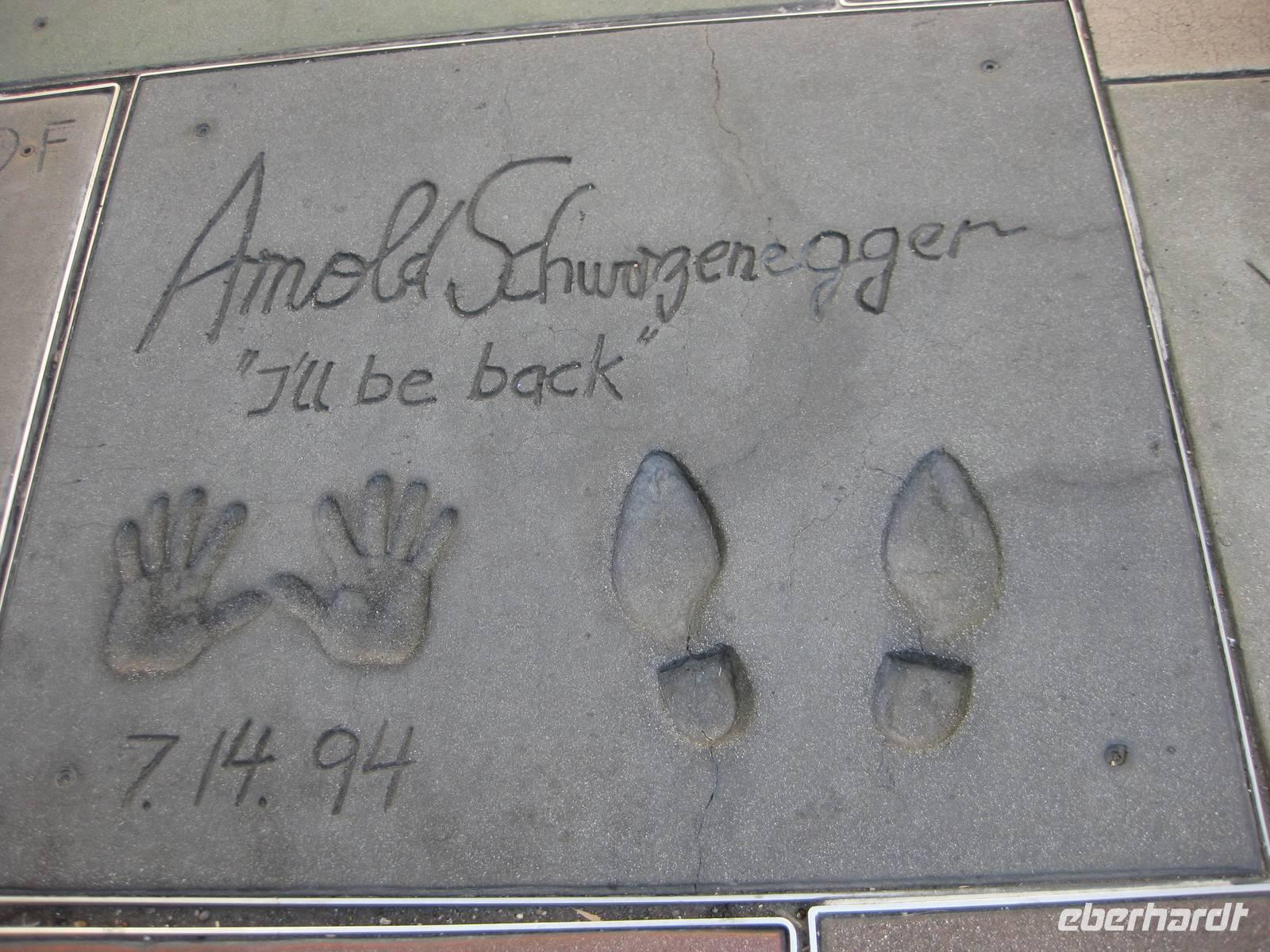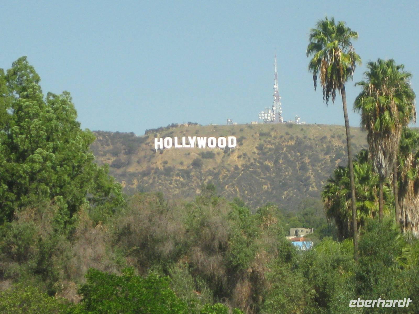 Und dann geht es schon in Richtung Hollywood. Wir fahren den Hollywood Boulevard entlang. Gegenüber vom Roosevelt Hotel hält unser Bus und wir steigen aus, um die wichtigsten Orte in Hollywood zu besuchen. Zuerst gehen wir auf dem „Walk of Fame" und bestaunen die Sterne mit den berühmten Namen. Einige Sterne waren wohl noch frei für uns, aber keiner hat uns entdeckt und unsere Namen den Sternen gegeben - schade. Auch die Fuß- und Handabdrücke der Stars haben wir vor dem Chinesischen Theater gesehen und die unserer Lieblingsstars gesucht. Das ist schon beeindruckend, wenn man an diesem Ort wirklich ist. Auch am Durchblick zu den großen Buchstaben „HOLLYWOOD" haben wir ein Foto von uns machen lassen. Und das Kino „La Capitan", wo sämtliche Premieren aller Disney-Filme stattfanden und finden haben wir gesehen.