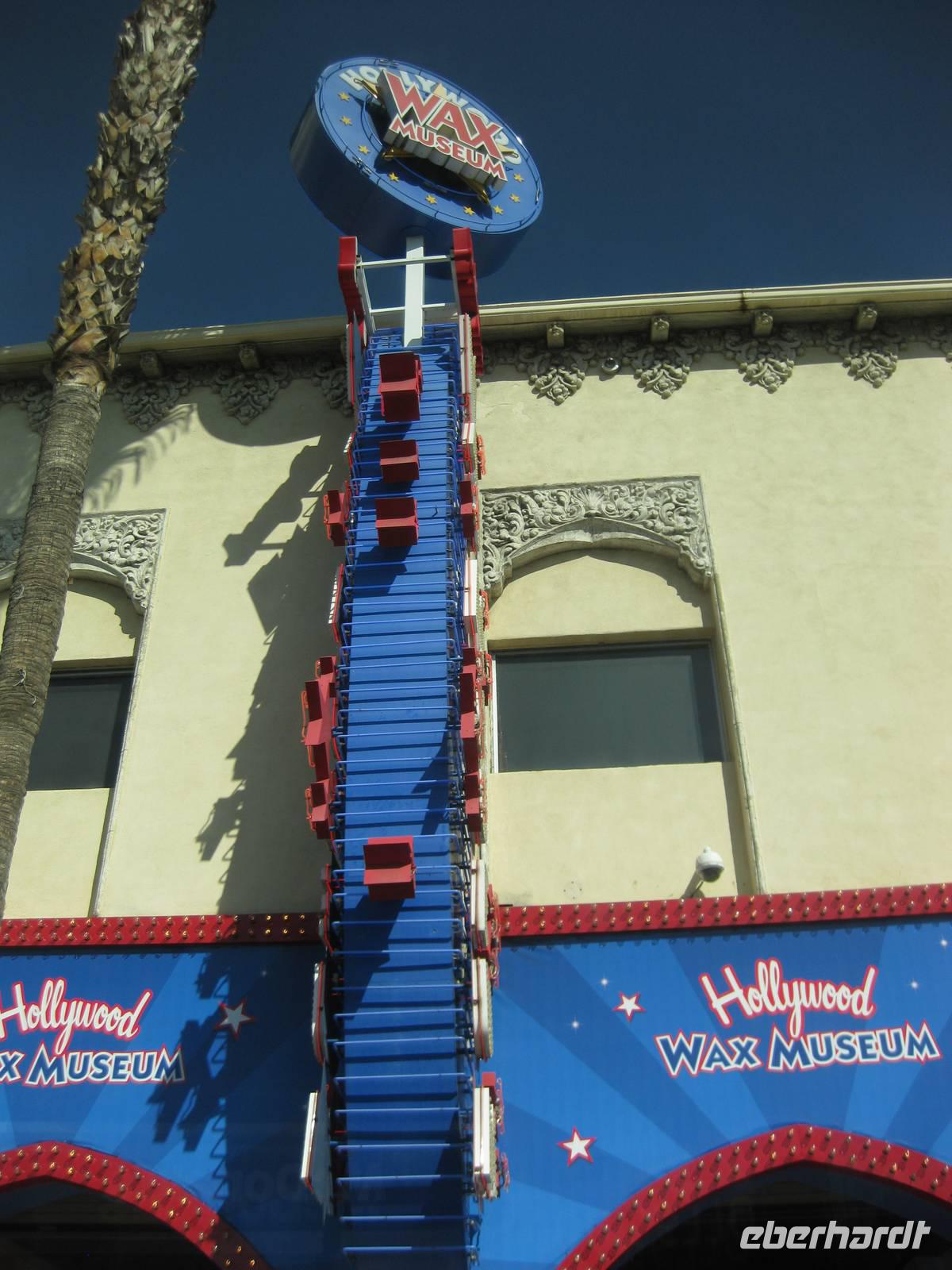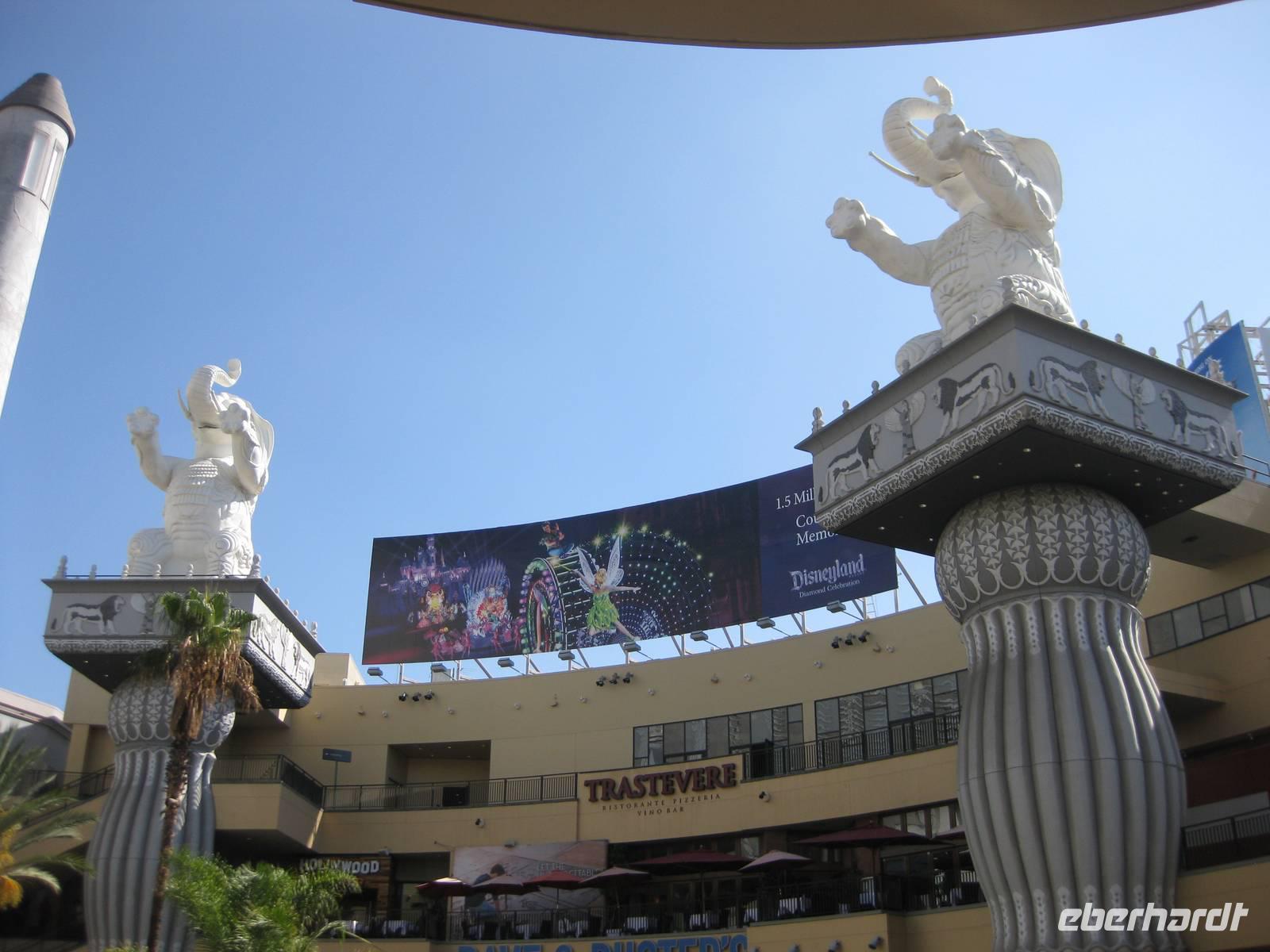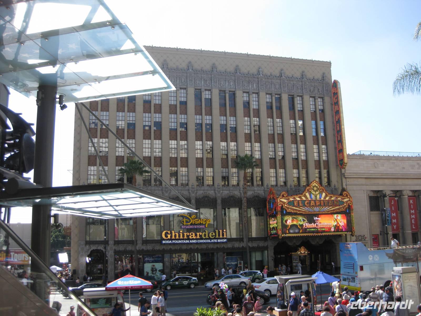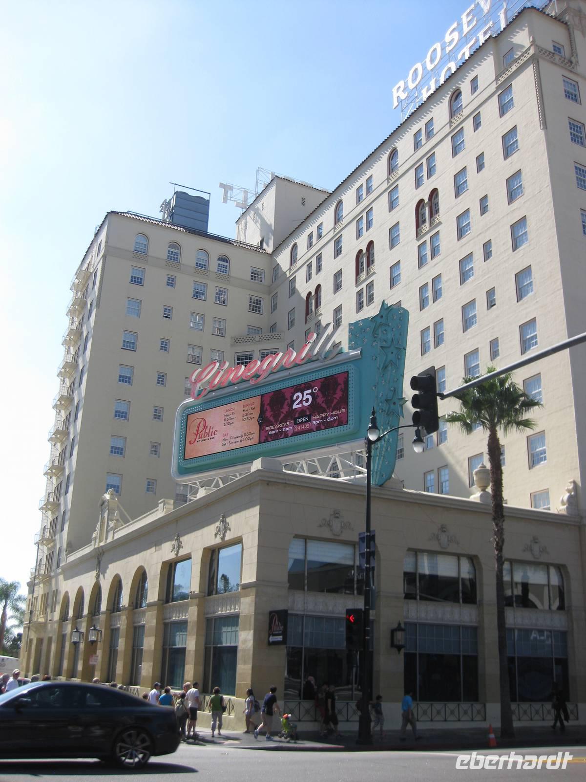 Und dann geht es schon in Richtung Hollywood. Wir fahren den Hollywood Boulevard entlang. Gegenüber vom Roosevelt Hotel hält unser Bus und wir steigen aus, um die wichtigsten Orte in Hollywood zu besuchen. Zuerst gehen wir auf dem „Walk of Fame" und bestaunen die Sterne mit den berühmten Namen. Einige Sterne waren wohl noch frei für uns, aber keiner hat uns entdeckt und unsere Namen den Sternen gegeben - schade. Auch die Fuß- und Handabdrücke der Stars haben wir vor dem Chinesischen Theater gesehen und die unserer Lieblingsstars gesucht. Das ist schon beeindruckend, wenn man an diesem Ort wirklich ist. Auch am Durchblick zu den großen Buchstaben „HOLLYWOOD" haben wir ein Foto von uns machen lassen. Und das Kino „La Capitan", wo sämtliche Premieren aller Disney-Filme stattfanden und finden haben wir gesehen.