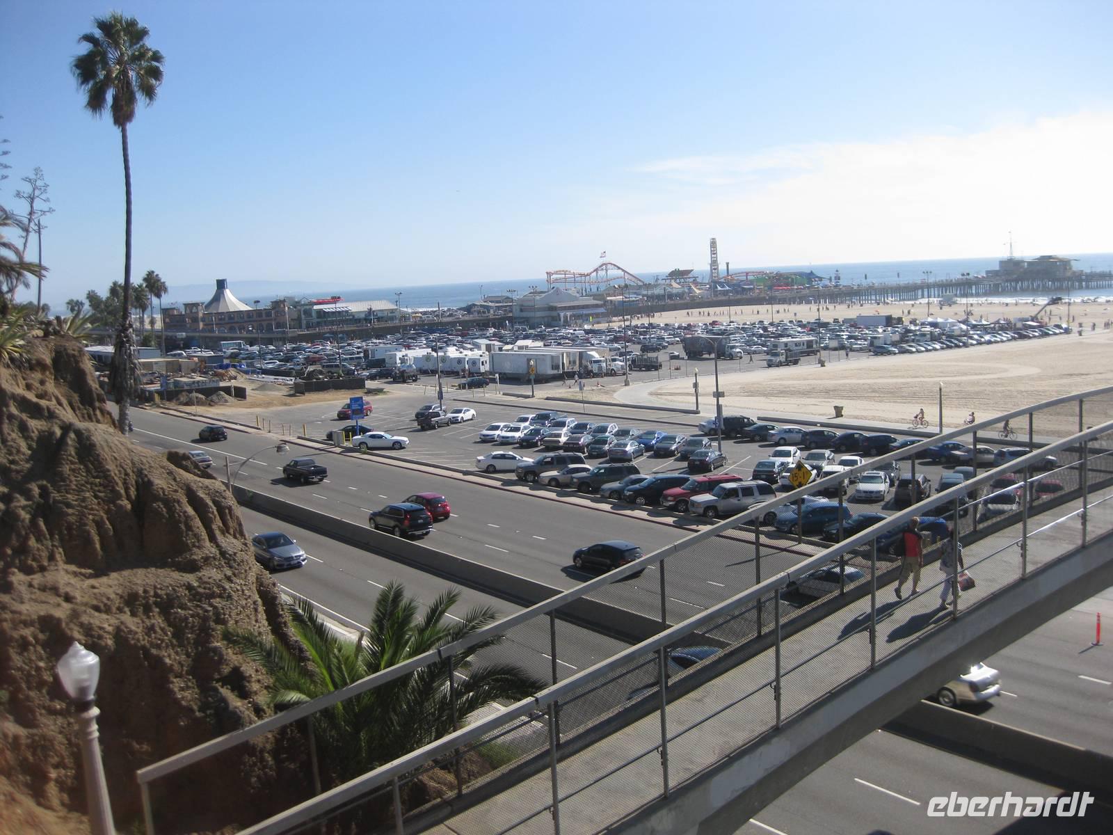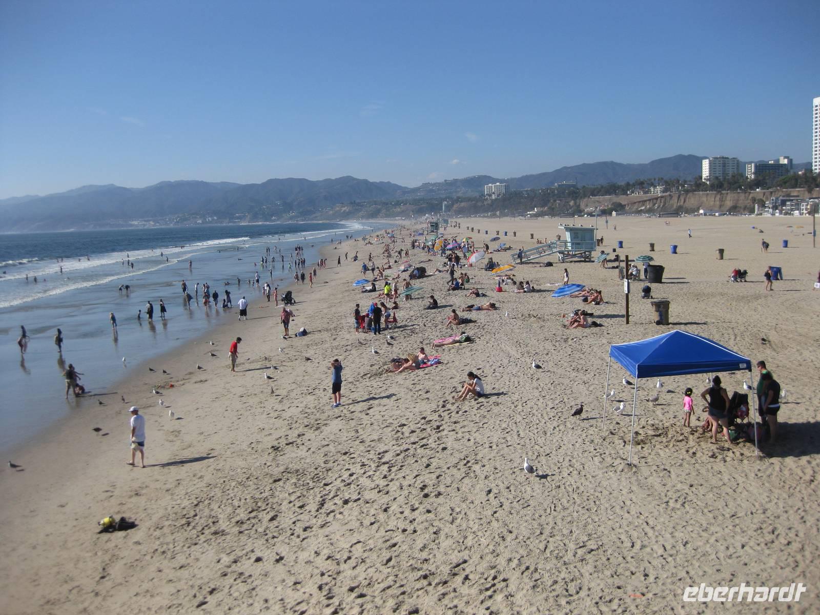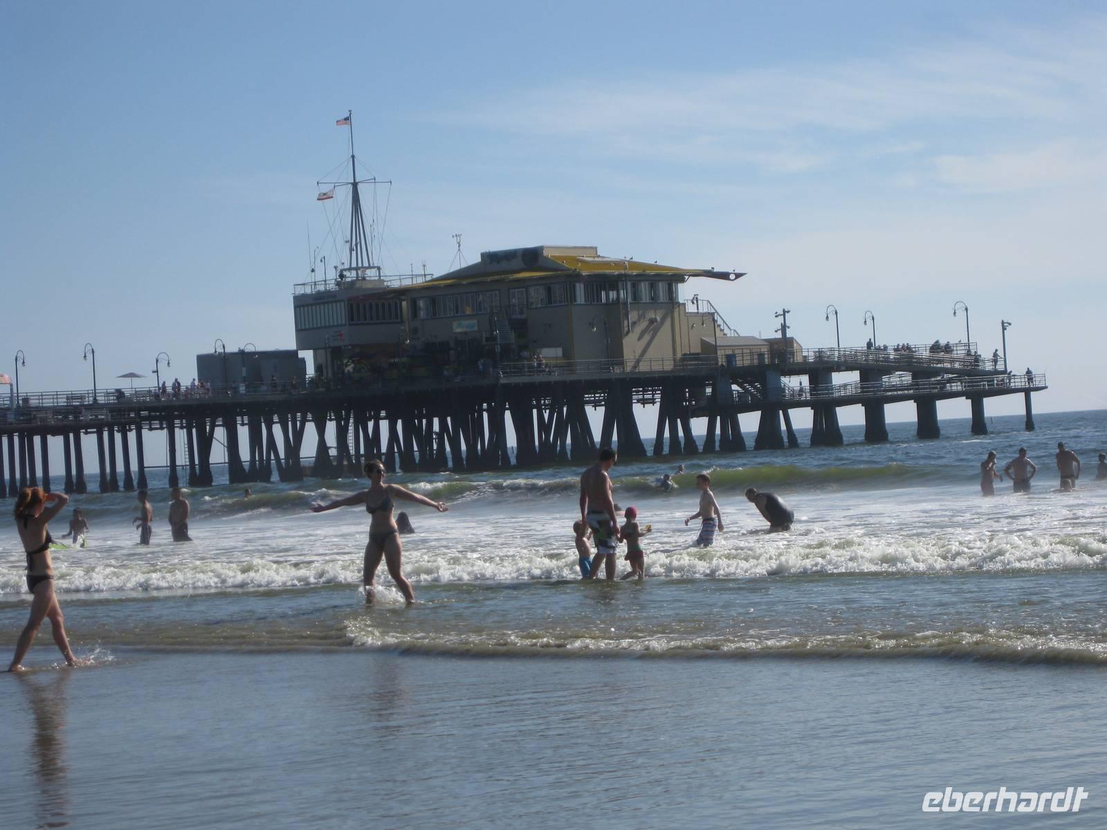 Am Nachmittag erreichen wir Santa Monica, den Badeort am Pazifischen Ozean. Hier haben wir eine größere Pause und können das herrliche Sommerwetter und den Strand genießen. Am Abend nehmen wir in Santa Monica unser Abendessen ein und dann fahren wir zur „Queen Mary" zurück. Ein erster super Tag mit aufregenden Erlebnissen und tollem Wetter geht zu Ende.