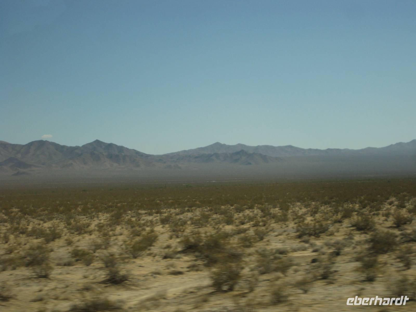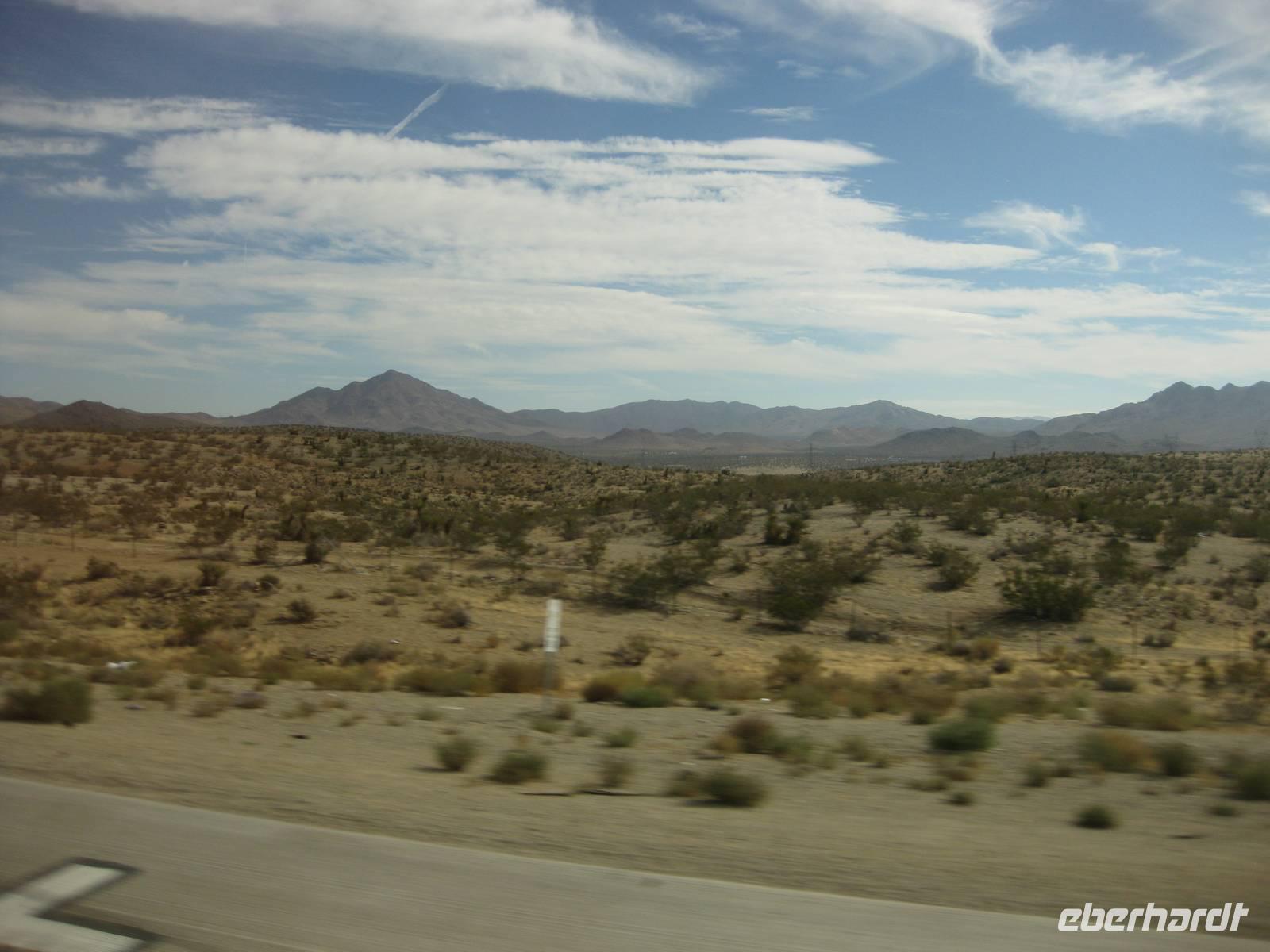 Langsam wird die Besiedlung immer weniger. Wir fahren aus dem Los Angeles Basin auf das Hochplateau der Mojave-Wüste. Die meist stachlige Flora grüßt uns.