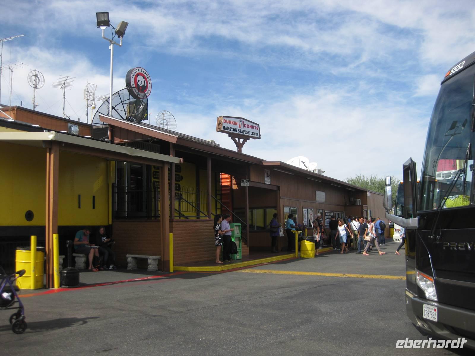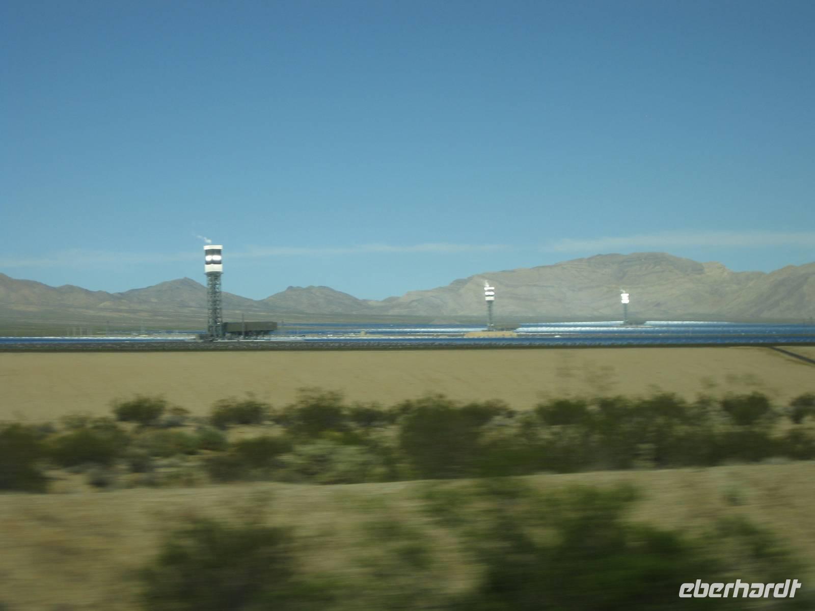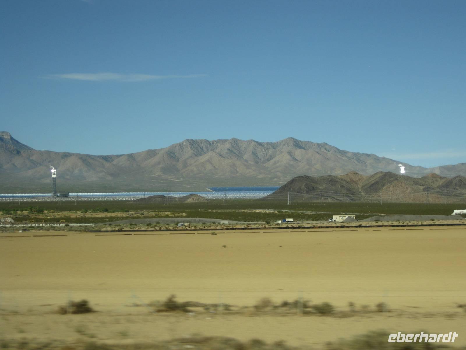 Auf Grund der Programmänderung, dass wir nicht in das Tal des Todes fahren können und deshalb eine andere Fahrstrecke nehmen müssen, fahren wir heute etwas später los, erst 9.30 Uhr. Wir verlassen Las Vegas und fahren auf dem Highway Nr.15 durch die Wüste Nevada. Bald verlassen wir den Bundesstaat Nevada und sind wieder in Kalifornien. Auch hier geht der Highway durch die Wüste. Wir kommen an einem großen Solarkraftwerk vorbei. Das wurde in den Jahren 2009 bis 2014 gebaut. Zur Mittagszeit erreichen wir wieder die Stadt Barstow. Am Stadtrand befindet sich ein großes Outlet-Center, in dem alle großen Marken vertreten sind. Hier machen wir Shopping- und Mittagspause.