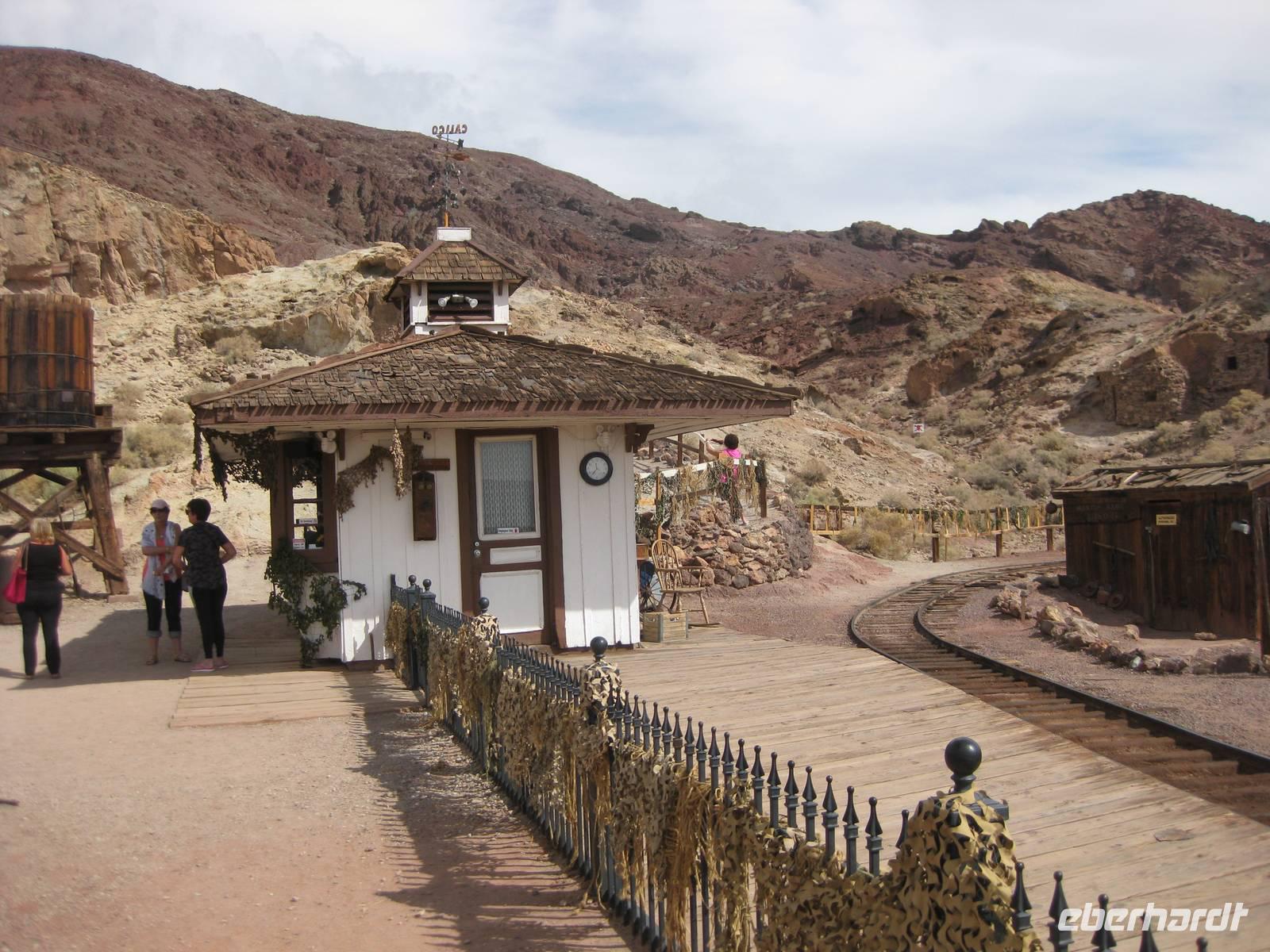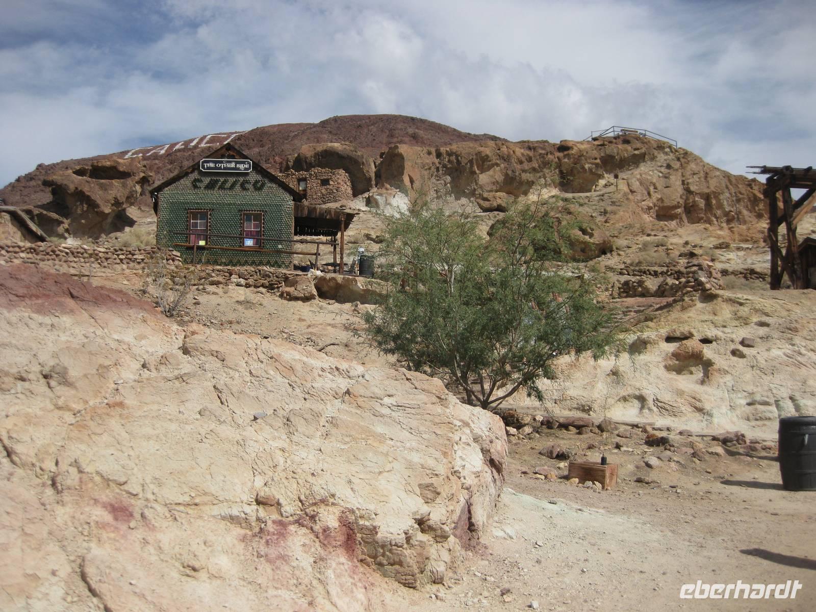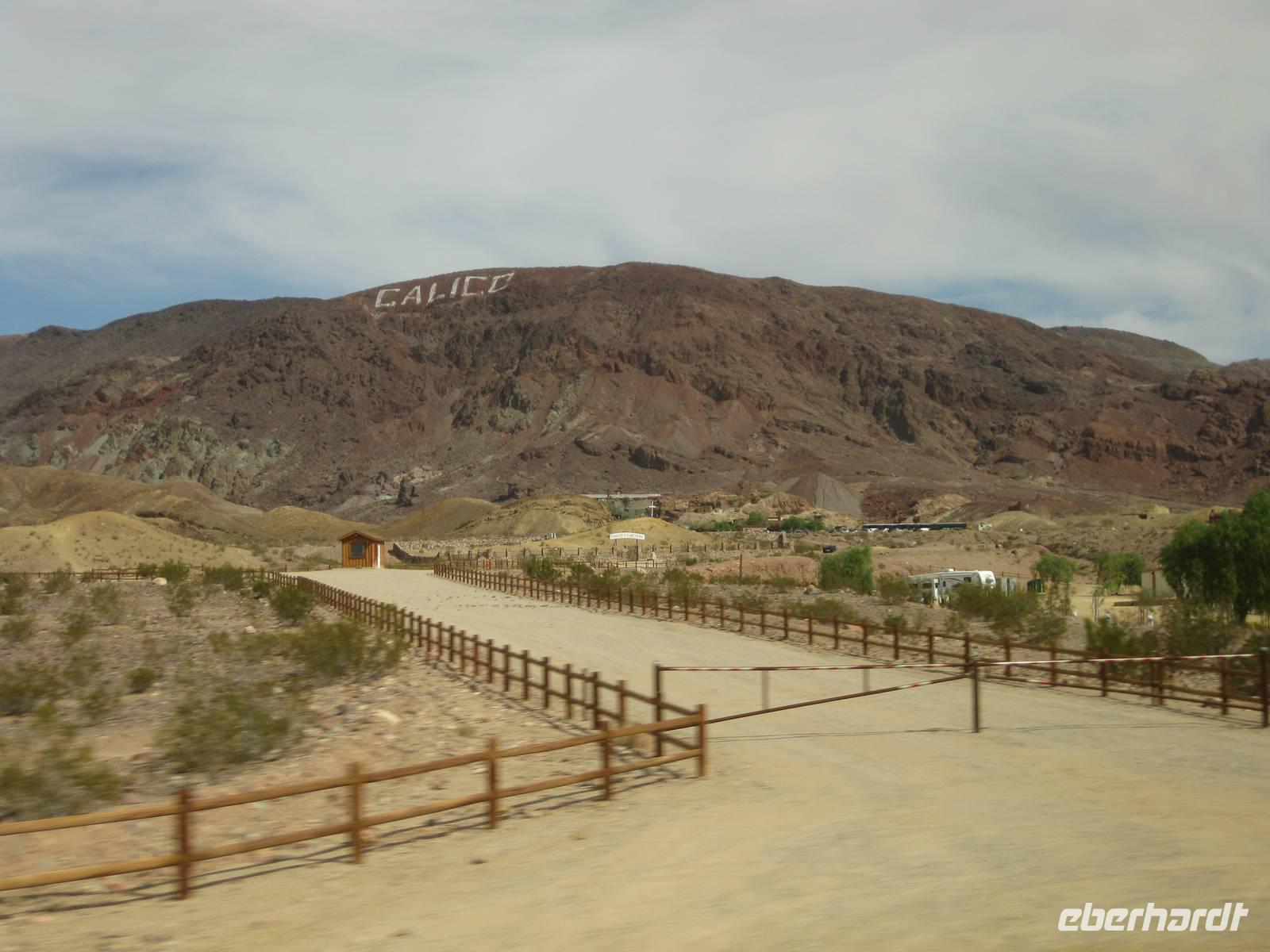 Nach ca. zwei Stunden Fahrt erreichen wir das kleine Städtchen Barstow in der Wüste und kurz danach die Geisterstadt Calico. Hier machen wir Halt und besichtigen das Städtchen. Wir erhalten ein Bild von der Bergwerksstadt, in der 1881 die reichsten Silberfunde Kaliforniens gemacht wurden. Wir werden vom Sheriff begrüßt. Es gibt echte Saloons, in denen man einkehren kann, zahlreiche Geschäfte, in denen man Souvenire erwerben kann, eine Schule, ... Es ist alles so liebevoll hergerichtet, dass man sich in die damalige Zeit zurück versetzt fühlt und sich das Leben vorstellen kann.