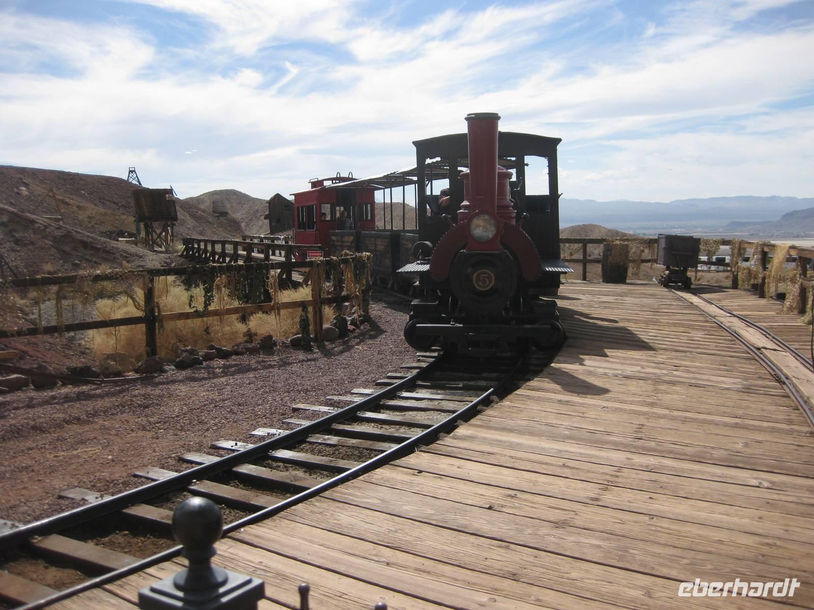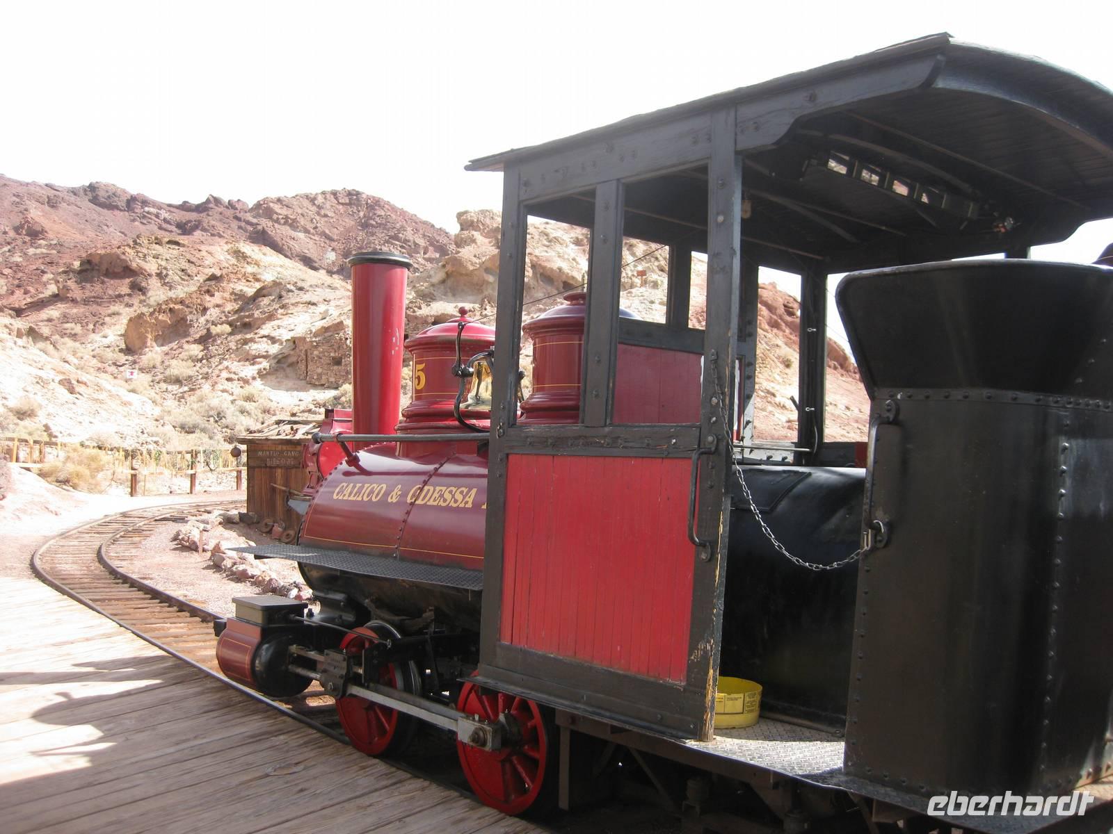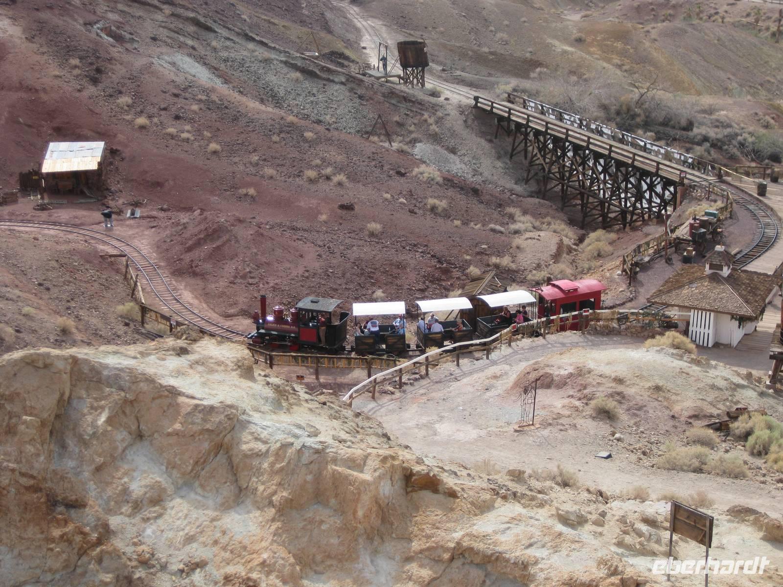 Nach ca. zwei Stunden Fahrt erreichen wir das kleine Städtchen Barstow in der Wüste und kurz danach die Geisterstadt Calico. Hier machen wir Halt und besichtigen das Städtchen. Wir erhalten ein Bild von der Bergwerksstadt, in der 1881 die reichsten Silberfunde Kaliforniens gemacht wurden. Wir werden vom Sheriff begrüßt. Es gibt echte Saloons, in denen man einkehren kann, zahlreiche Geschäfte, in denen man Souvenire erwerben kann, eine Schule, ... Es ist alles so liebevoll hergerichtet, dass man sich in die damalige Zeit zurück versetzt fühlt und sich das Leben vorstellen kann.