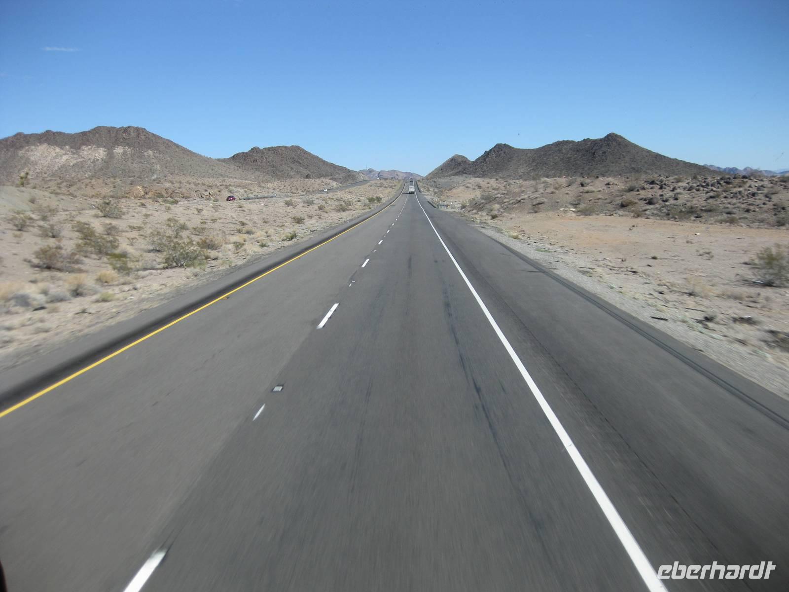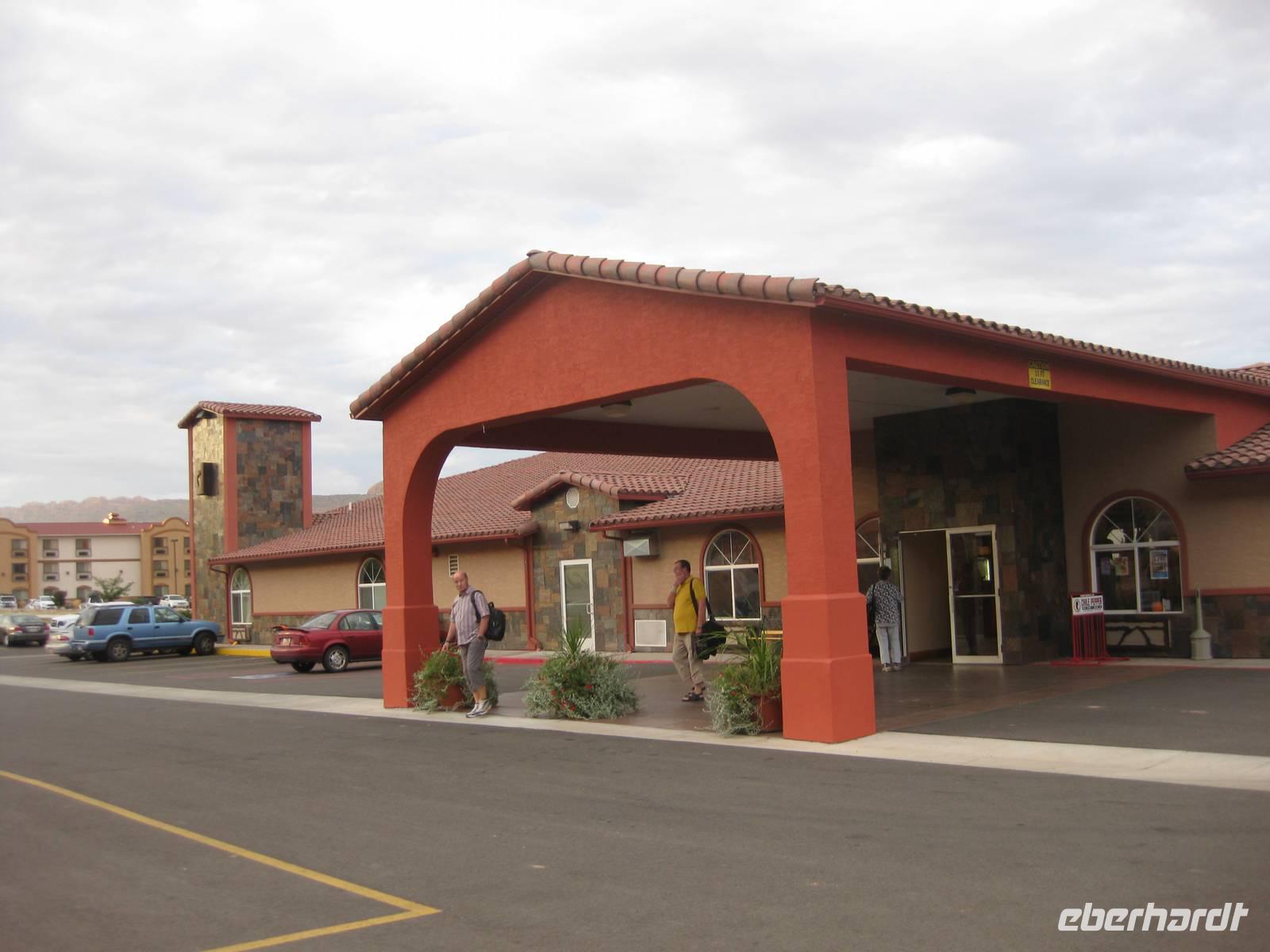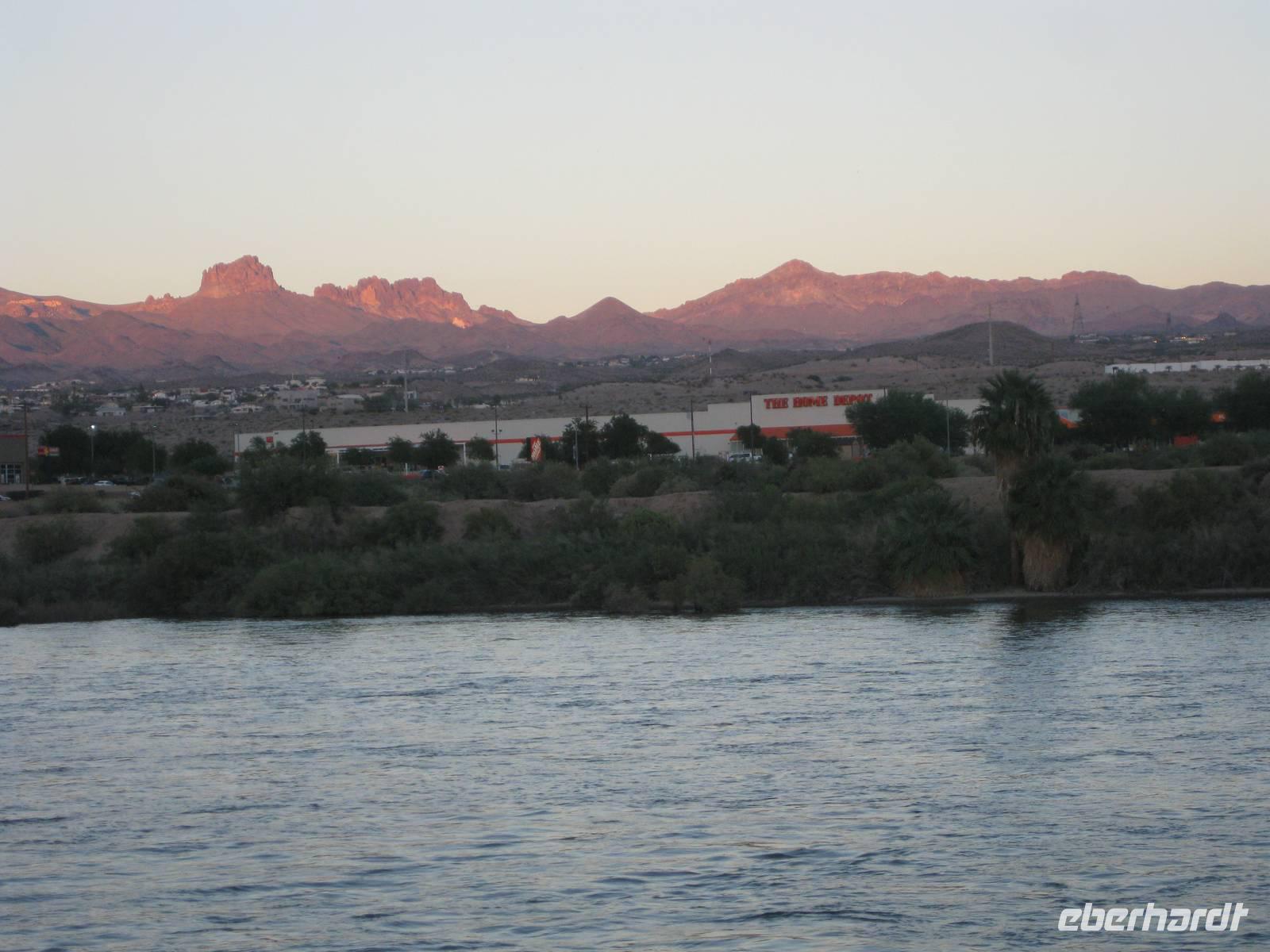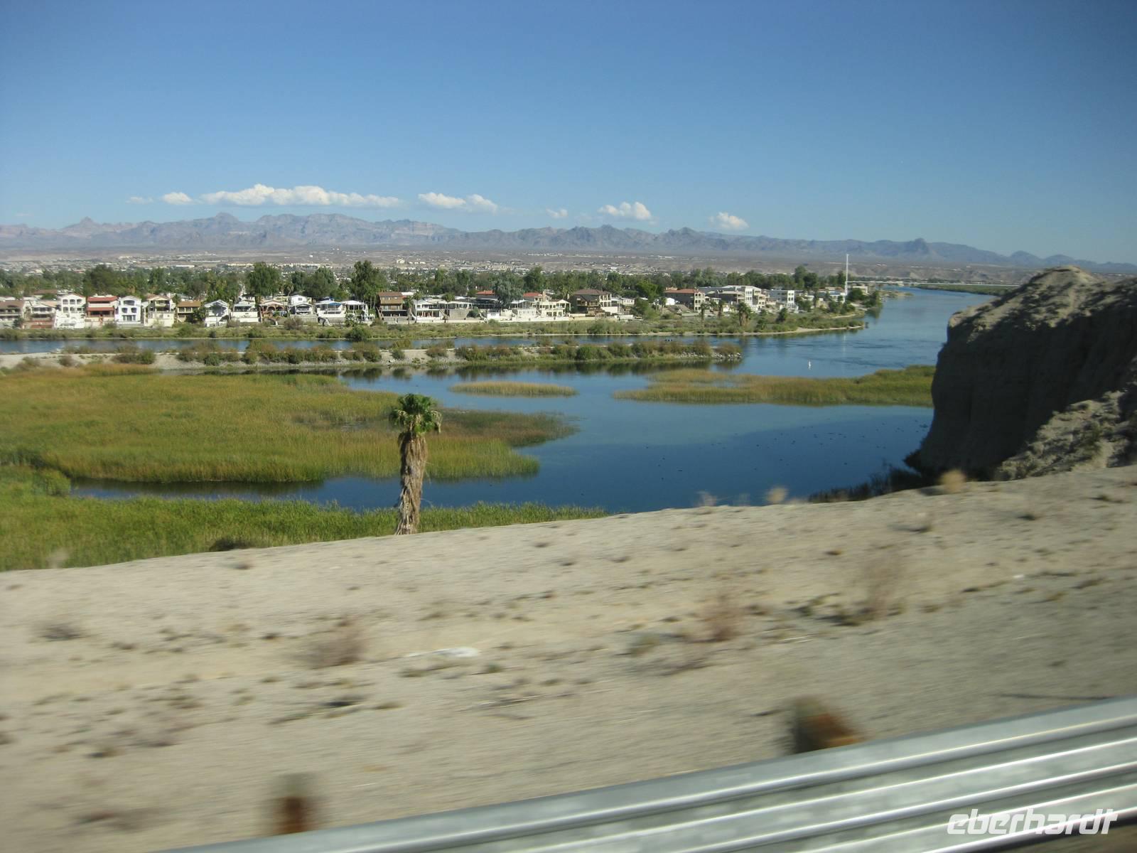 Nach dem Frühstück starten wir zu unserer heutigen Etappe. Es sind alle wieder da, keiner hat den großen Gewinn im Casino gemacht. Oder hat gar keiner gespielt und sein Glück versucht? Wir passieren gleich hinter unserem Hotel den Colorado-Fluss und sind auch schon im Bundesstaat Arizona, dem Canyon-Staat. Wir haben wieder eine längere Fahrt vor uns.