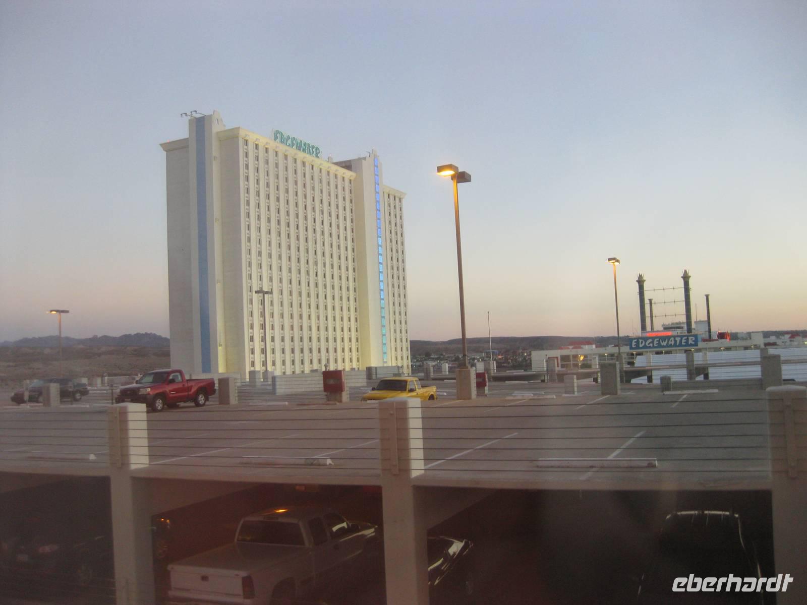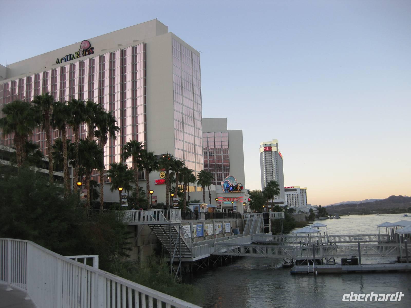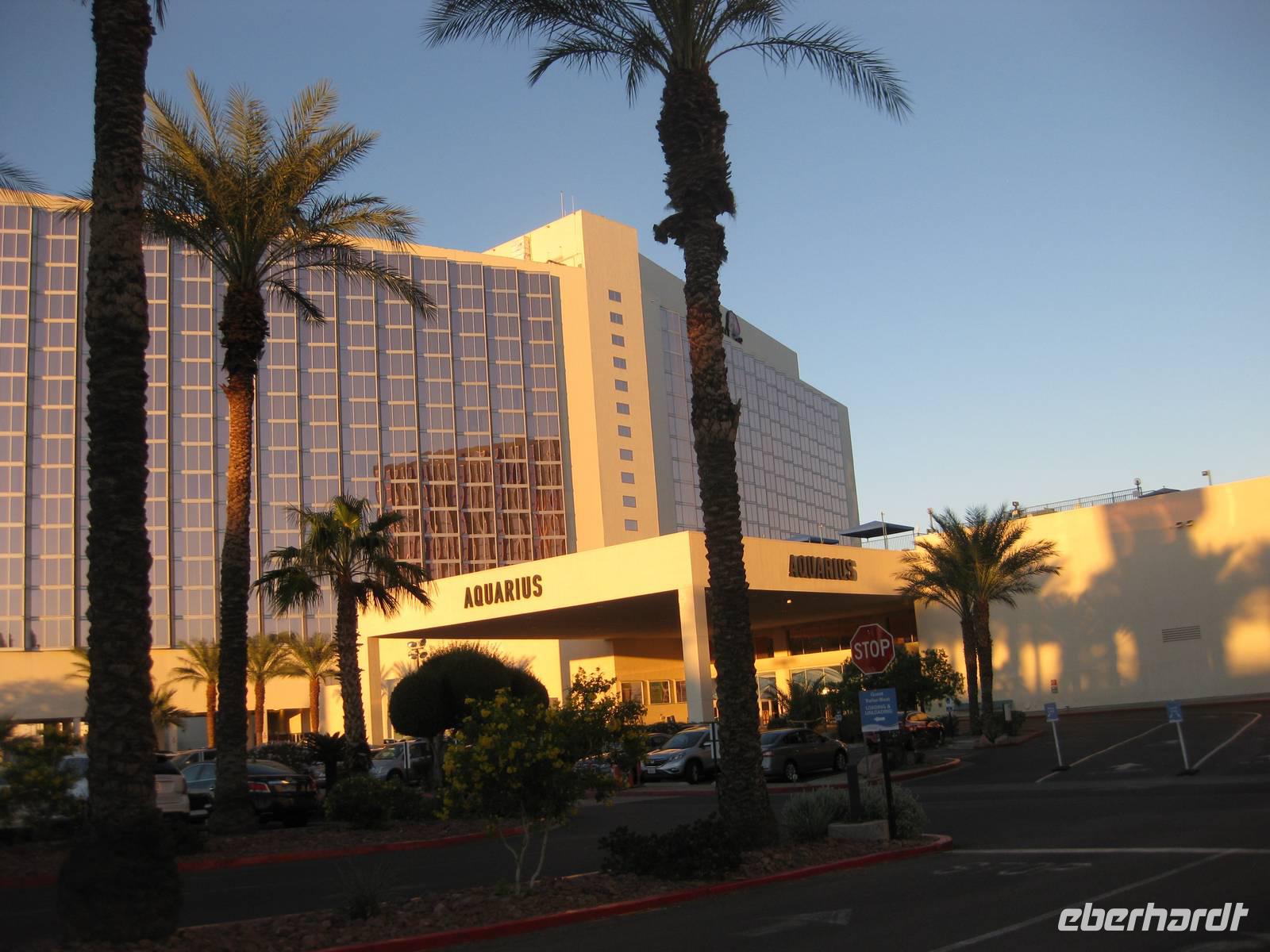 Nach einer längeren Pause setzen wir unsere Fahrt fort. Wir erleben eine sehr schöne und interessante Fahrt durch die Wüste. Nach ca. drei Stunden Fahrt wird es grüner. Wir nähern uns jetzt dem Fluss Colorado. Wir verlassen Kalifornien und kommen in den Bundesstaat Nevada nach Laughlin am Colorado. Laughlin ist die „kleine Schwester von Las Vegas". Hier kommen die Gäste nur her, weil sie spielen wollen. Wir, weil wir übernachten wollen. In Nevada ist das Glücksspiel seit 1938 legalisiert. Wir übernachten im Hotel Aquarius. Es ist ein riesiger Hotelkomplex. Gleich neben der Rezeption befindet sich das großes Casino. Wir müssen da durch, wenn wir zum Restaurant zum Essen gehen. Und gegenüber vom Hotel befindet sich ein Outlet Center, wo man den Shoppingfreuden frönen kann. Einige von uns tun das. Am Abend treffen wir uns zum Essen im Restaurant. Ein spannender Tag geht zu Ende.