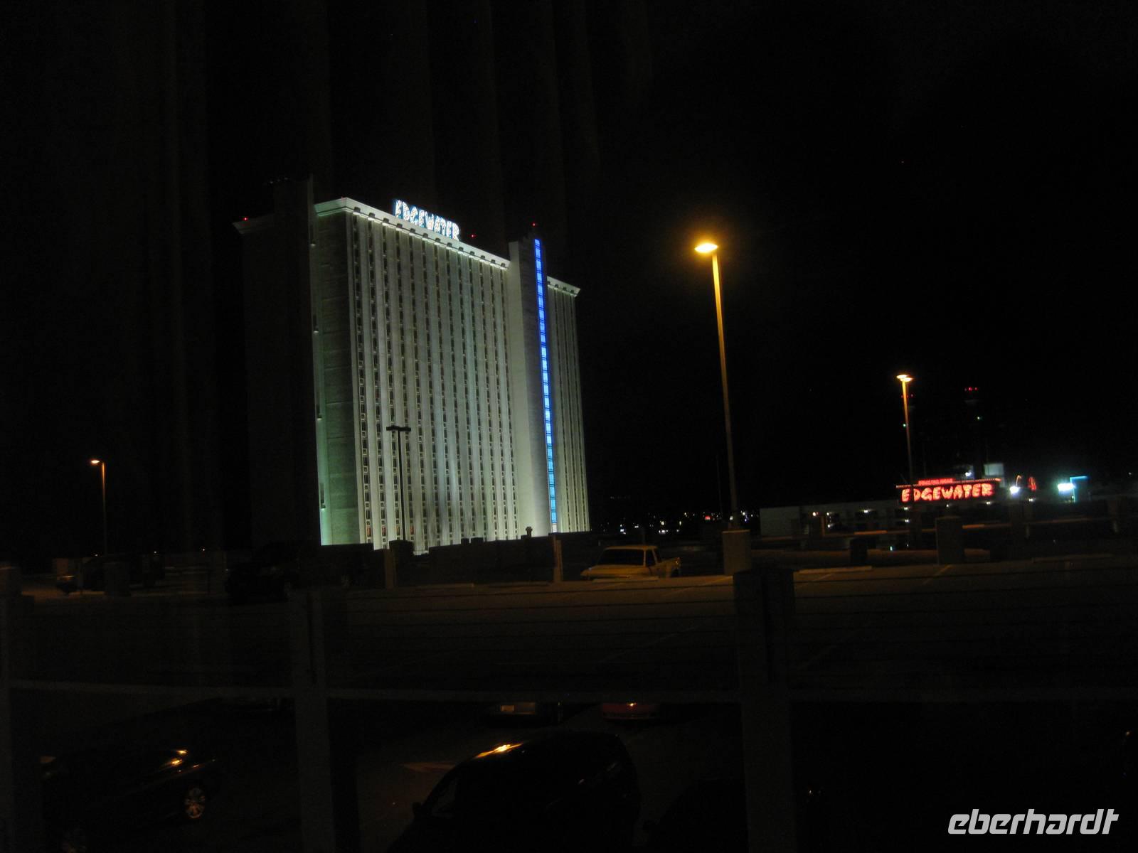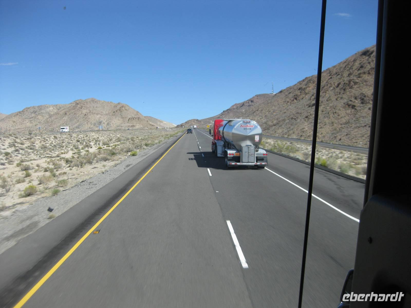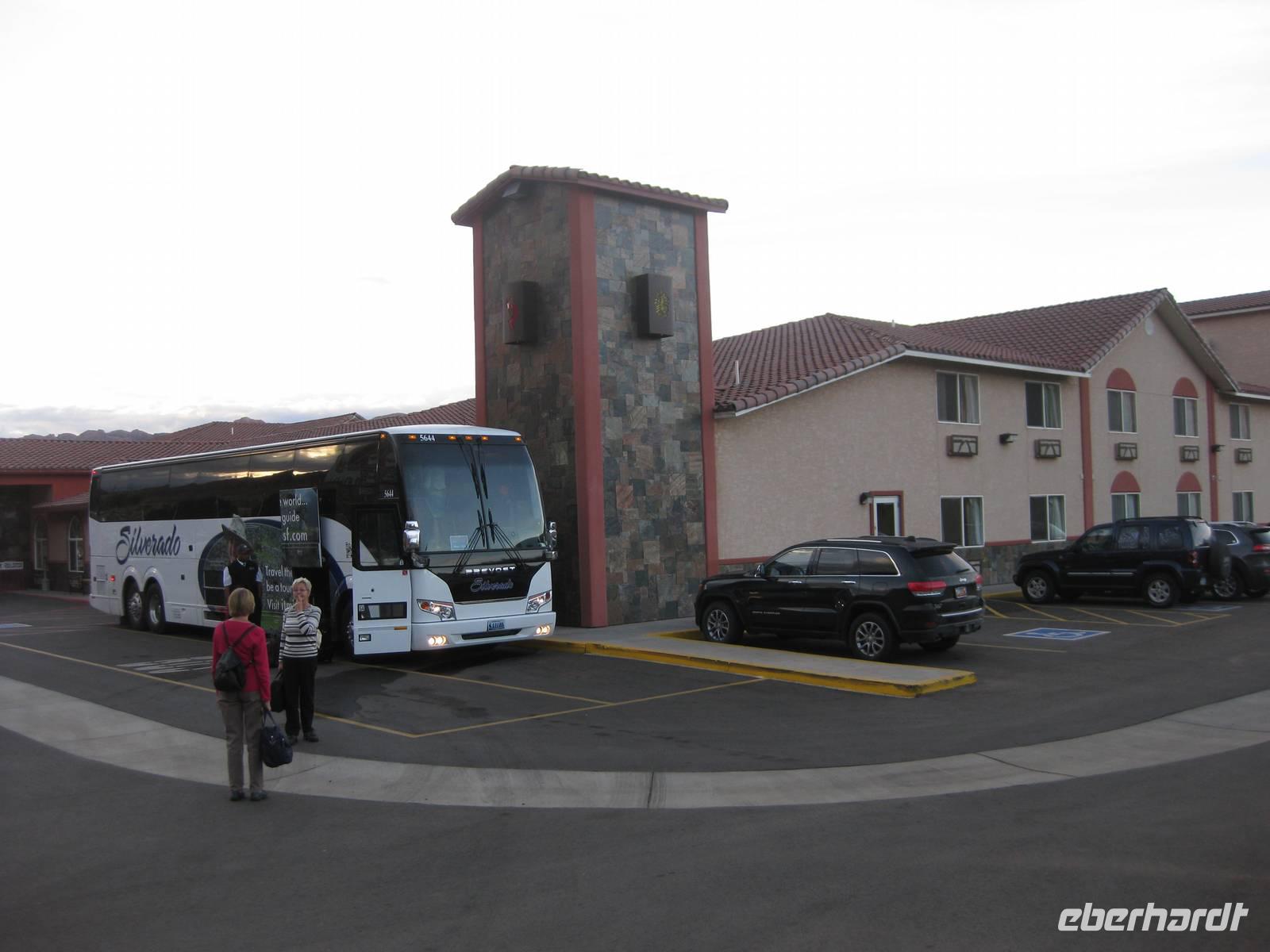 Nach einer längeren Pause setzen wir unsere Fahrt fort. Wir erleben eine sehr schöne und interessante Fahrt durch die Wüste. Nach ca. drei Stunden Fahrt wird es grüner. Wir nähern uns jetzt dem Fluss Colorado. Wir verlassen Kalifornien und kommen in den Bundesstaat Nevada nach Laughlin am Colorado. Laughlin ist die „kleine Schwester von Las Vegas". Hier kommen die Gäste nur her, weil sie spielen wollen. Wir, weil wir übernachten wollen. In Nevada ist das Glücksspiel seit 1938 legalisiert. Wir übernachten im Hotel Aquarius. Es ist ein riesiger Hotelkomplex. Gleich neben der Rezeption befindet sich das großes Casino. Wir müssen da durch, wenn wir zum Restaurant zum Essen gehen. Und gegenüber vom Hotel befindet sich ein Outlet Center, wo man den Shoppingfreuden frönen kann. Einige von uns tun das. Am Abend treffen wir uns zum Essen im Restaurant. Ein spannender Tag geht zu Ende.