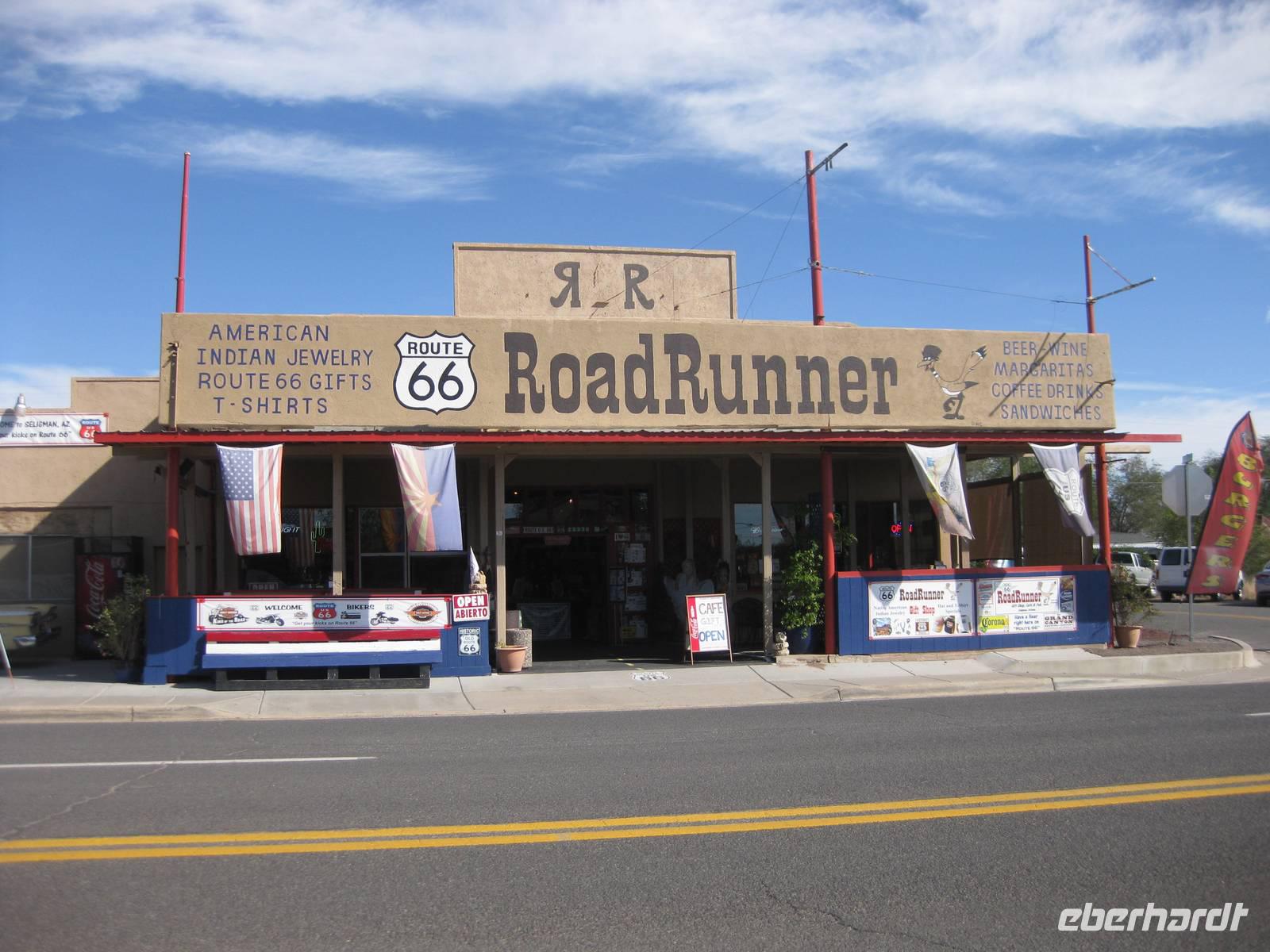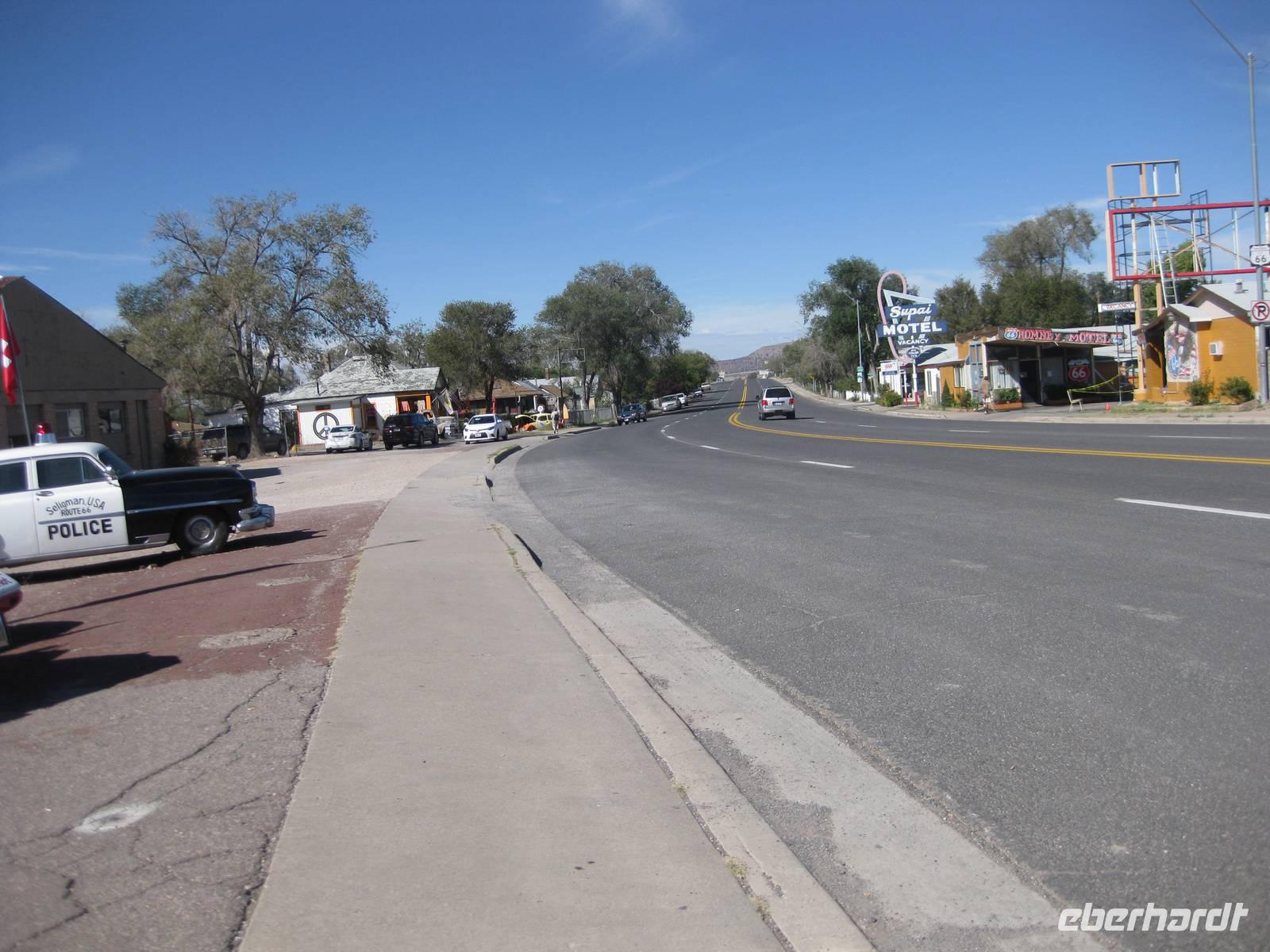 Ein ganzes Stück fahren wir durch die Prärie auf der Route 66 entlang. In dem Örtchen Seligman legen wir einen Stopp ein. Hier gibt es Souvenire aller Art zur Route 66. Auch ein paar Biker aus Germany treffen wir. Ansonsten geht es recht ruhig auf dem Traditions-Highway zu. Viel Verkehr ist nicht.