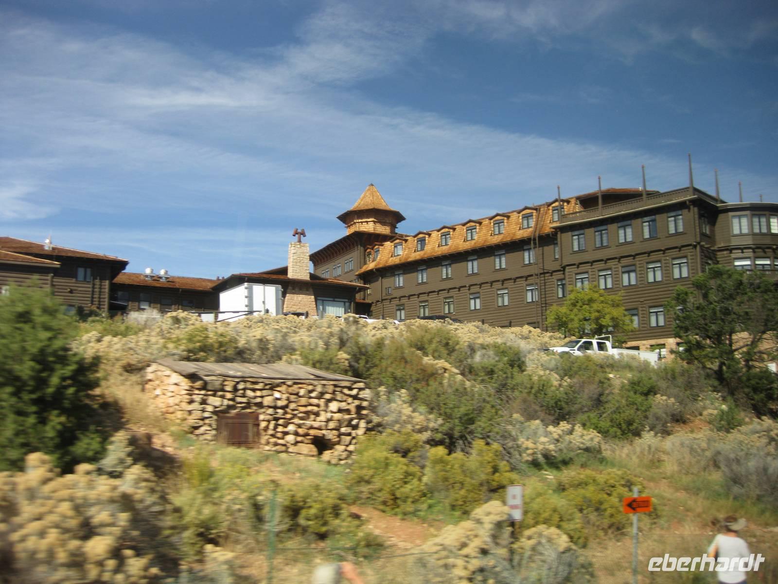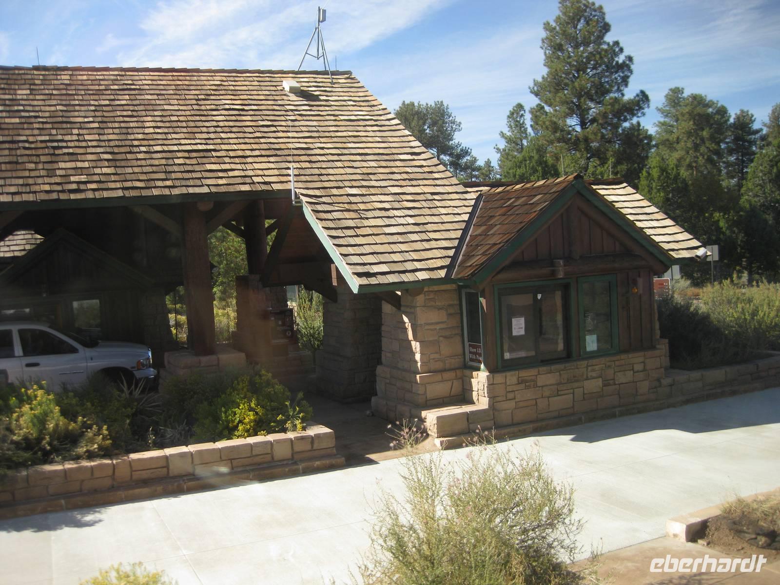 Dann geht es weiter in Richtung Grand Canyon Nationalpark. Wir fahren an der Heimat der Simpsens vorbei. Und dann zum Mittag sind wir auch schon am Eingang zum Grand Canyon Nationalpark. Wir fahren hinein und bringen die Gäste, die den Rundflug über den Grand Canyon nicht gebucht haben, in das Grand Canyon Historic Village, wo sie sich schon mal die Beine vertreten können und auch einen Blick auf den Grand Canyon werfen können. Dort holen wir die Gäste nach unserem Rundflug wieder ab.