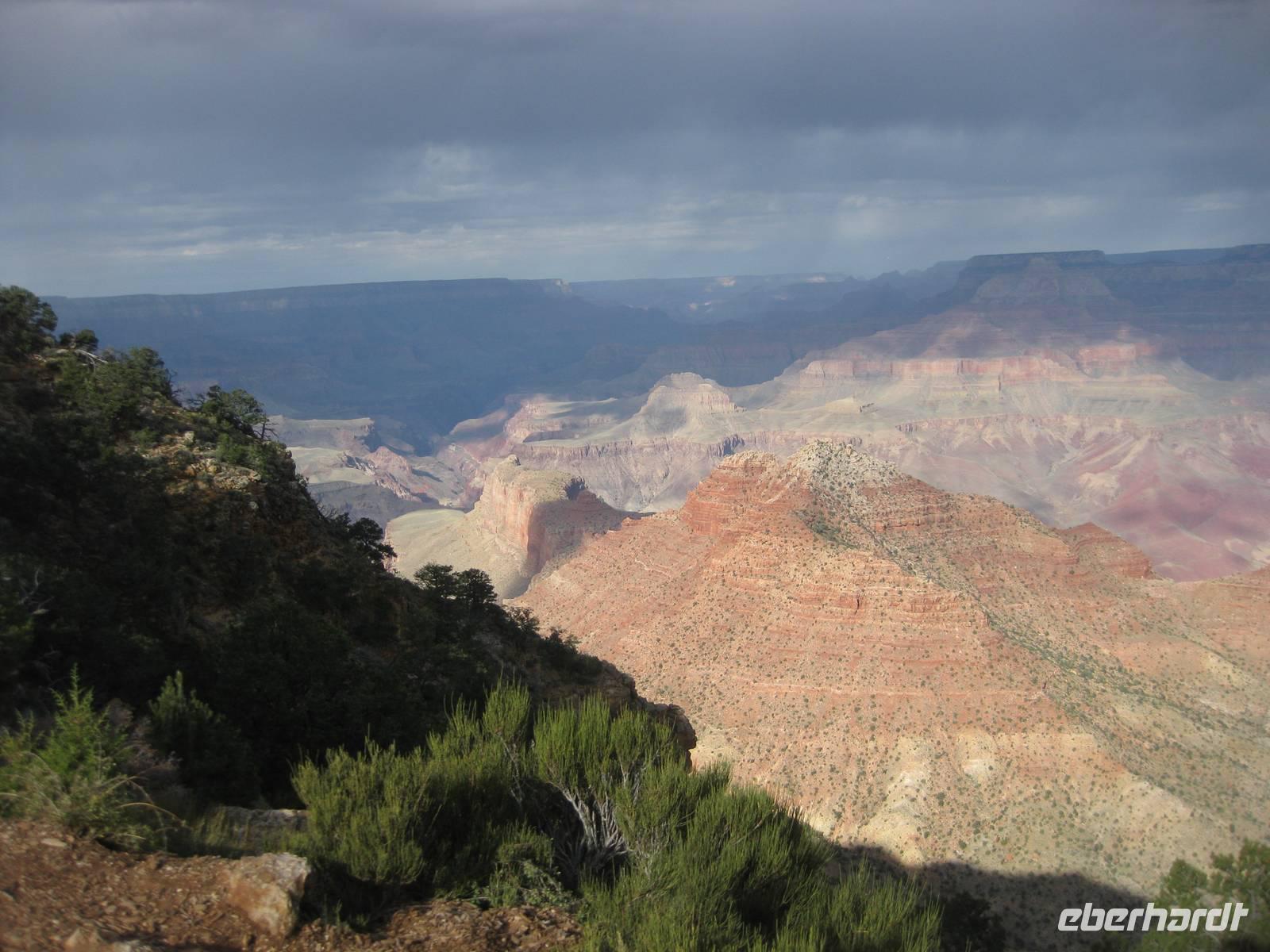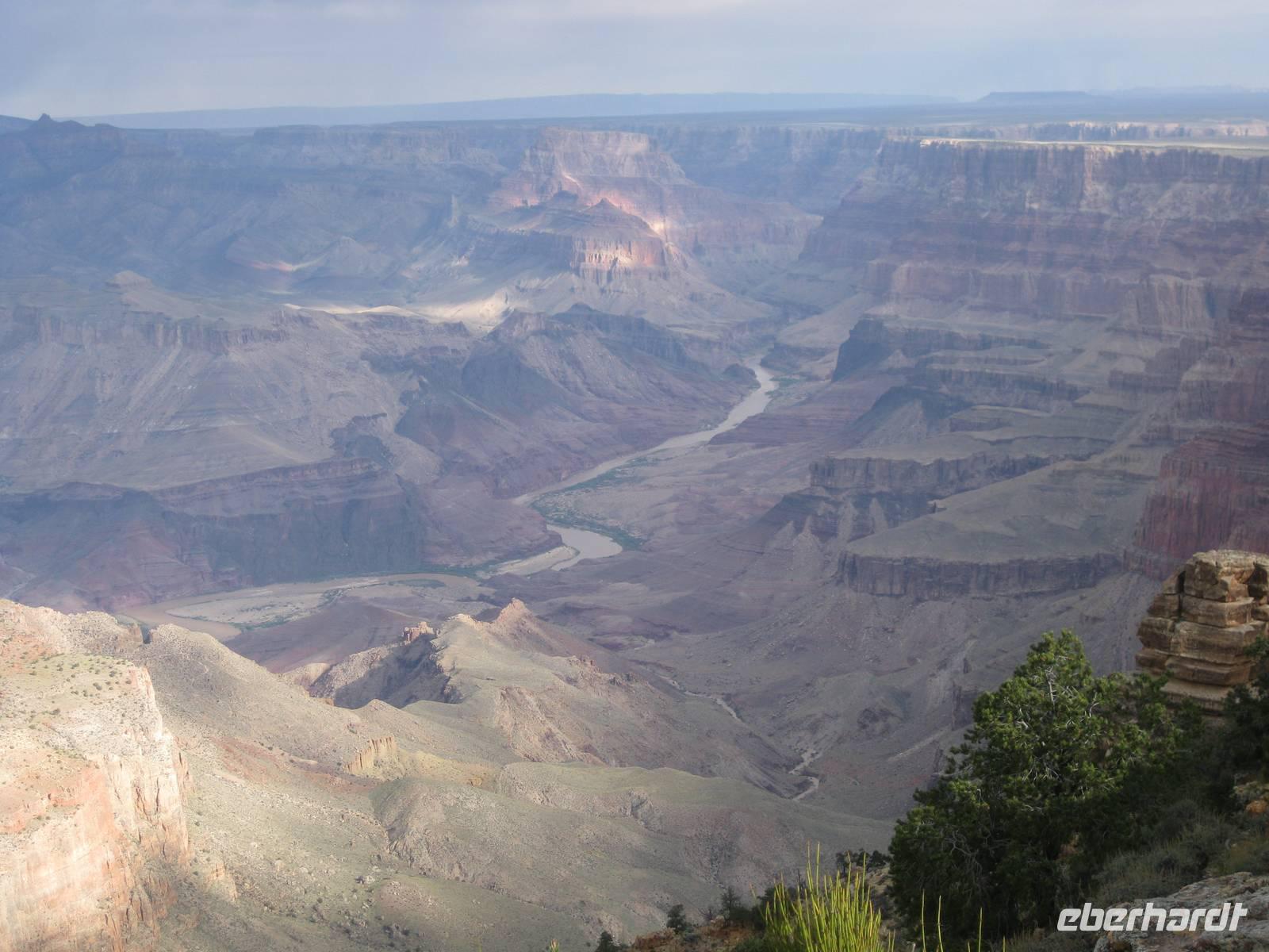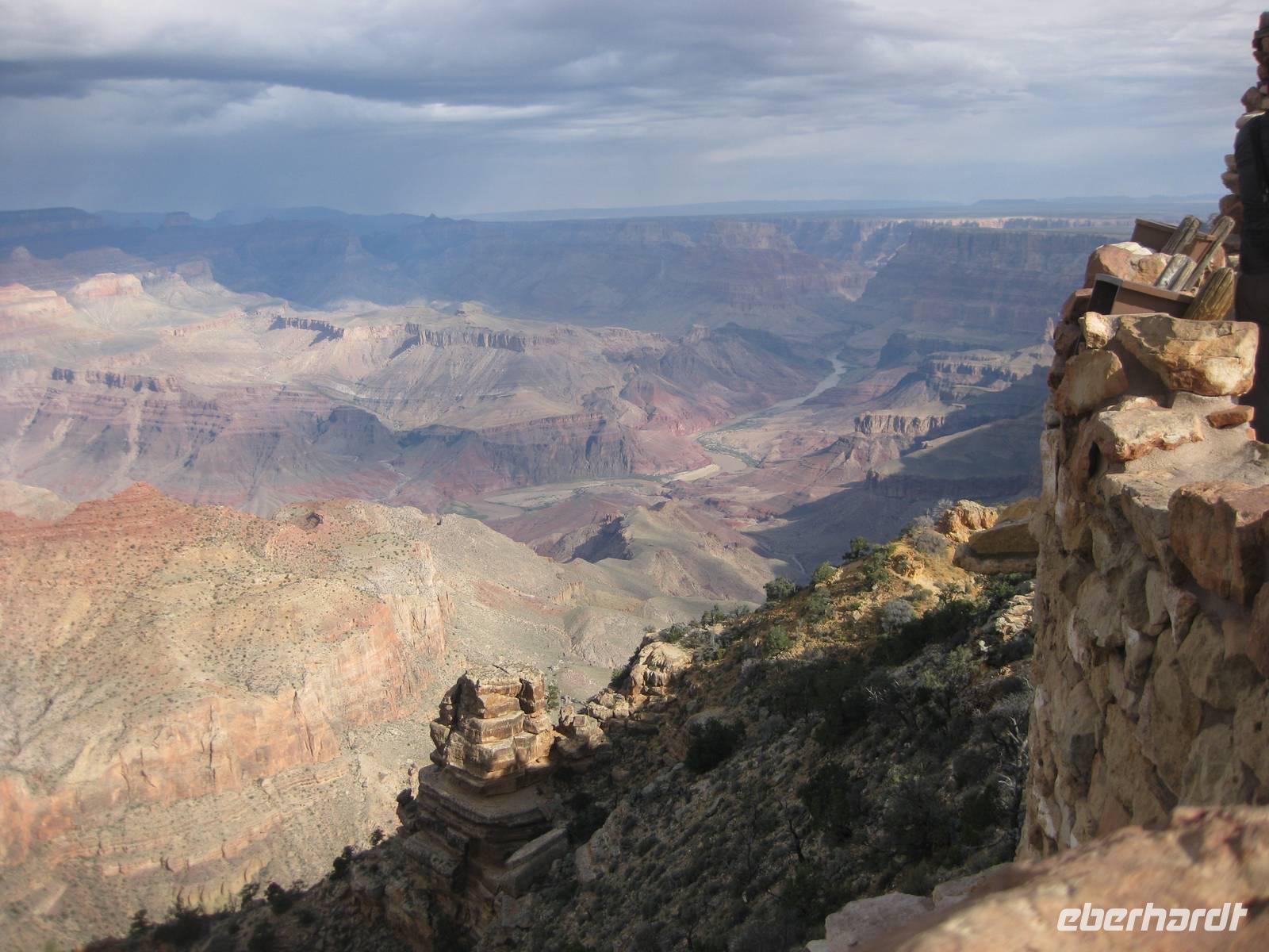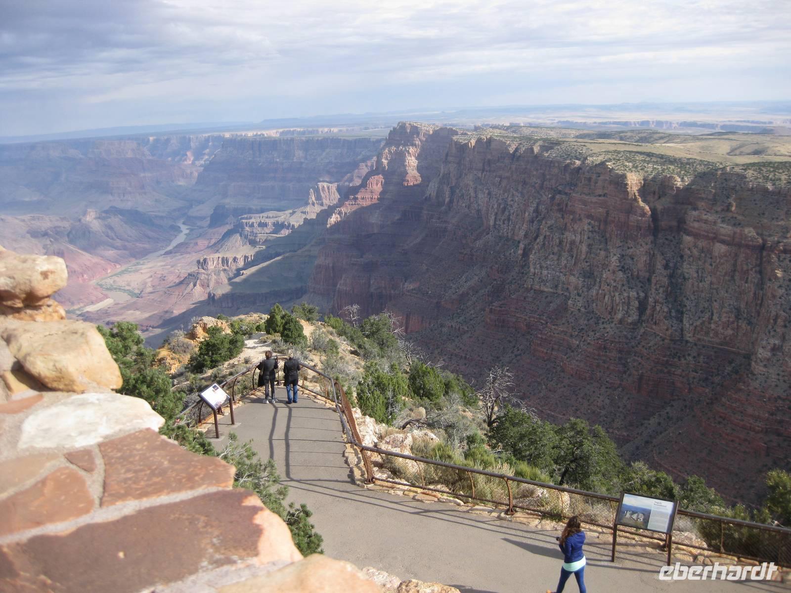 Und schon geht die Reise weiter. Am Morgen fahren wir noch einmal in den Nationalpark hinein bis zum Desert View Point. Hier bietet sich ein ganz anderer Blick auf den Grand Canyon als gestern - ein anderer Aussichtspunkt, eine andere Tageszeit und ganz andere Lichtverhältnisse. Und noch einmal faszinierend, wir können uns nur schwer trennen.