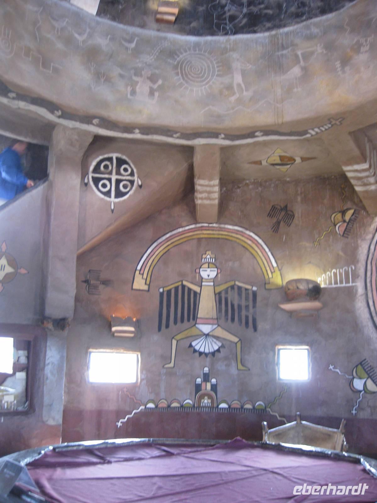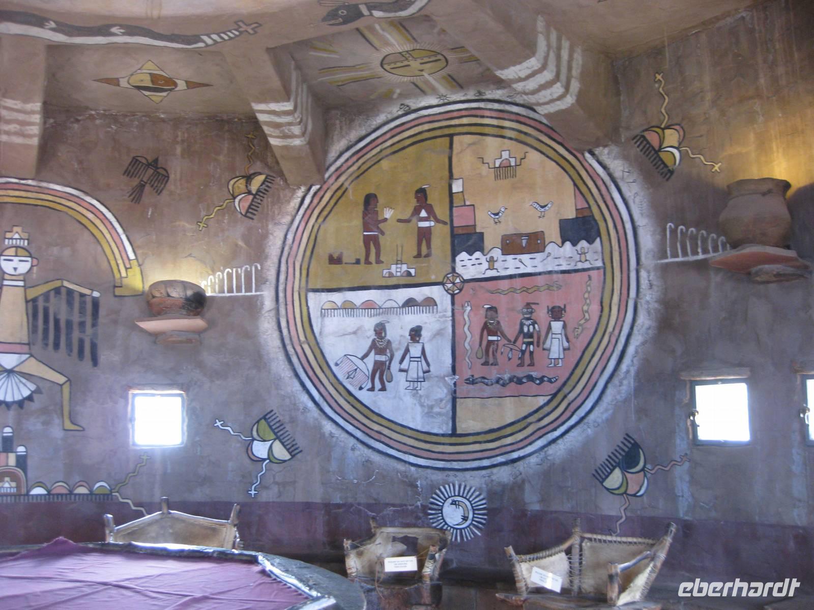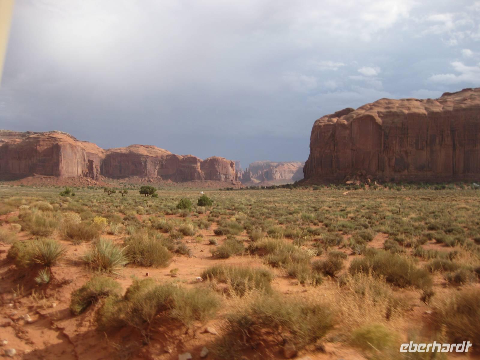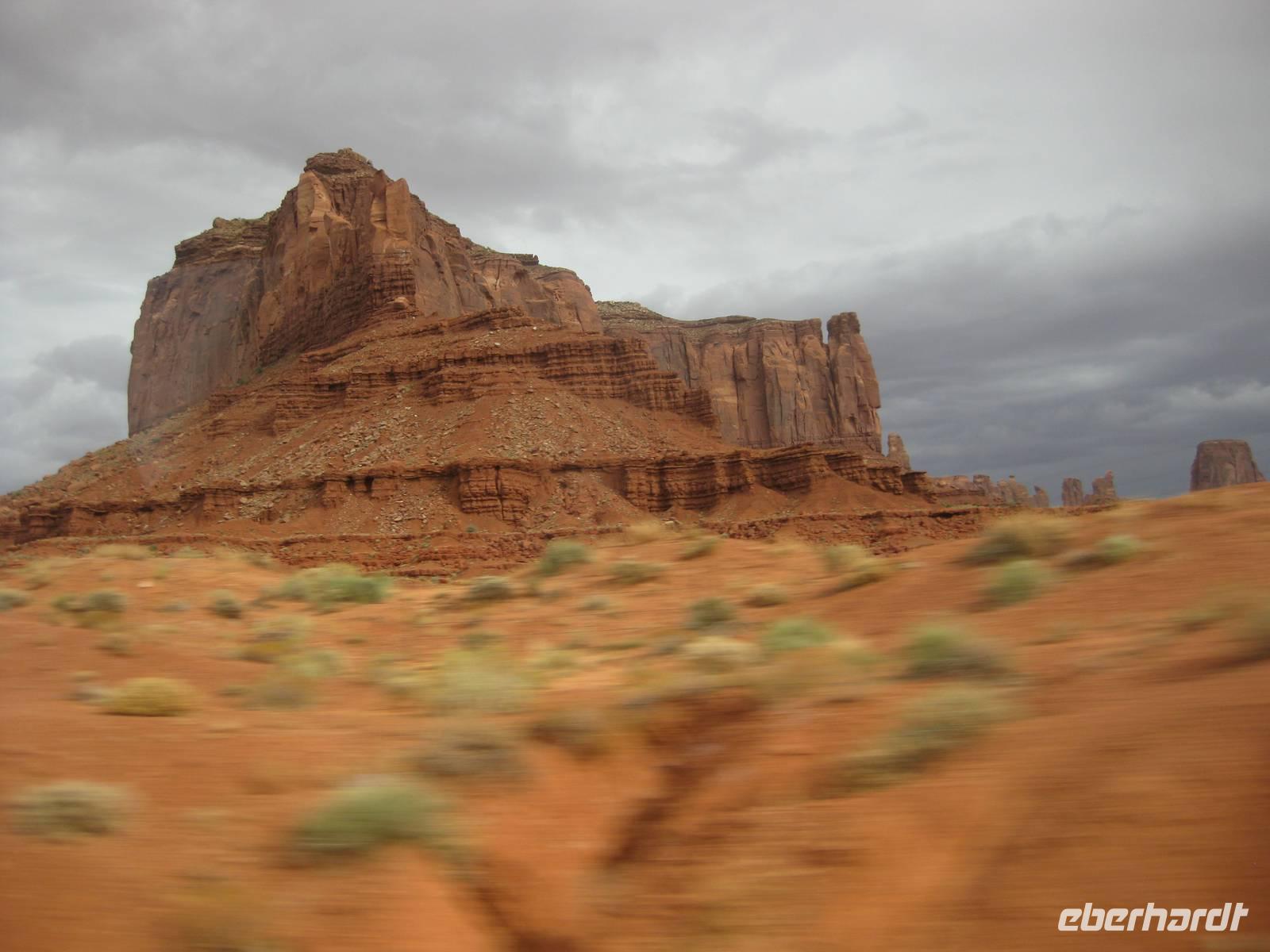 Gegen Mittag erreichen wir Monument Valley. Vom Visitor Center aus können wir schon einen ersten Blick auf die Felsen werfen. Wir besichtigen ein Holgan, Wohnhaus der Navajo-Indianer und dann steigen wir auf die allradgetriebenen Jeeps und machen eine Tour mit indianischer Führung durch das Monument Valley. Wir haben Glück, es ist nicht windig und auch nicht ganz soviel los, so dass es auch nicht so staubig ist. Im Tal am Fuß eines großen Felsens überraschen wir unsere Gäste mit einem indianischen Picknick. Dann setzen wir unsere Erkundungsfahrt durch das Monument Valley fort und bestaunen die Felsgebilde. Der Fantasie sind keine Grenzen gesetzt.