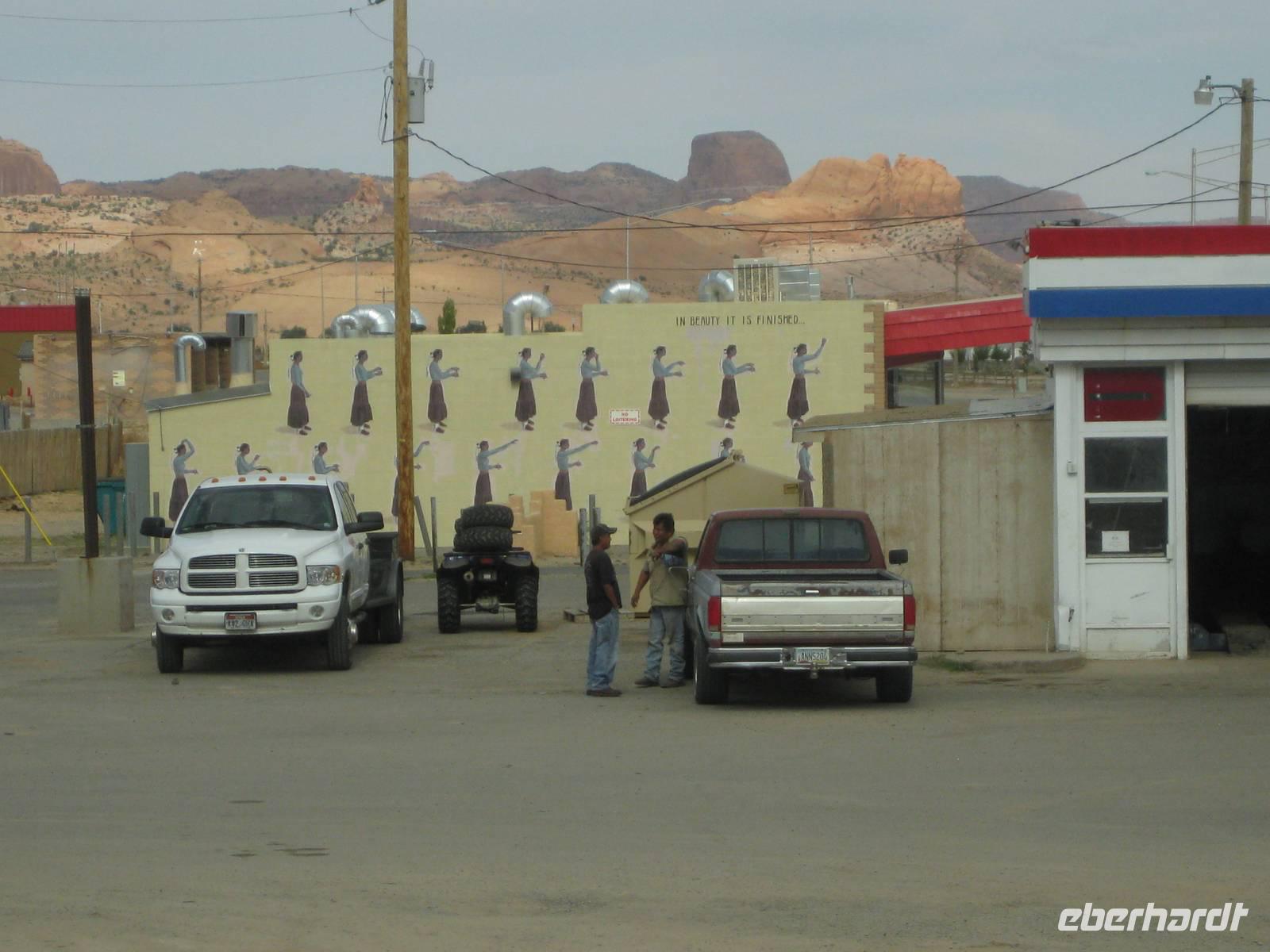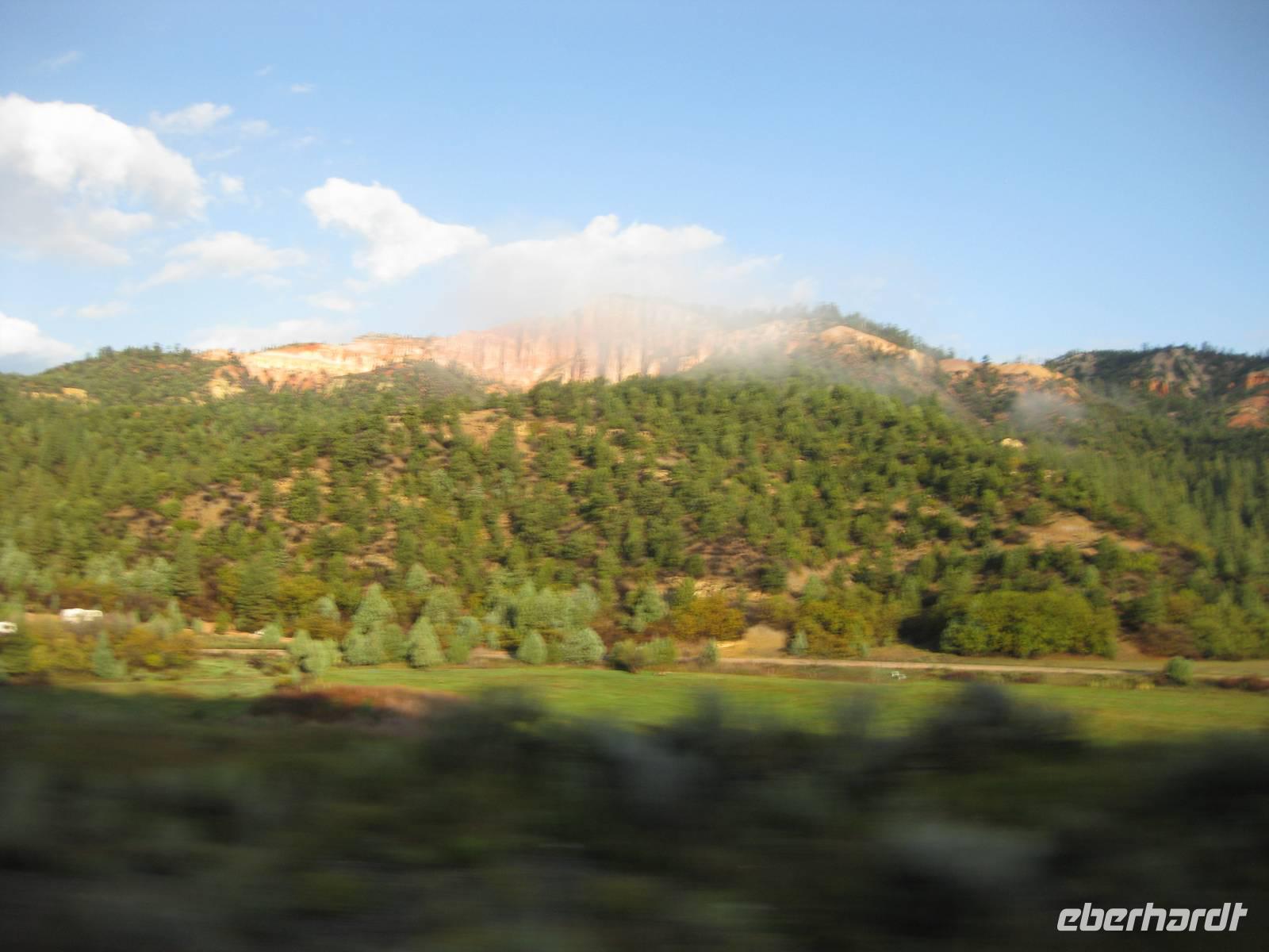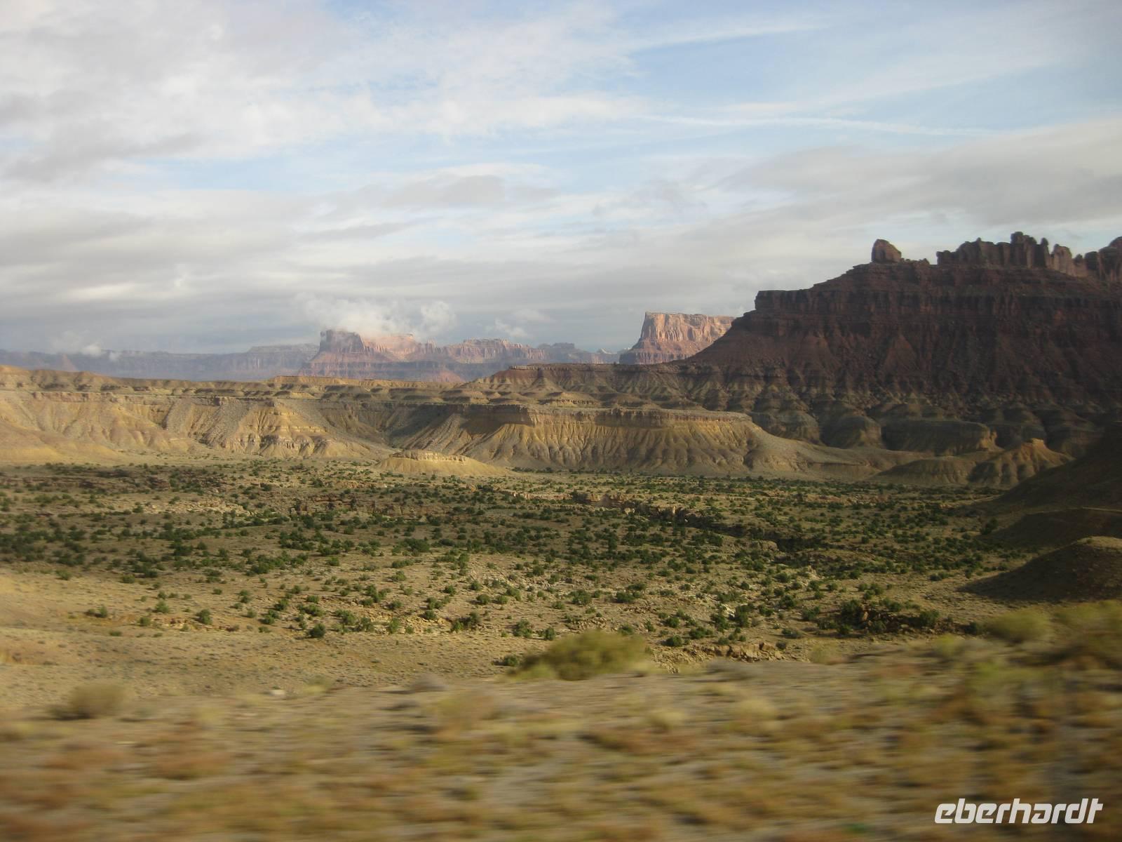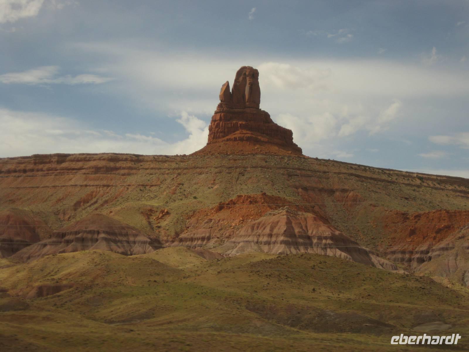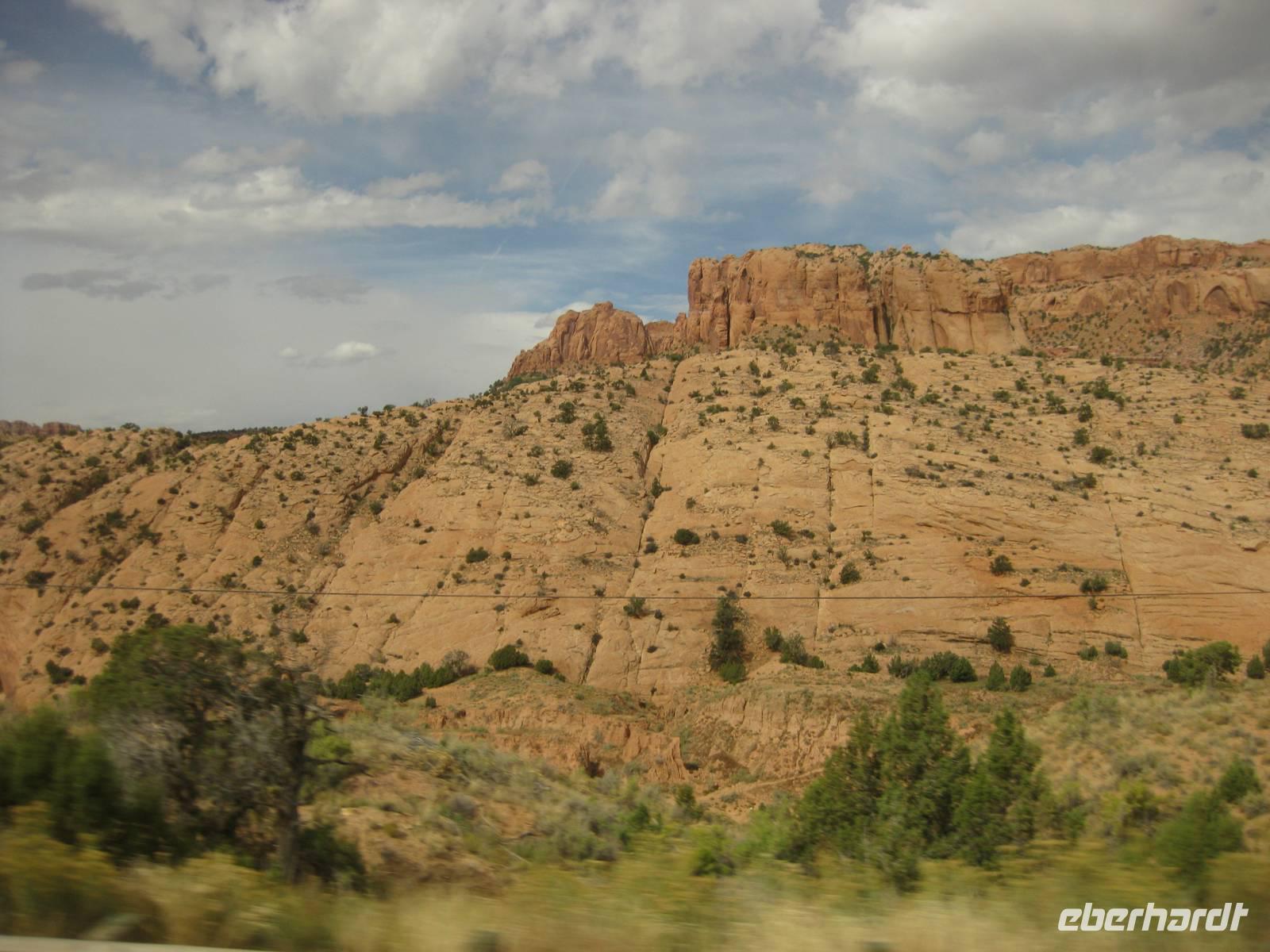 Auf der Fahrt sehen wir schon einzelne Felsgebilde aus rotem Navajo-Sandstein, ähnlich wie die im Monument Valley. Und dann sind wir auch schon im Bundesstaat Utah. Hier leben sehr viele Mormonen.