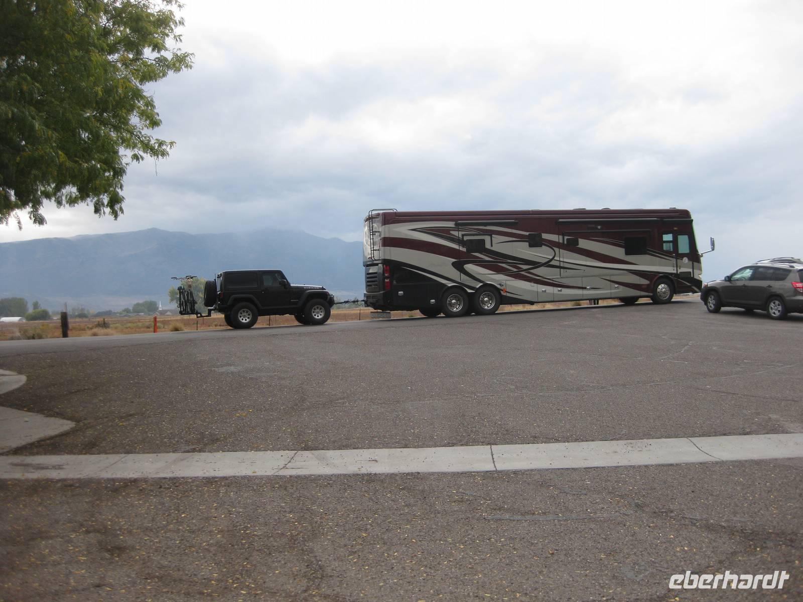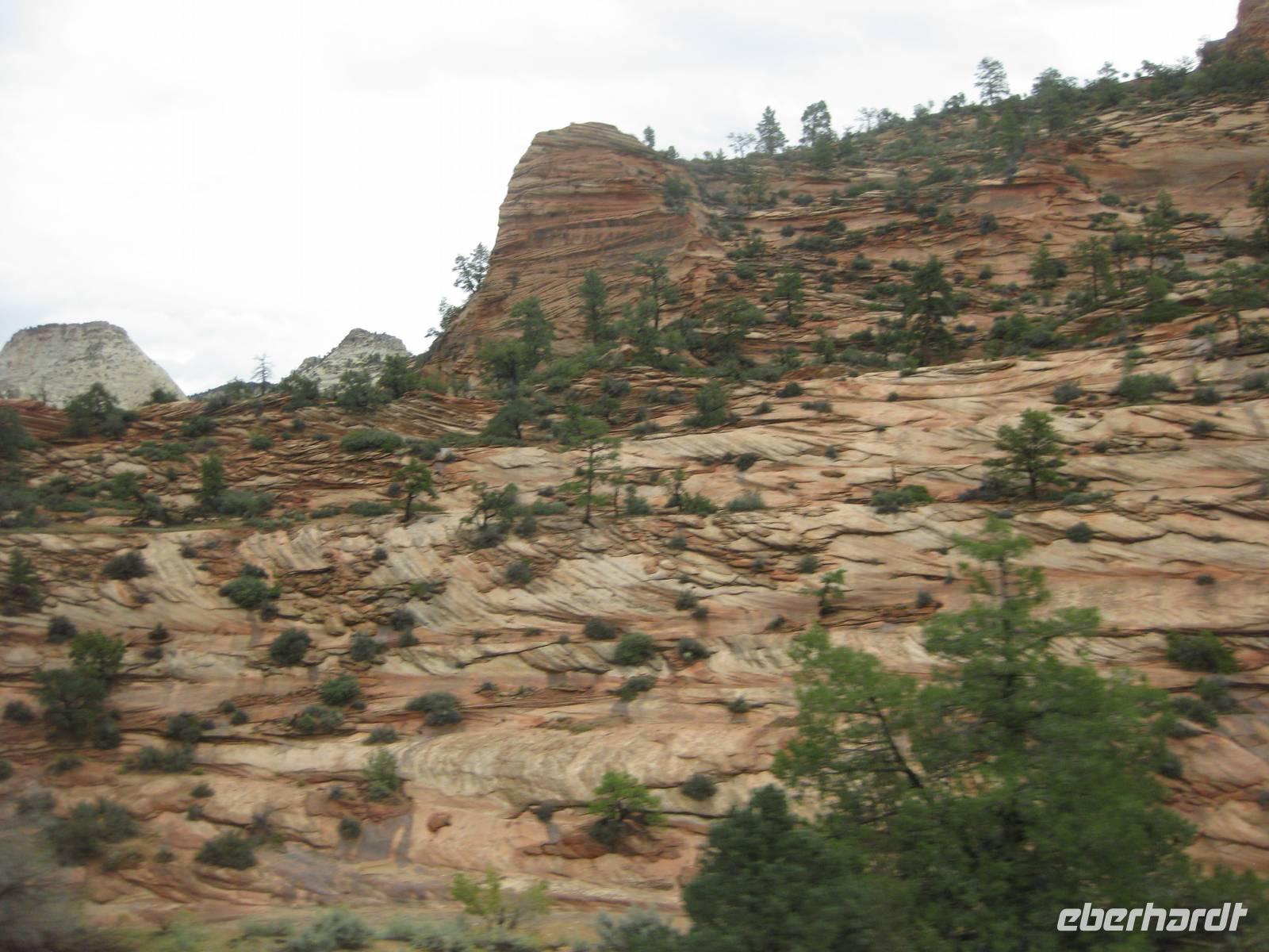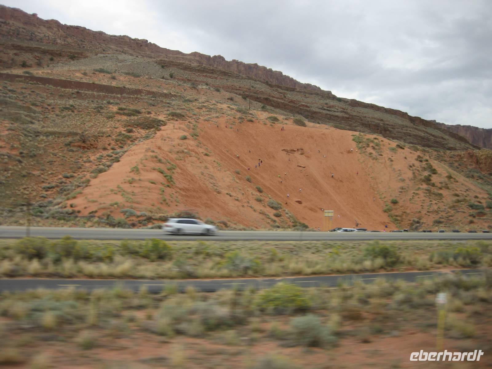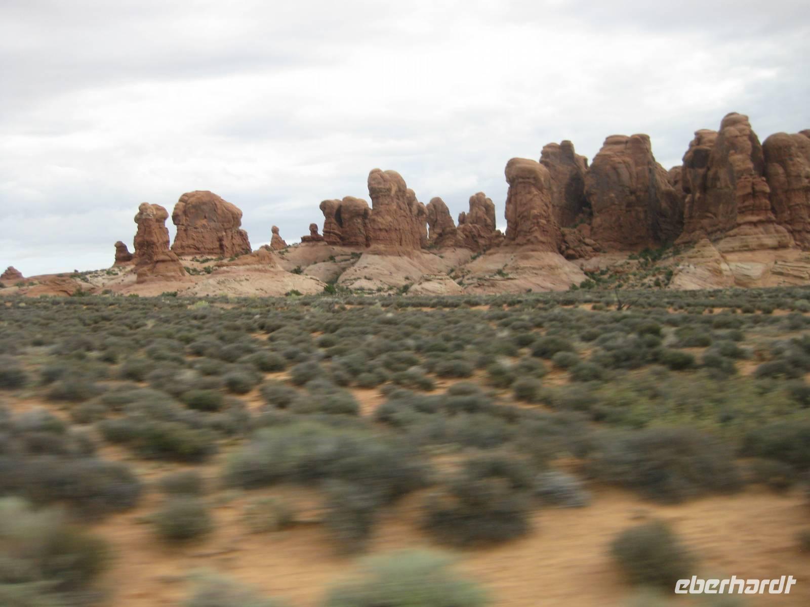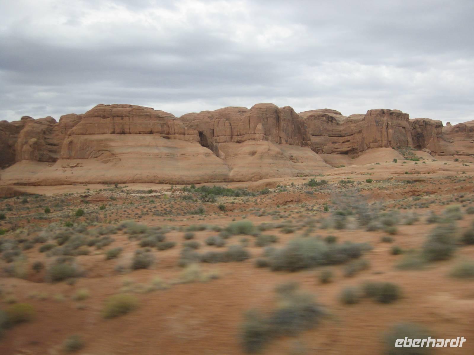 Auf der Fahrt sehen wir schon einzelne Felsgebilde aus rotem Navajo-Sandstein, ähnlich wie die im Monument Valley. Und dann sind wir auch schon im Bundesstaat Utah. Hier leben sehr viele Mormonen.