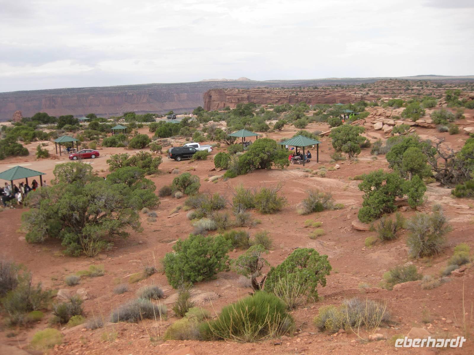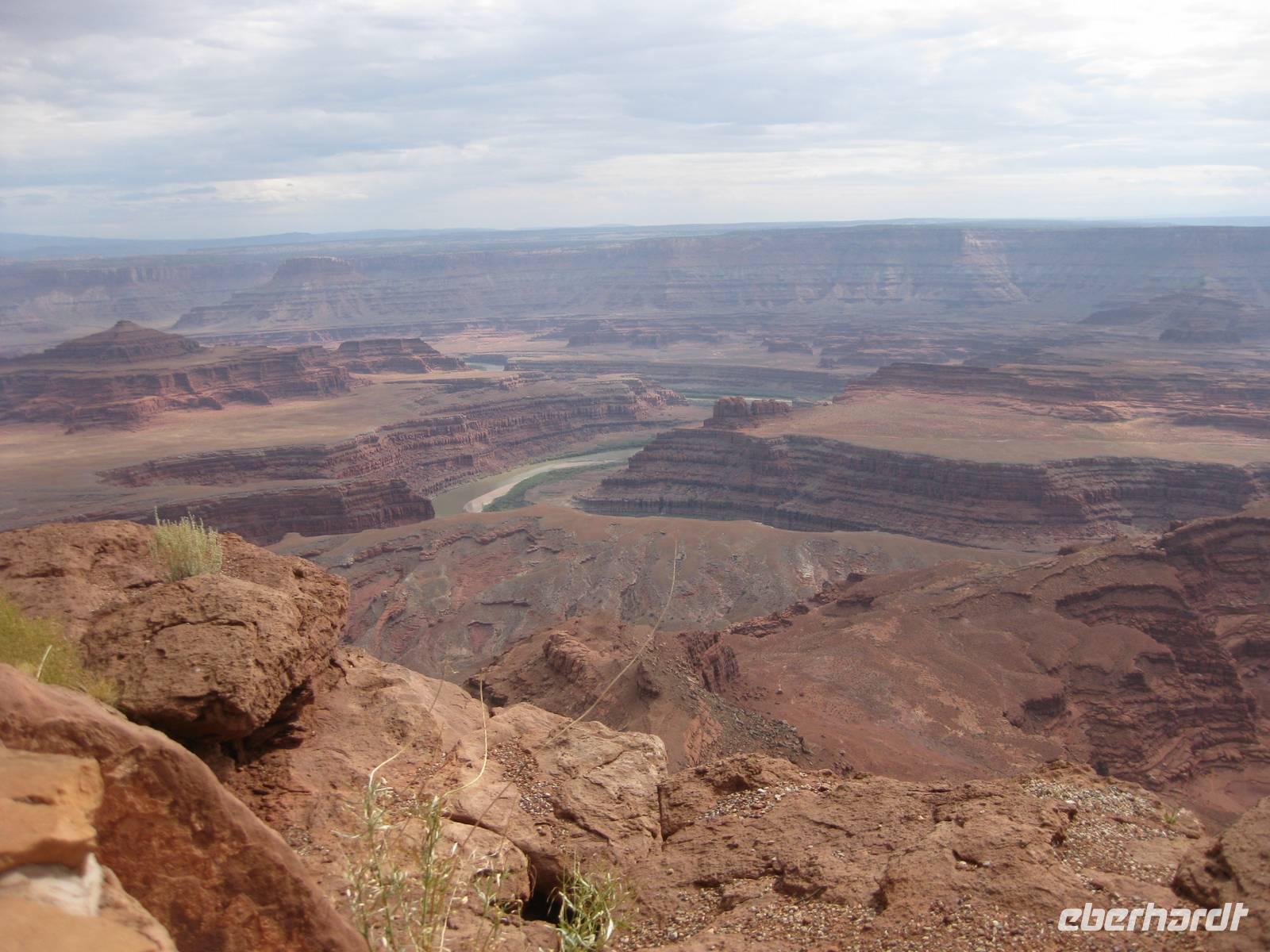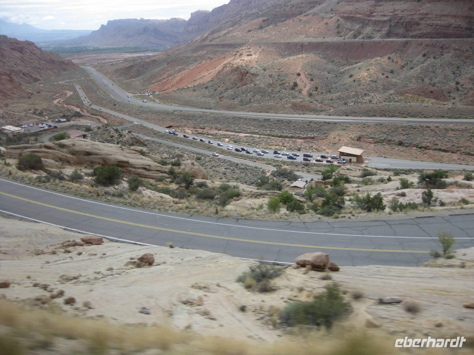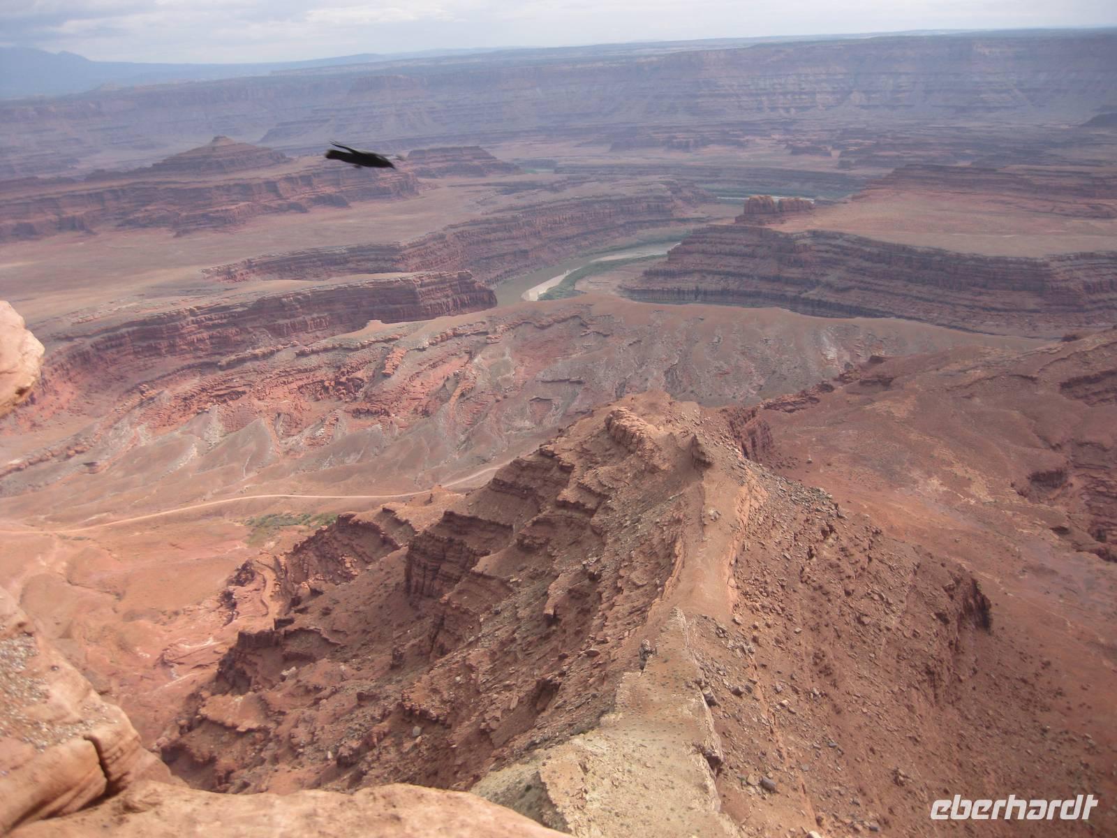 Und auf gehts zum Dead Horse Point State Park. Von hier aus haben wir einen fantastischen Blick auf den Colorado, der tief unter uns sein Flußbett in die Felsen gegraben hat. In Millionen von Jahren ist hier der Grand Canyon von Utah entstanden. Hier verweilen wir und machen unsere Mittagsrast. Am Nachmittag fahren wir nach Moab zurück. Es ist noch etwas Zeit für einen Bummel durch das Städtchen. Wir treffen uns dann alle wieder zum Abendessen im Grill-Restaurant.