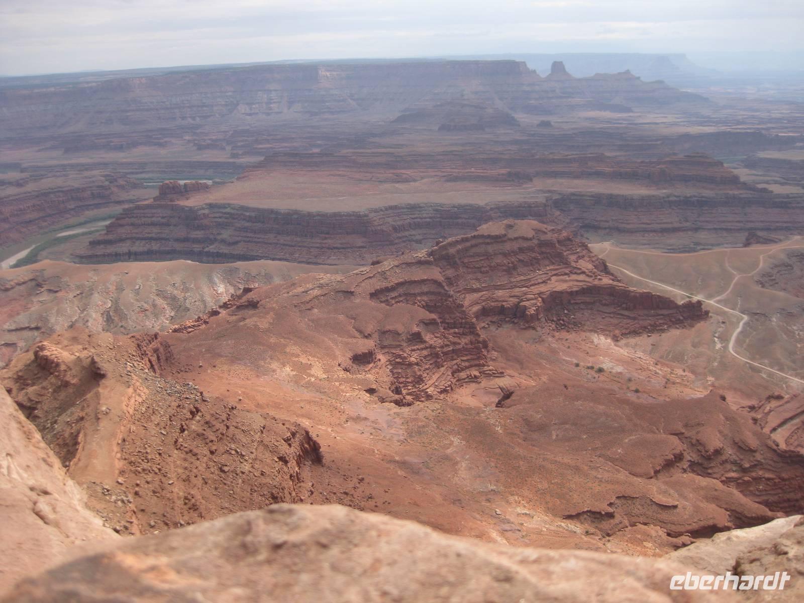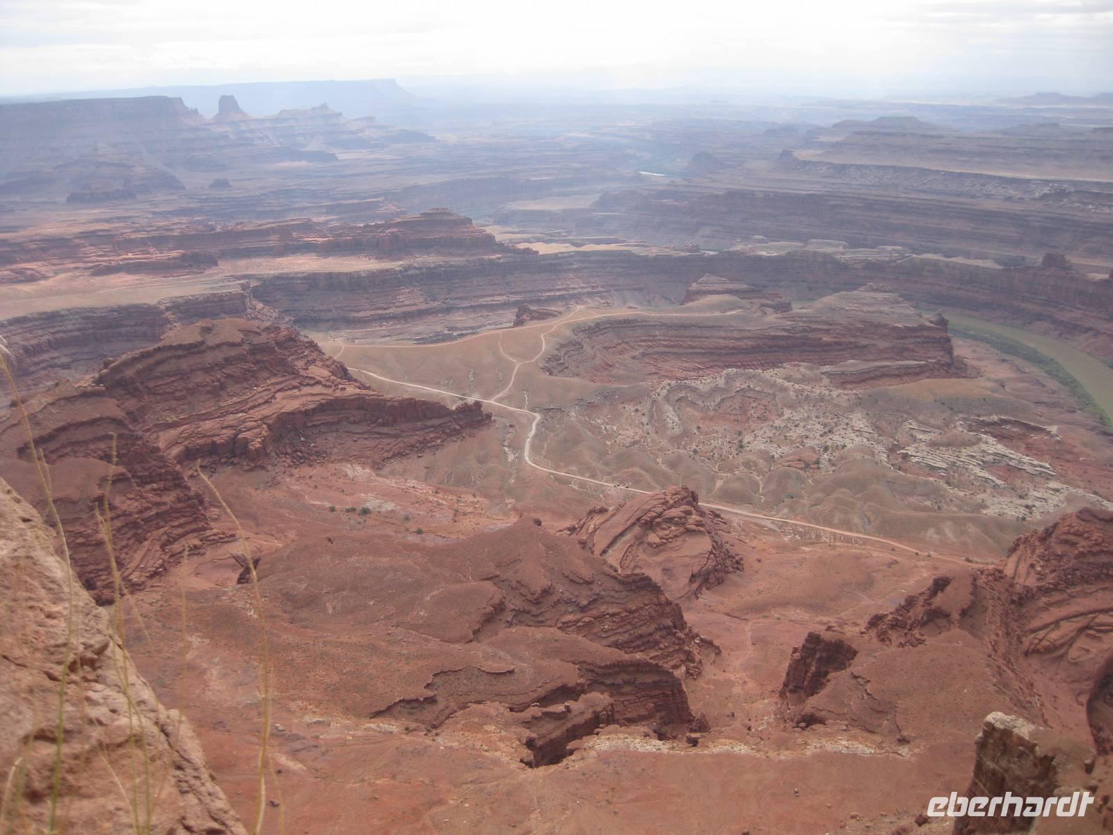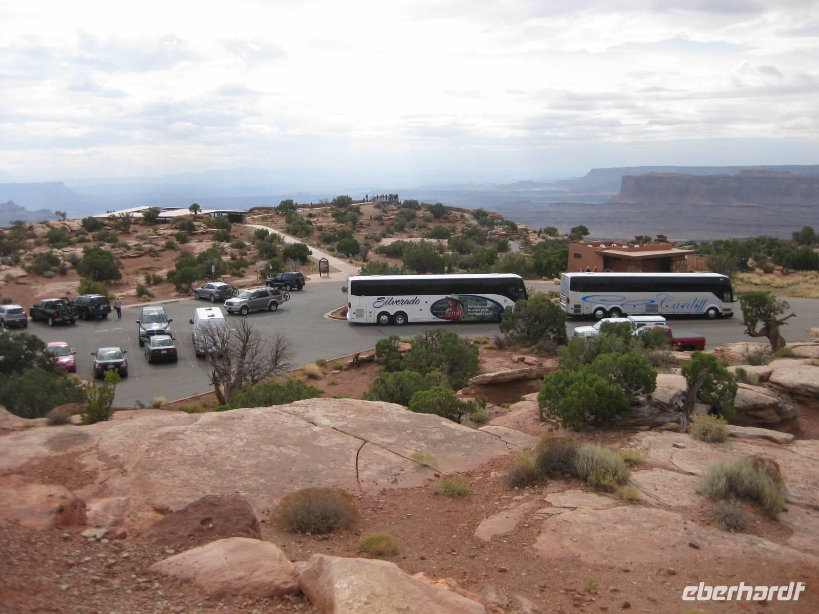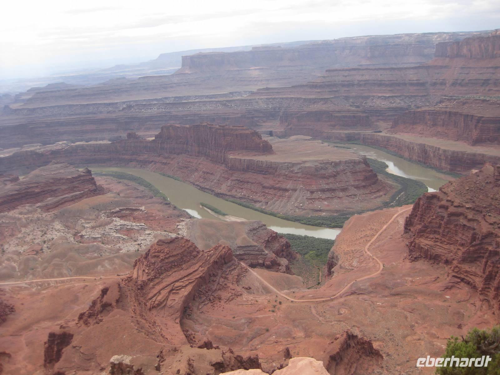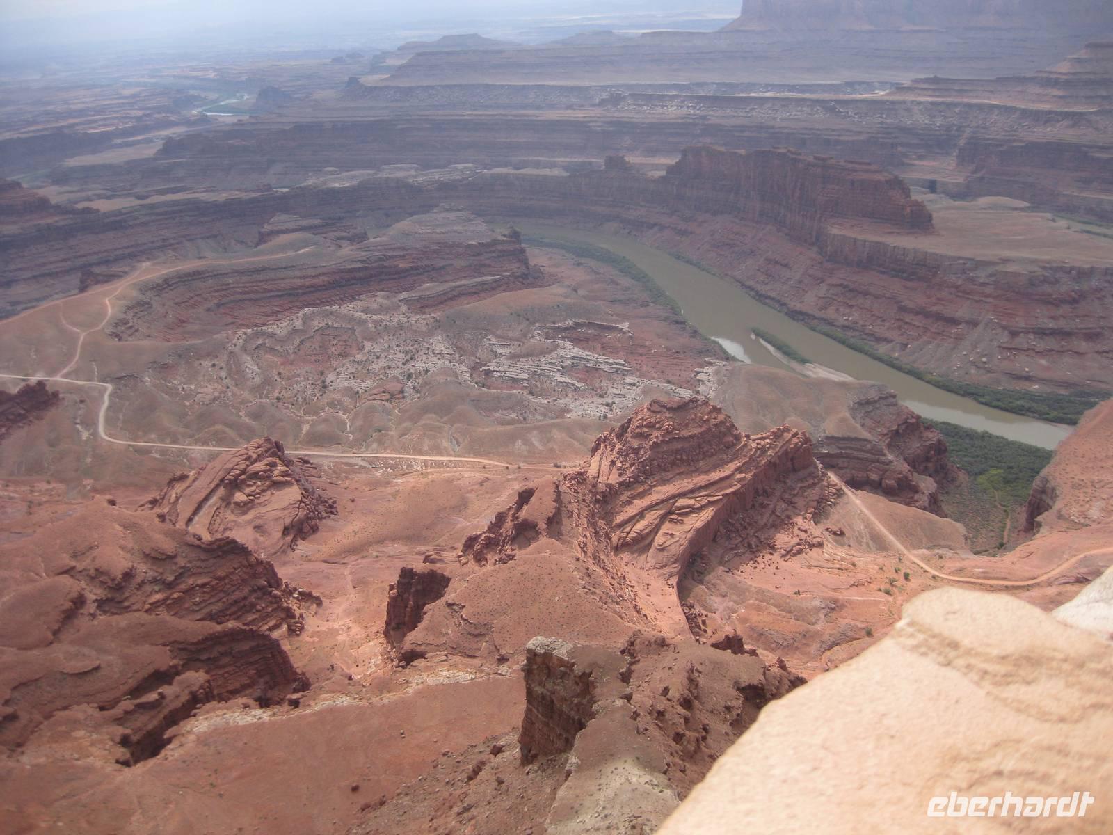 Und auf gehts zum Dead Horse Point State Park. Von hier aus haben wir einen fantastischen Blick auf den Colorado, der tief unter uns sein Flußbett in die Felsen gegraben hat. In Millionen von Jahren ist hier der Grand Canyon von Utah entstanden. Hier verweilen wir und machen unsere Mittagsrast. Am Nachmittag fahren wir nach Moab zurück. Es ist noch etwas Zeit für einen Bummel durch das Städtchen. Wir treffen uns dann alle wieder zum Abendessen im Grill-Restaurant.