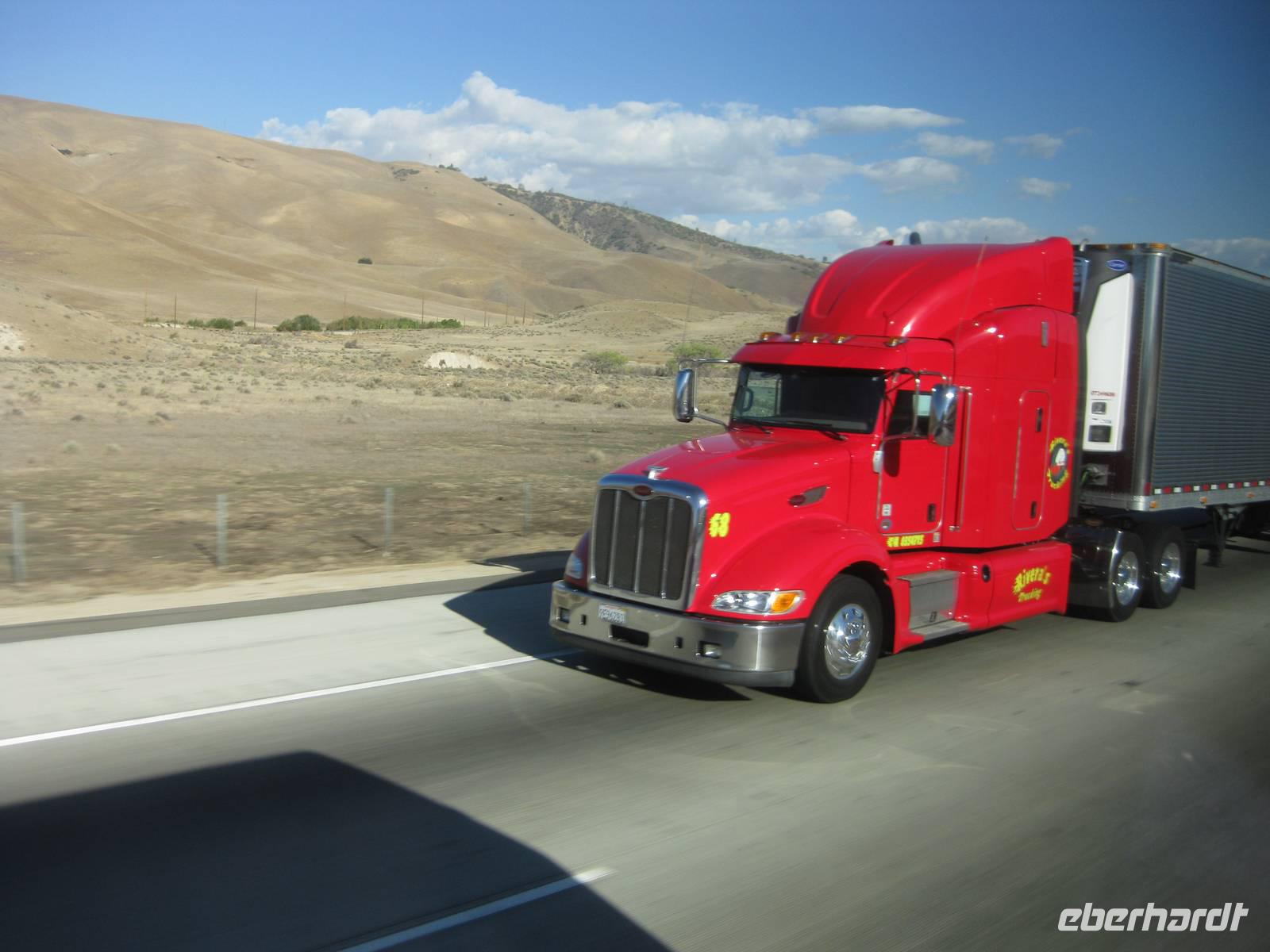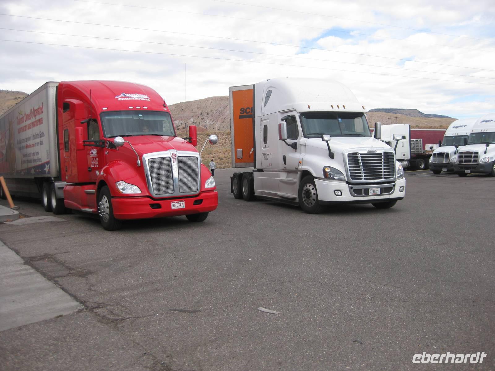 Am Morgen verlassen wir Moab und fahren weiter in Richtung Bryce Canyon. Unterwegs stoppen wir zweimal an "Truck Stopps". Diese Stopps sind besonders interessant, können wir doch die berühmten amerikanischen Trucks aus der Nähe betrachten. Und ein Fahrer hat richtig Spaß an unserer Neugierde und zeigt uns sein Reich im Fahrerhaus. Wir dürfen auch mal auf dem Fahrersitz Platz nehmen und uns wie ein echter Truckfahrer fühlen, toll! Wir fahren wieder durch Stein-und Felswüsten, durch den Dixie National Forest und an den Roten Felsen kurz vor dem Bryce Canyon vorbei.