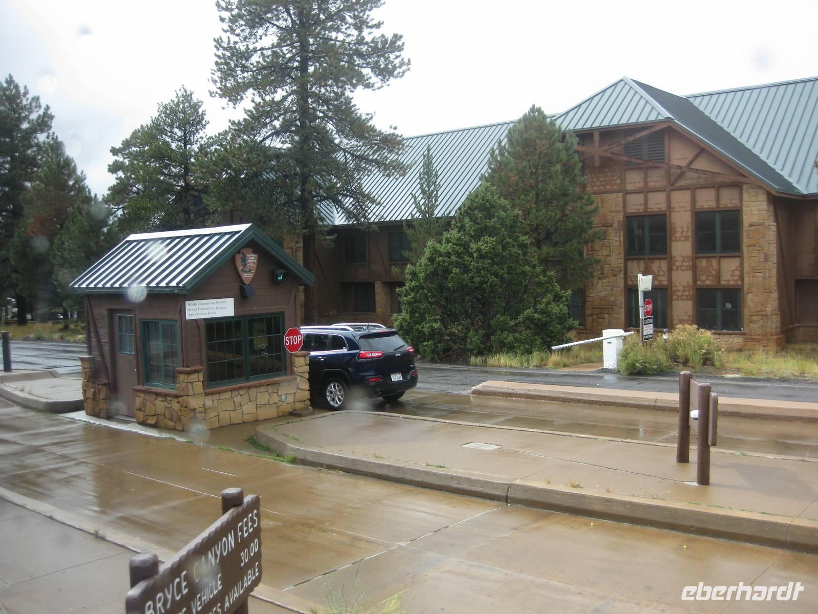 Am zeitigen Nachmittag erreichen wir den Nationalpark Bryce Canyon. Wir sind fast in 2500 Metern Höhe und es hat sich eingetrübt und regnet leider. Auch ist es ganz schön frisch. Unsere Hotelzimmer sind noch nicht fertig und so entern wir erst einmal den riesigen Generalstore, der mit zum Hotelkomplex Best Western Ruby's Inn gehört und schauen uns um. Es gibt alles, was das Herz der Touristen begehrt, auch richtig gute Souvenirs.