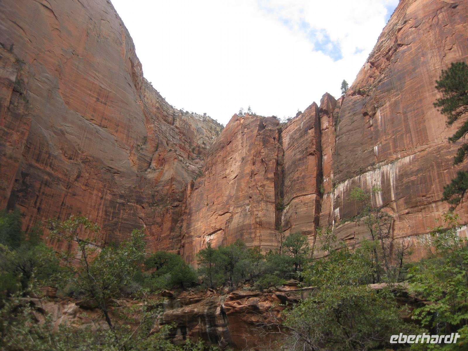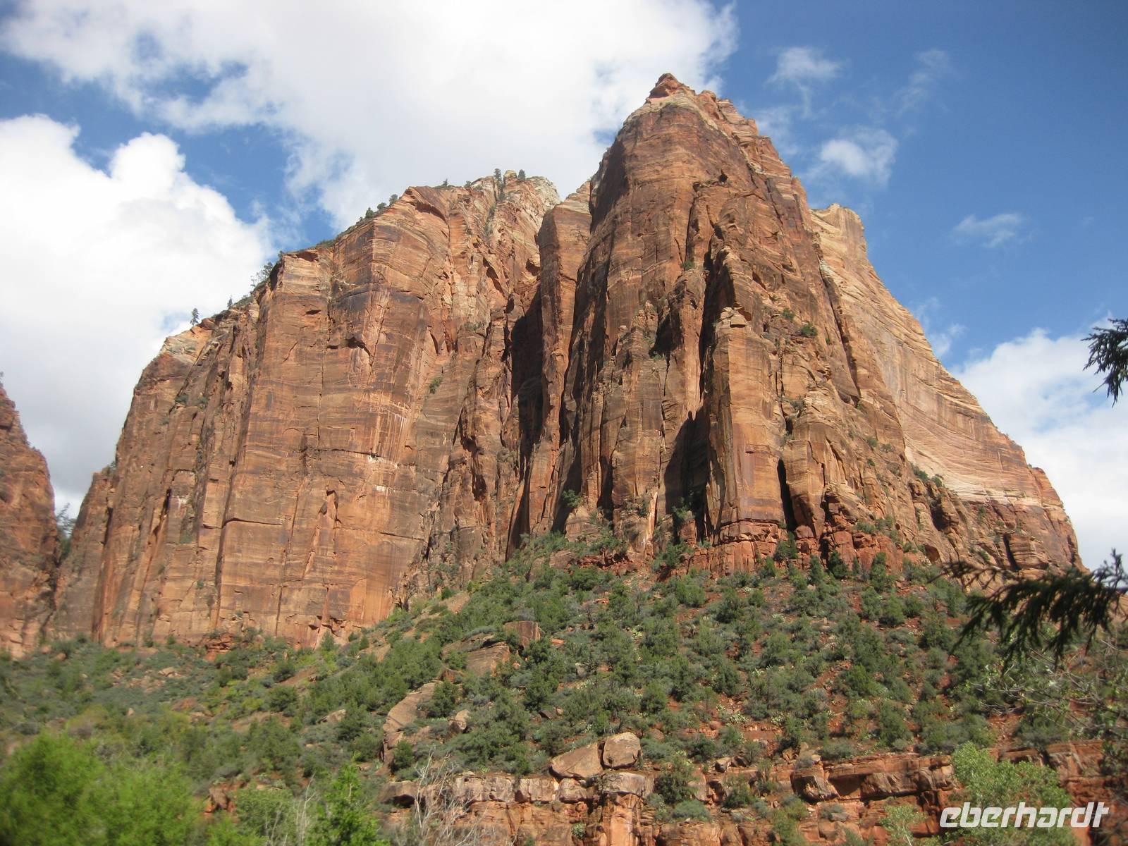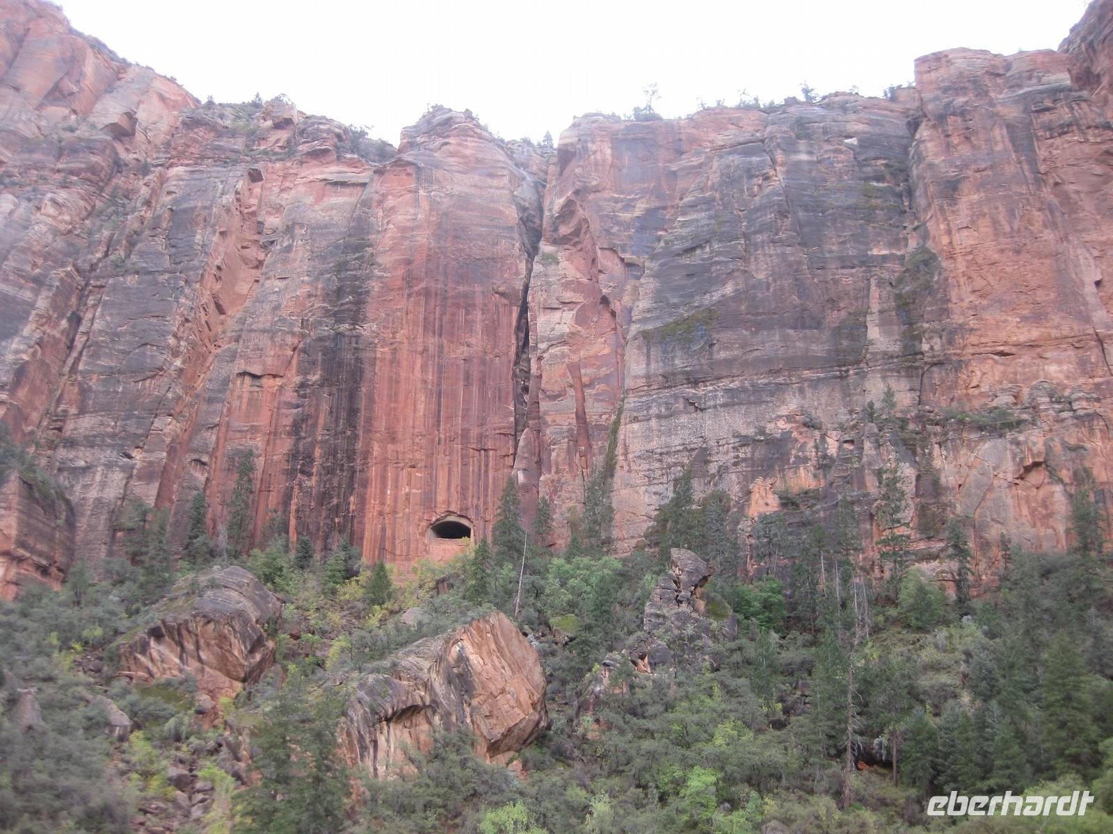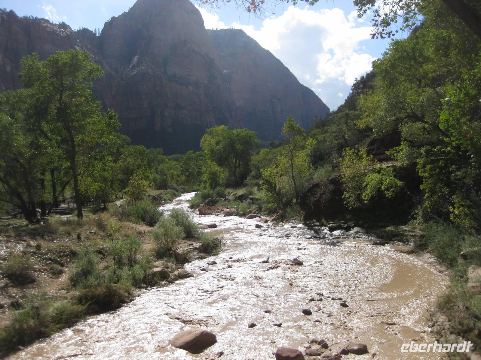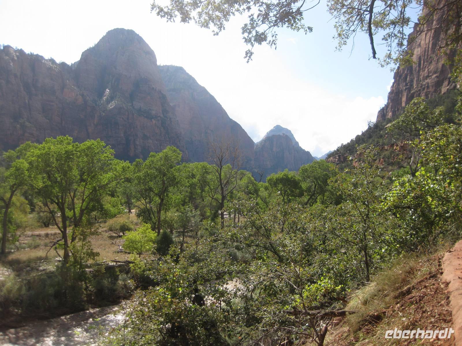 Am Morgen ist dann alles wieder vorbei, so als wenn nichts gewesen wäre. Wir verlassen Bryce Canyon, fahren wieder an den Roten Felsen vorbei und dann durch Ranchland. Durch den Virgin River ist hier viel Grünes, ideal für die Viehzucht. Kurz vor dem Zion Nationalpark kommen wir an einer Büffel-Ranch vorbei.