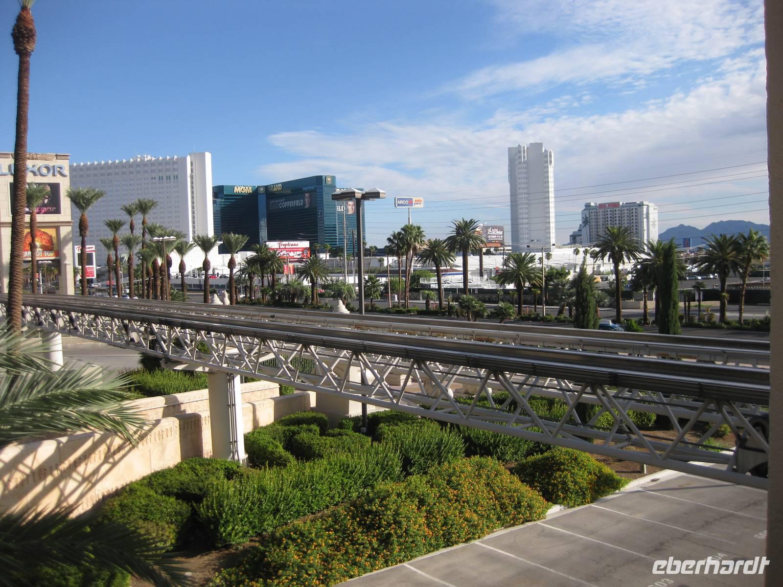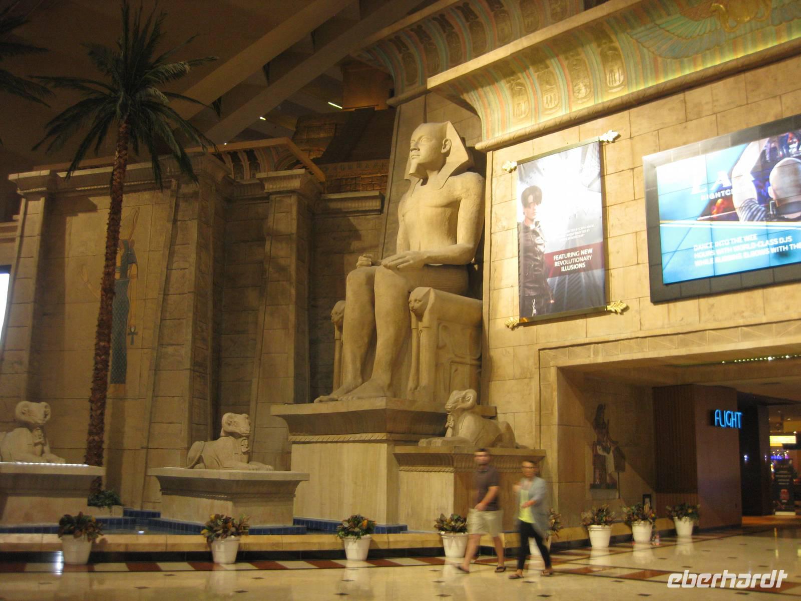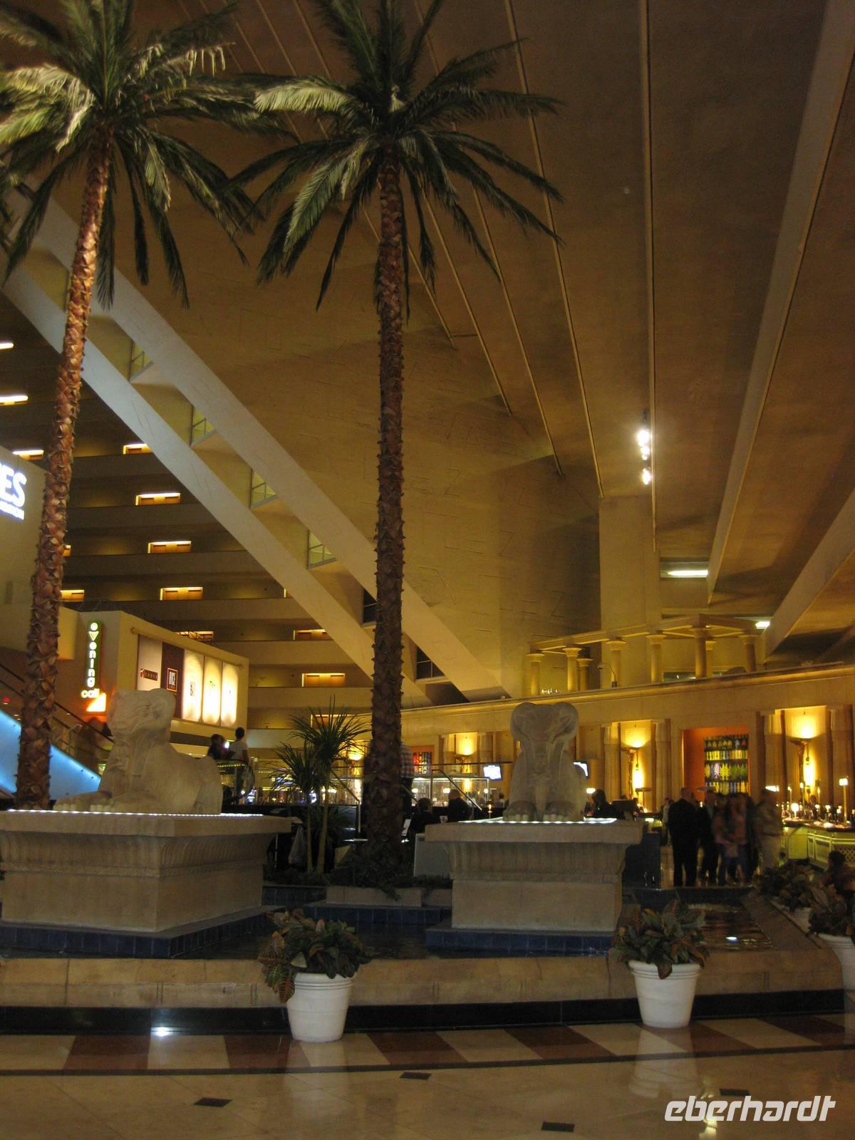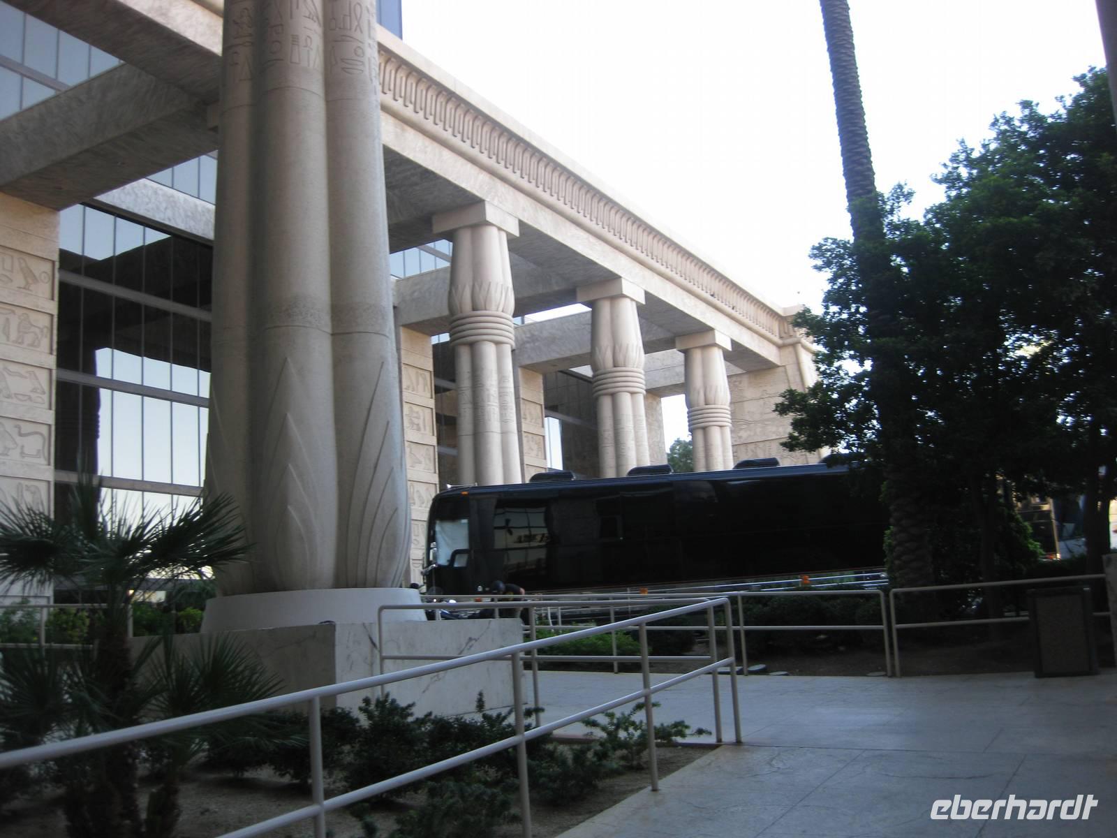 Am Nachmittag erreichen wir Las Vegas. Vom Highway aus bekommt man schon einen ersten Eindruck. Wir wohnen im Hotel Luxor, fast am Anfang oder Ende des "Strips", je nachdem. Es ist eine riesiger Hotelkomplex. Und natürlich mit einem riesigen Casino. Heute haben wir unser Abendessen etwas zeitiger im Restaurant des Hotels, denn anschließend wollen wir Las Vegas auf unserer Lichterfahrt entdecken. Diese beginnt mit einer kleinen Führung durch das Hotel und das Casino. Janny erklärt uns ein paar einfache Spiele - wir alle sind nur Besucher.