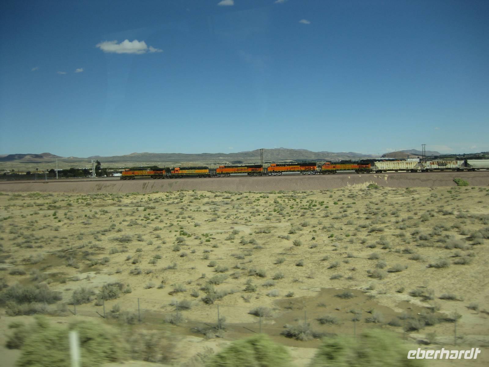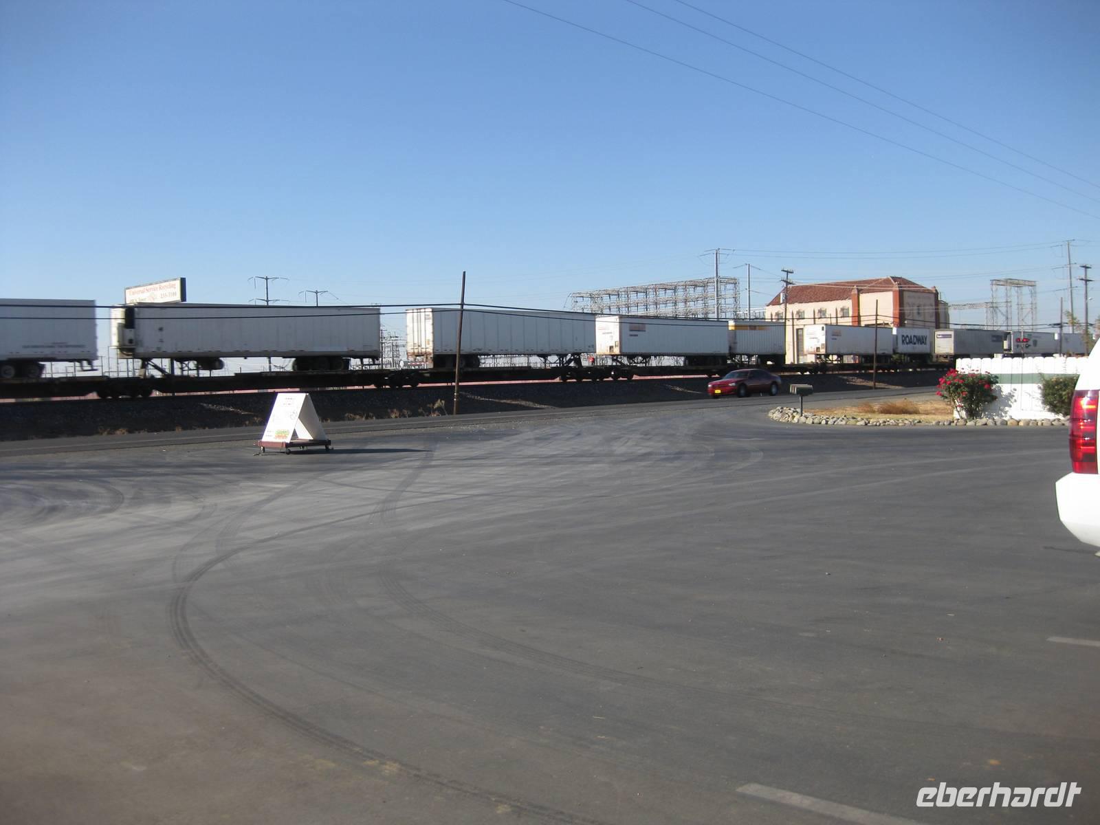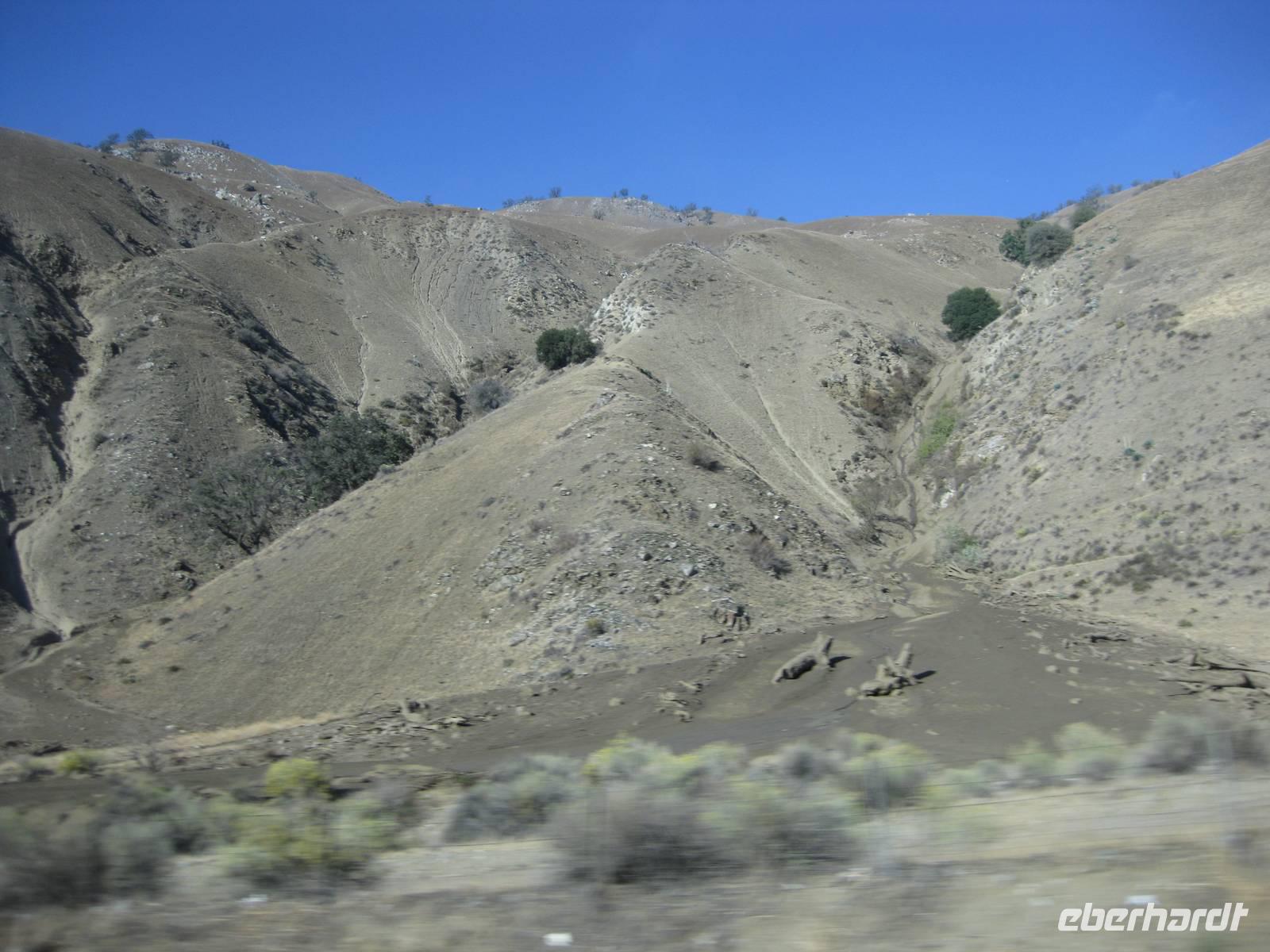 Dann geht es weiter durch die Kalifornische Wüste Mojava in Richtung Bakersfield. Wir kommen an der Edmonds Air Force Base vorbei. Hier befinden sich die Hangars für die Boing 747 und die Space Shuttles der NASA. Auf der anderen Seite des Highways befindet sich der Gebrauchtflugzeugmarkt Aerospace Valley, wo Fluggesellschaften aus aller Welt ihre gebrauchten und nicht mehr benötigten Flugzeuge zum Verkauf anbieten. Warum gerade hier? Weil hier Wüste ist - trockene und heiße Luft und die Flugzeuge rosten nicht. An der Strecke hier gibt es auch große Windparks und Solarfelder.