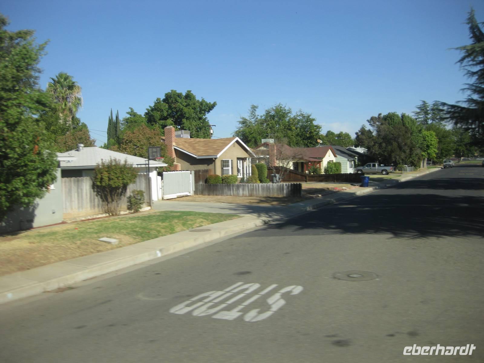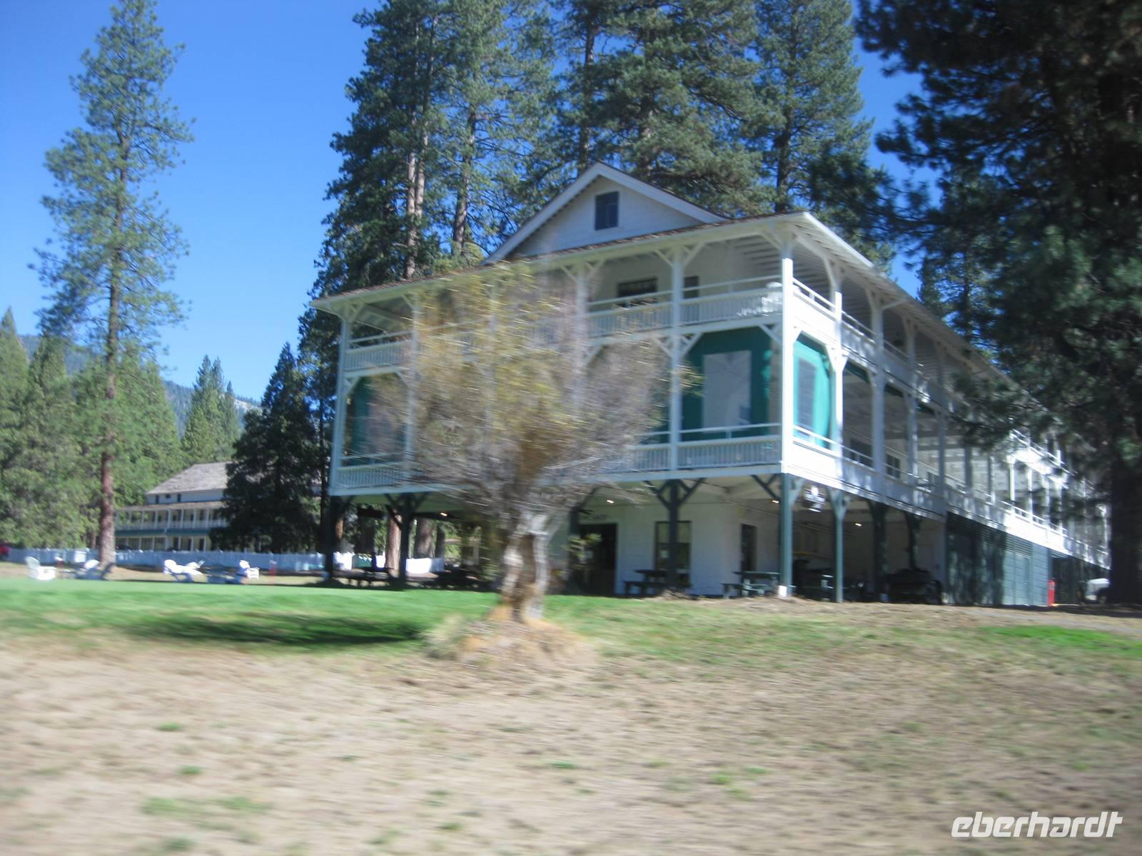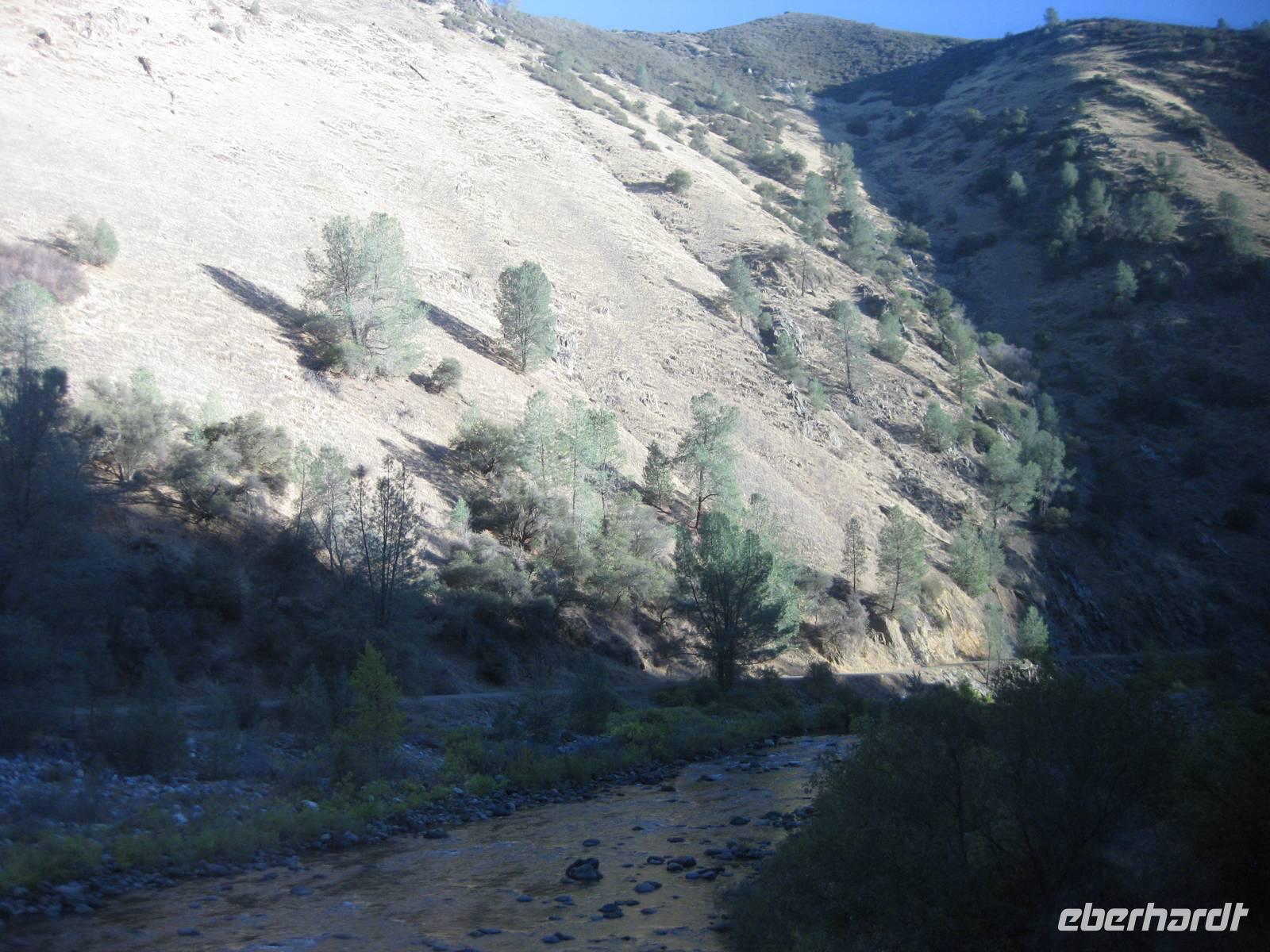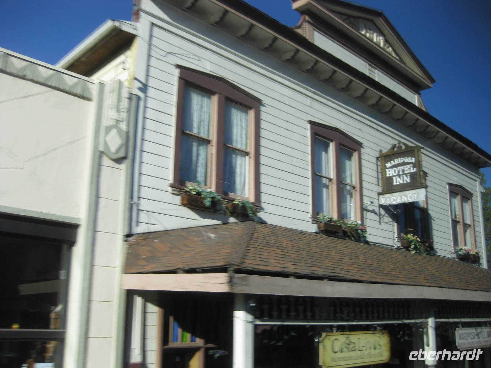 Heute fahren wir zum Yosemite-Nationalpark. Von Bakersfield aus fahren wir auf dem Interstate Highway Nr. 99 in Richtung Norden. Wir fahren durch endlose Obstplantagen, die künstlich bewässert werden. Hier gedeihen Wein, Oliven, Feigen und Nüsse. Sogar Rosinenplantagen gibt es. Kalifornien versorgt mit dem Obst die geamten USA. Nach Fresno endet das fruchtbare Central Valley. Wir biegen vom Highway Nr. 99 ab und fahren in Richtung Oakhurst. Die Fahrt geht durch dürres, felsiges Ranchland und dann durch kleine Goldgräberorte. Bald erreichen wir Oakhurst, wo wir unser heutiges Mittagspicknick im Supermarkt einkaufen.