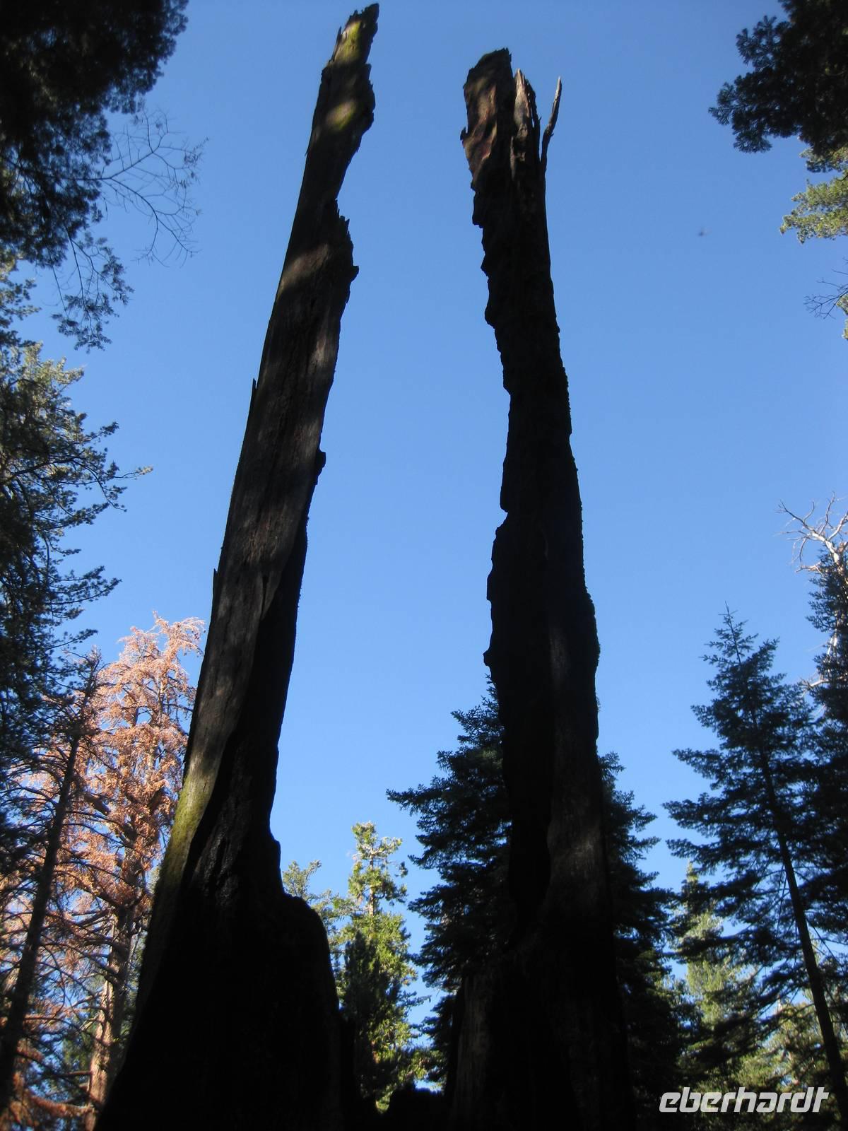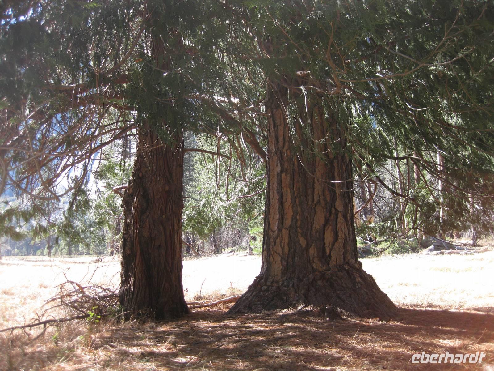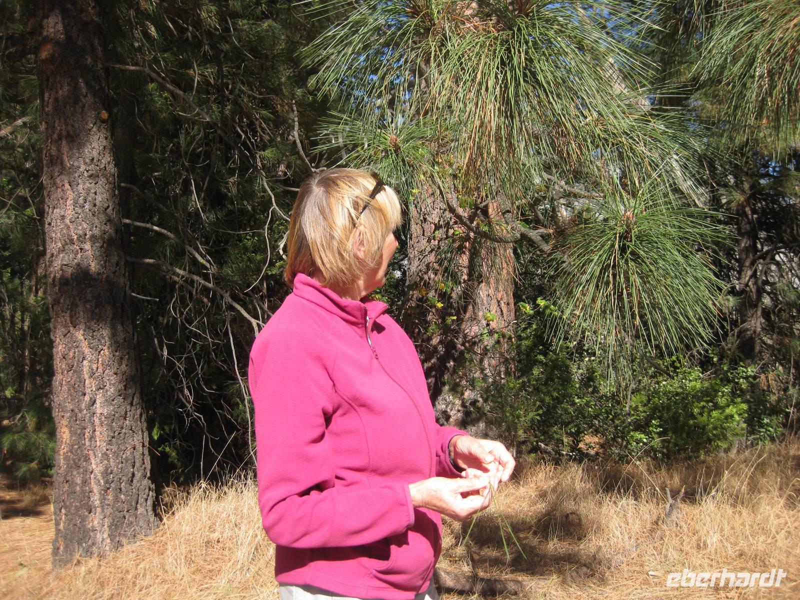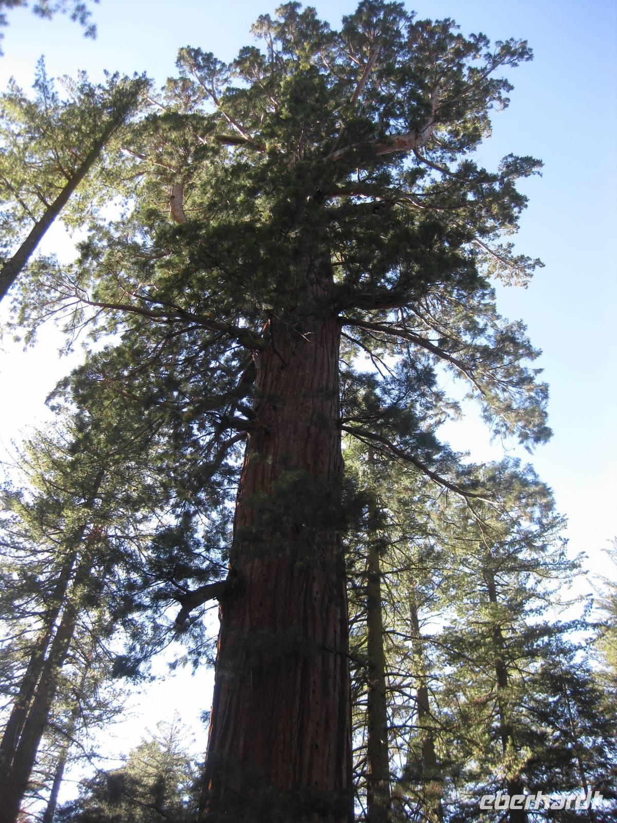 Dann geht es hinauf zum Yosemite Nationalpark. Wir fahren durch Wälder bis zu einem ersten tollen Aussichtspunkt. Es bietet sich ein fantastischer Blick auf die Berge, fast wie in den Alpen. Dann geht es hinunter in's Merced Tal. Die Granitwände der Berge stürzen senkrecht in das Tal hinab. Am Merced River suchen wir uns einen Platz unter Mammutbäumen und Kiefern für unser Picknick. Am Nachmittag fahren wir hinauf zum Tuolumne Grove Trail, wo es viele Mammutbäume (giant sequoia) gibt. Wir machen eine kleine Wanderung und bestaunen die Bäume.