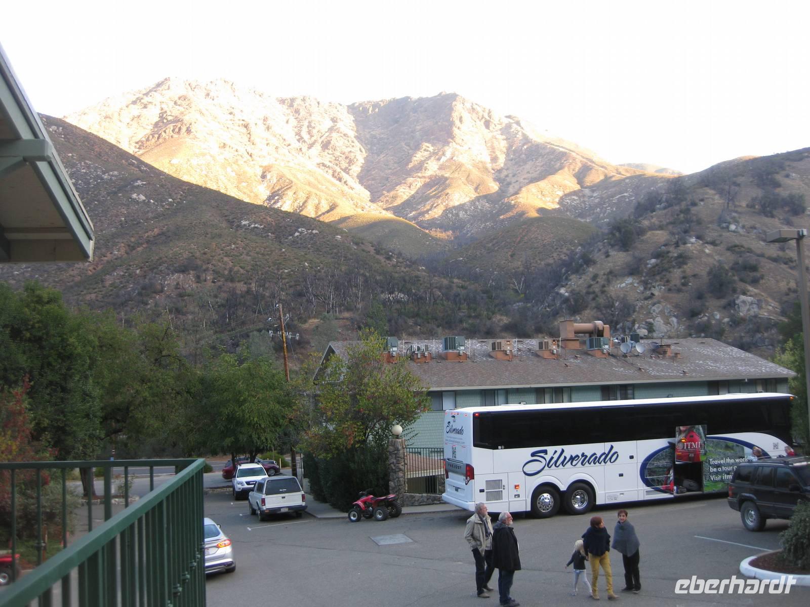 Dann fahren wir wieder hinab in's Tal. Unterwegs bieten sich spektakuläre Blicke über den Yosemite Nationalpark. Wir verlassen den Park und nicht weit entfernt befindet sich unser Hotel. Vom Picknick ist noch so viel übrig, so dass es noch für das Abendessen für alle reicht. Wir treffen uns zum großen Resteressen auf der Terrasse und lassen den Tag in gemütlicher Runde ausklingen.