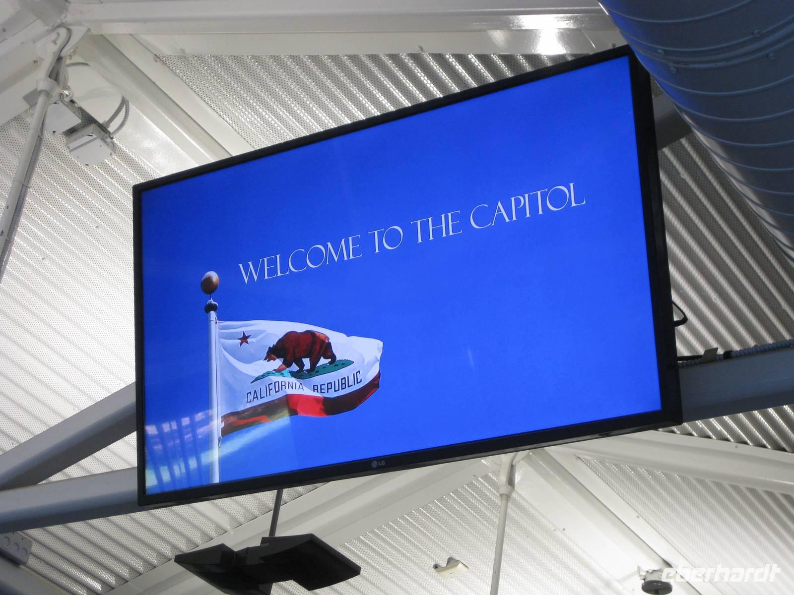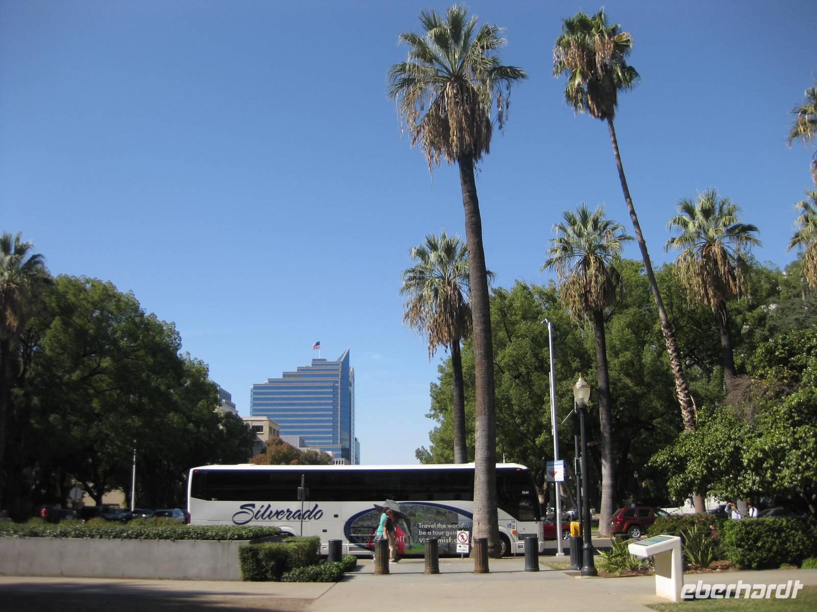 Dann erreichen wir Sacramento, die Hauptstadt Kaliforniens. Im Capitol statten wir dem Gouverneur einen Besuch ab. Leider können wir ihn nicht persönlich sprechen, unser Termin war zu kurzfristig. Aber sein Haus, das Capitol können wir besichtigen. Wir fahren durch die Stadt und in Old Sacramento haben wir etwas Zeit uns umzusehen. Es ist ein liebevoll historisch gestalteter Stadtteil. Ein alter Bahnhof der Sacramento Southern Railroad und das Eisenbahnmuseum gehören mit dazu.