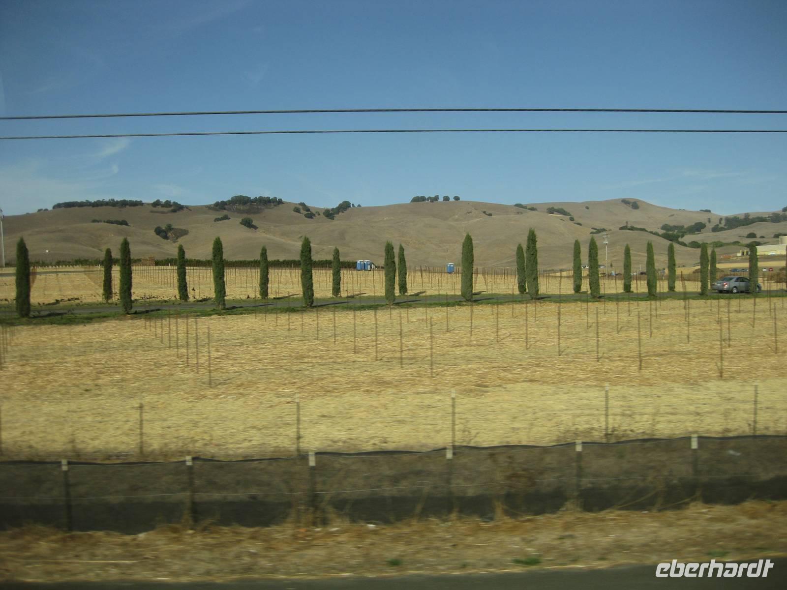Dann geht es nach Napa und in die Sonoma Weinregion. Hier herscht Mittelmeerklima. Die Zypressen gedeihen prächtig und auch der Wein. Wir besuchen ein Weingut. Der Chef des Hauses besichtigt mit uns die Weinplantagen, erklärt uns den Weinanbau und wir verkosten vier Sorten kalifornischen Wein. Es ist ein ganz entspannter Nachmittag.