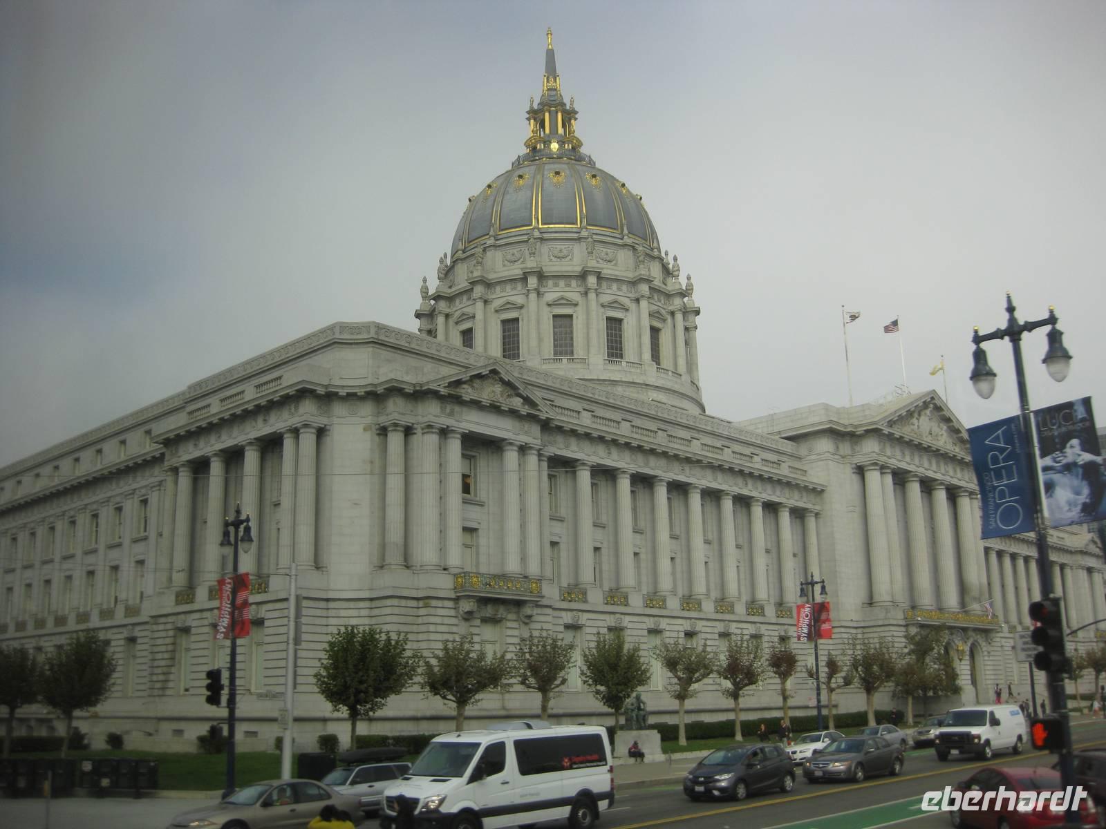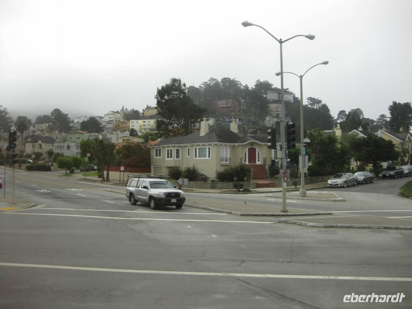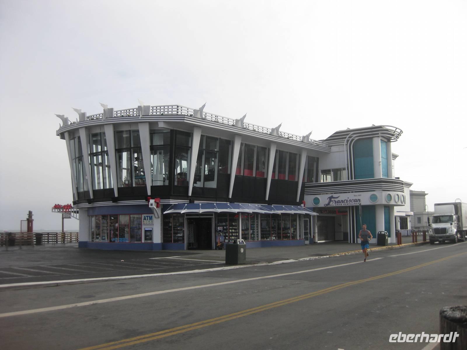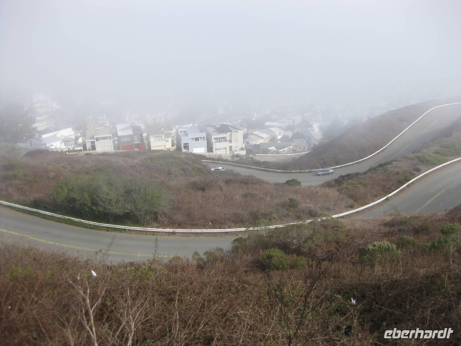 Wenn wir am Fährterminal ankommen ist Derrick mit dem Bus auch schon da. Wir beginnen unsere Stadtrundfahrt am Fährhafen mit den unzähligen Piers. Die Kreuzfahrer legen auch hier an. Leider ist keiner da. Während unserer Stadtrundfahrt sehen wir Chinatown, Union Square, das Civic Center mit City Hall (Rathaus), die für San Francisco typischen Victorianischen Holzhäuser "Painted Ladies", das Hippie-Viertel, .... Von den Twin Peaks aus können wir leider nicht auf die Stadt blicken. Sie hüllt sich noch in Wolken ein. Dann fahren wir am Golden Gate Park entlang und kommen schließlich zur Golden Gate Bridge. Hier muss natürlich erst einmal ein Foto sein. Dann laufen wir ganz gemütlich über die Golden Gate Bridge. Ein Traum geht für viele in Erfüllung! Und zurück fahren wir mit dem Bus über die Brücke. Wir fahren bis in die Stadt zum Union Square. Jetzt haben alle Zeit für die individuelle Erkundung der Stadt oder einen Shoppingbummel oder ....