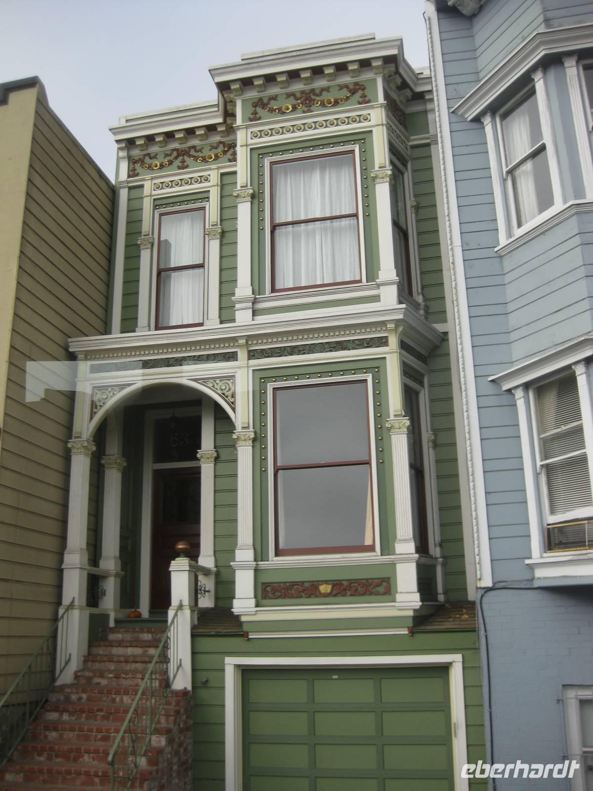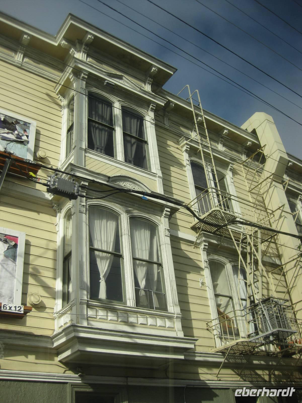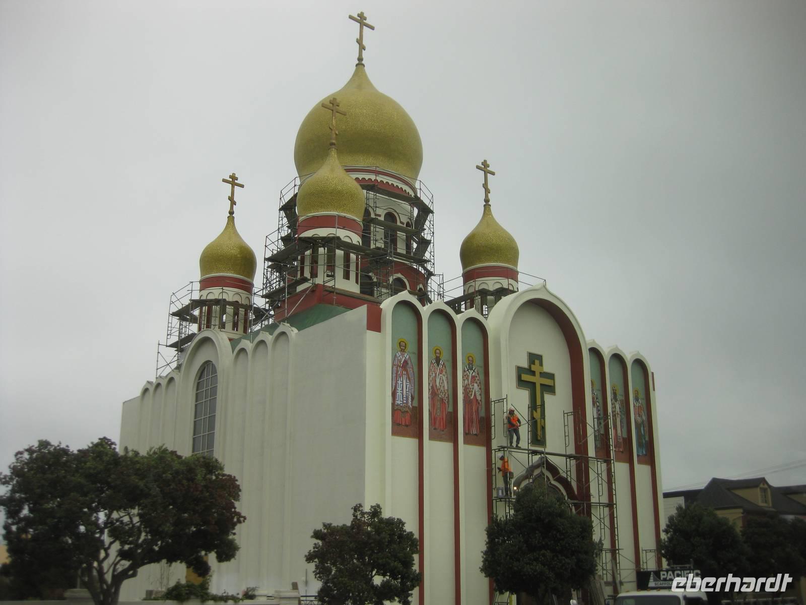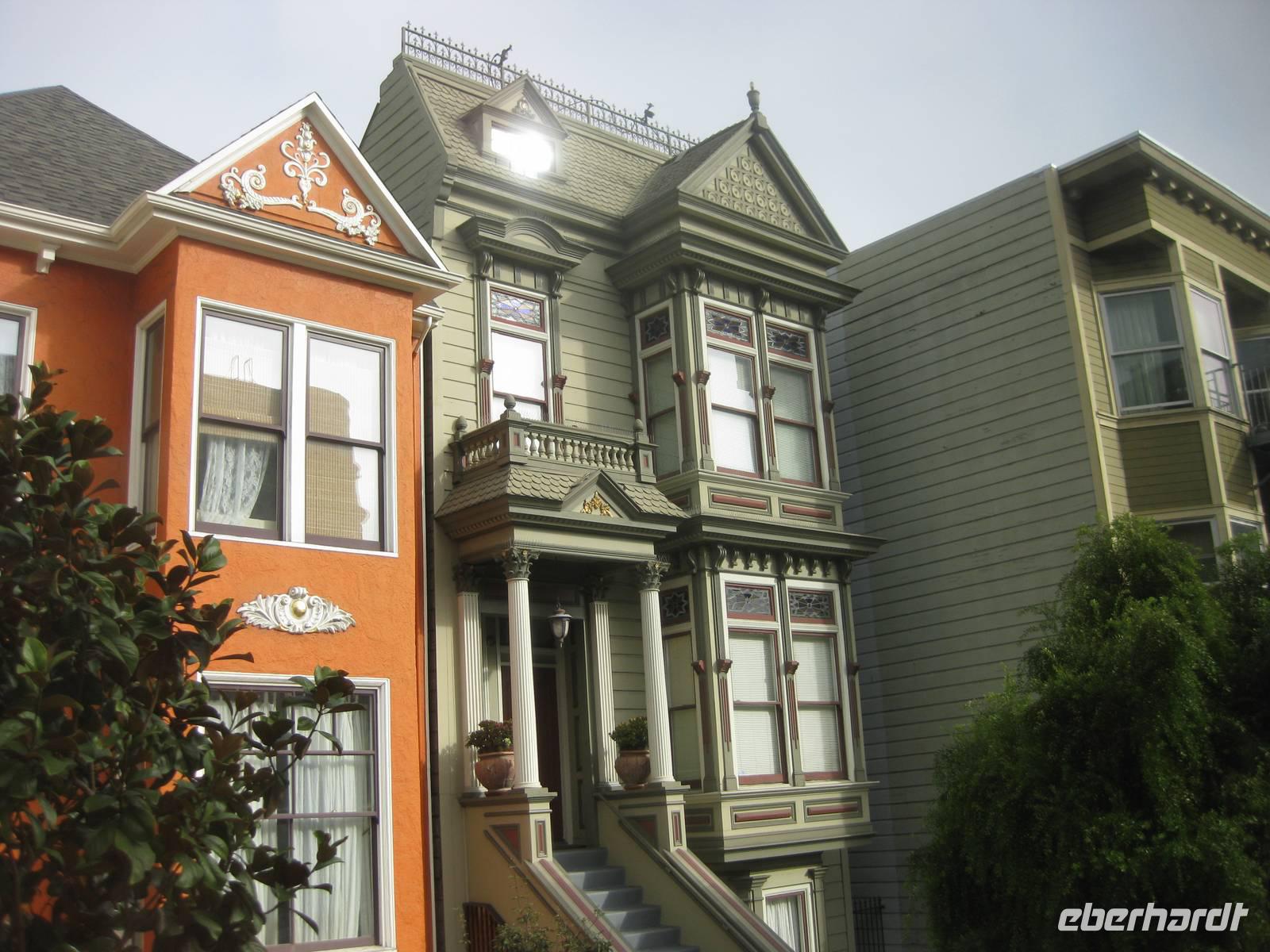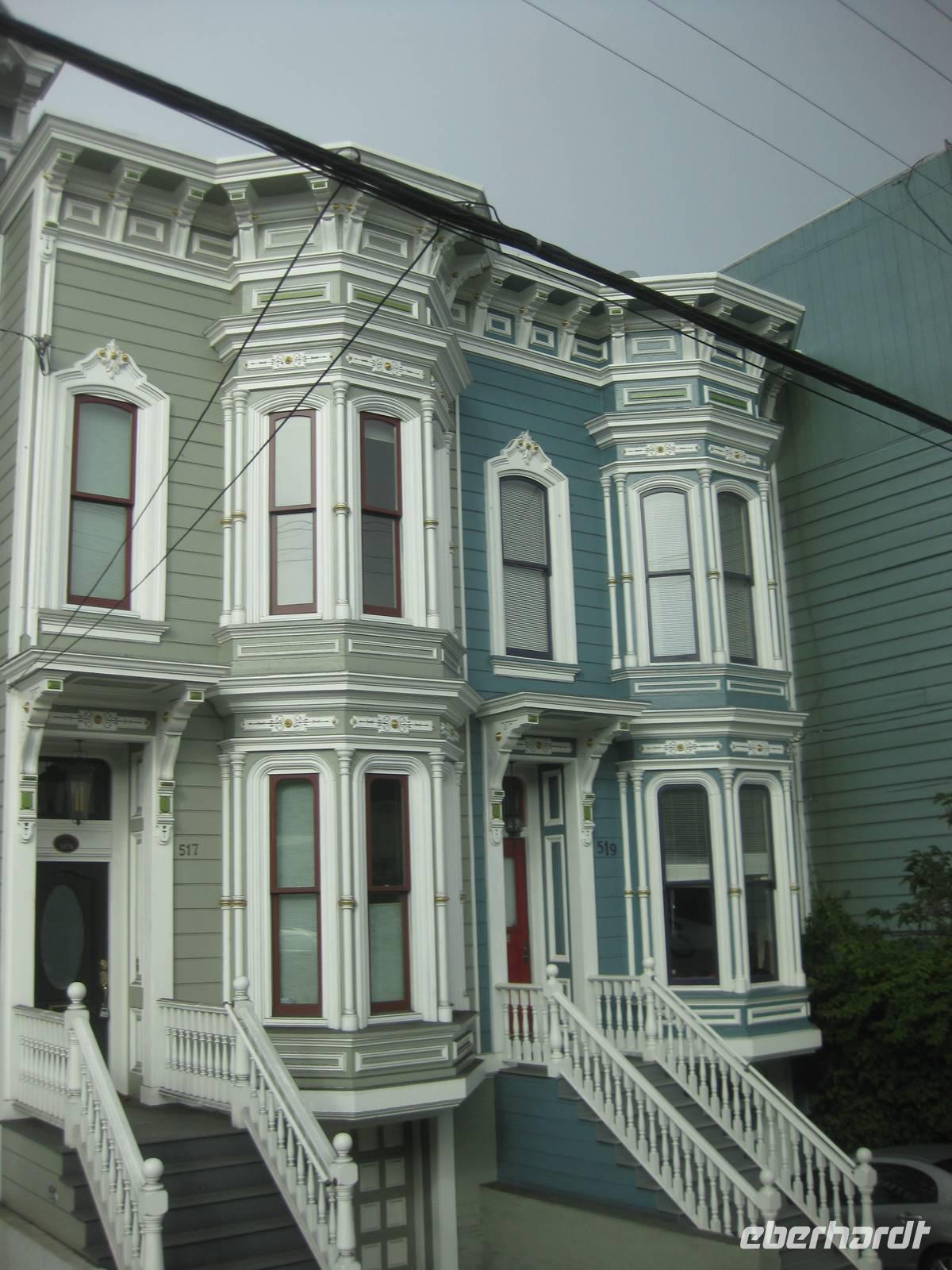 Wenn wir am Fährterminal ankommen ist Derrick mit dem Bus auch schon da. Wir beginnen unsere Stadtrundfahrt am Fährhafen mit den unzähligen Piers. Die Kreuzfahrer legen auch hier an. Leider ist keiner da. Während unserer Stadtrundfahrt sehen wir Chinatown, Union Square, das Civic Center mit City Hall (Rathaus), die für San Francisco typischen Victorianischen Holzhäuser "Painted Ladies", das Hippie-Viertel, .... Von den Twin Peaks aus können wir leider nicht auf die Stadt blicken. Sie hüllt sich noch in Wolken ein. Dann fahren wir am Golden Gate Park entlang und kommen schließlich zur Golden Gate Bridge. Hier muss natürlich erst einmal ein Foto sein. Dann laufen wir ganz gemütlich über die Golden Gate Bridge. Ein Traum geht für viele in Erfüllung! Und zurück fahren wir mit dem Bus über die Brücke. Wir fahren bis in die Stadt zum Union Square. Jetzt haben alle Zeit für die individuelle Erkundung der Stadt oder einen Shoppingbummel oder ....