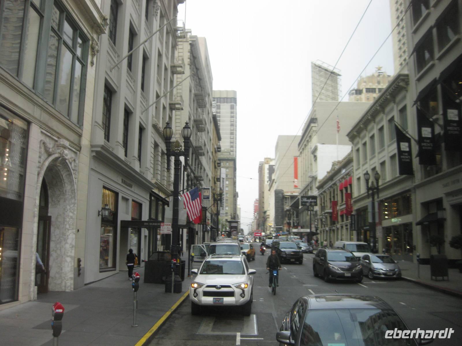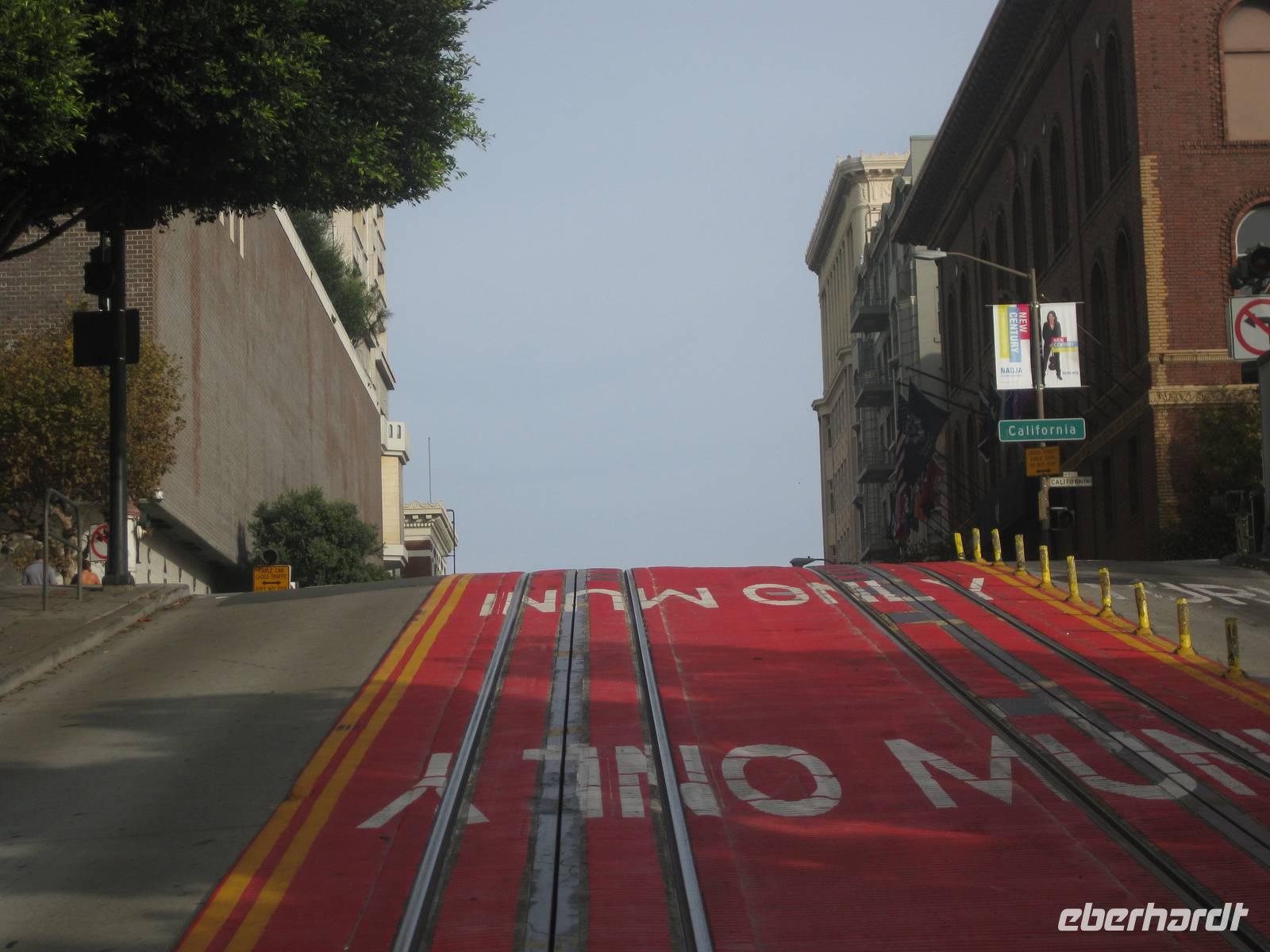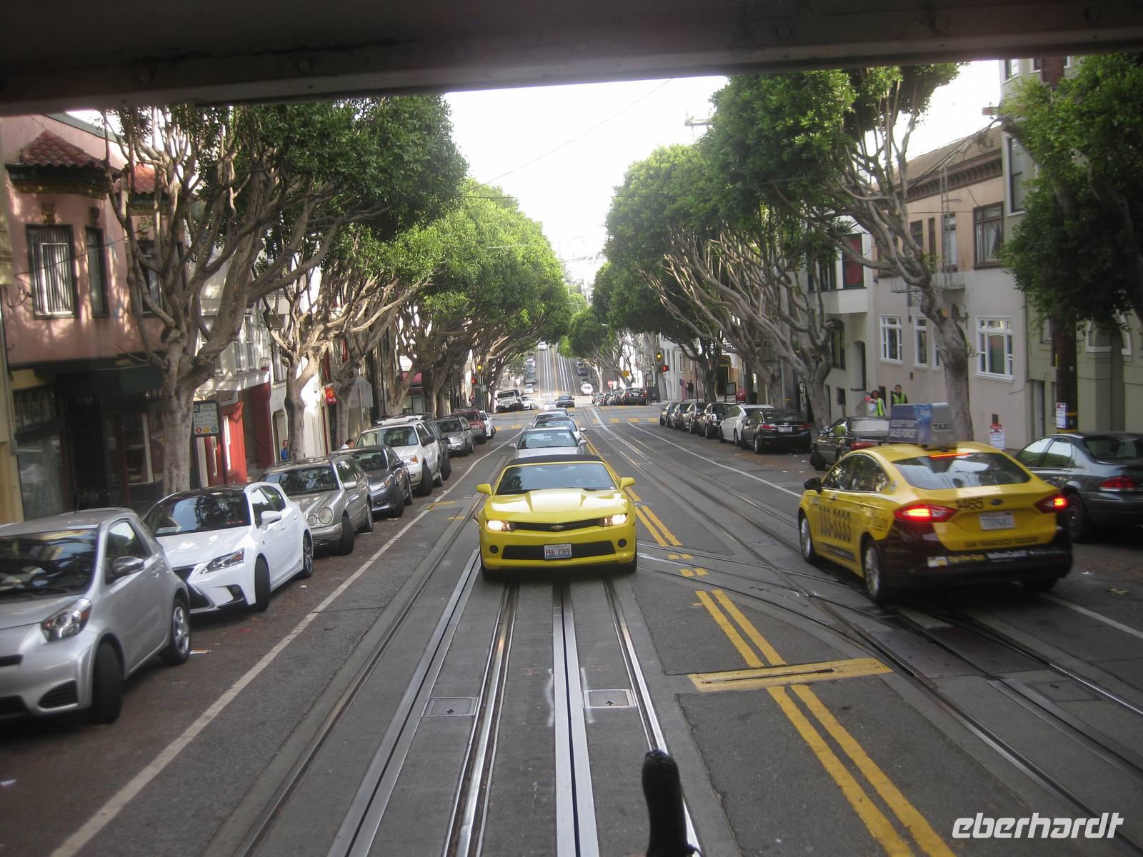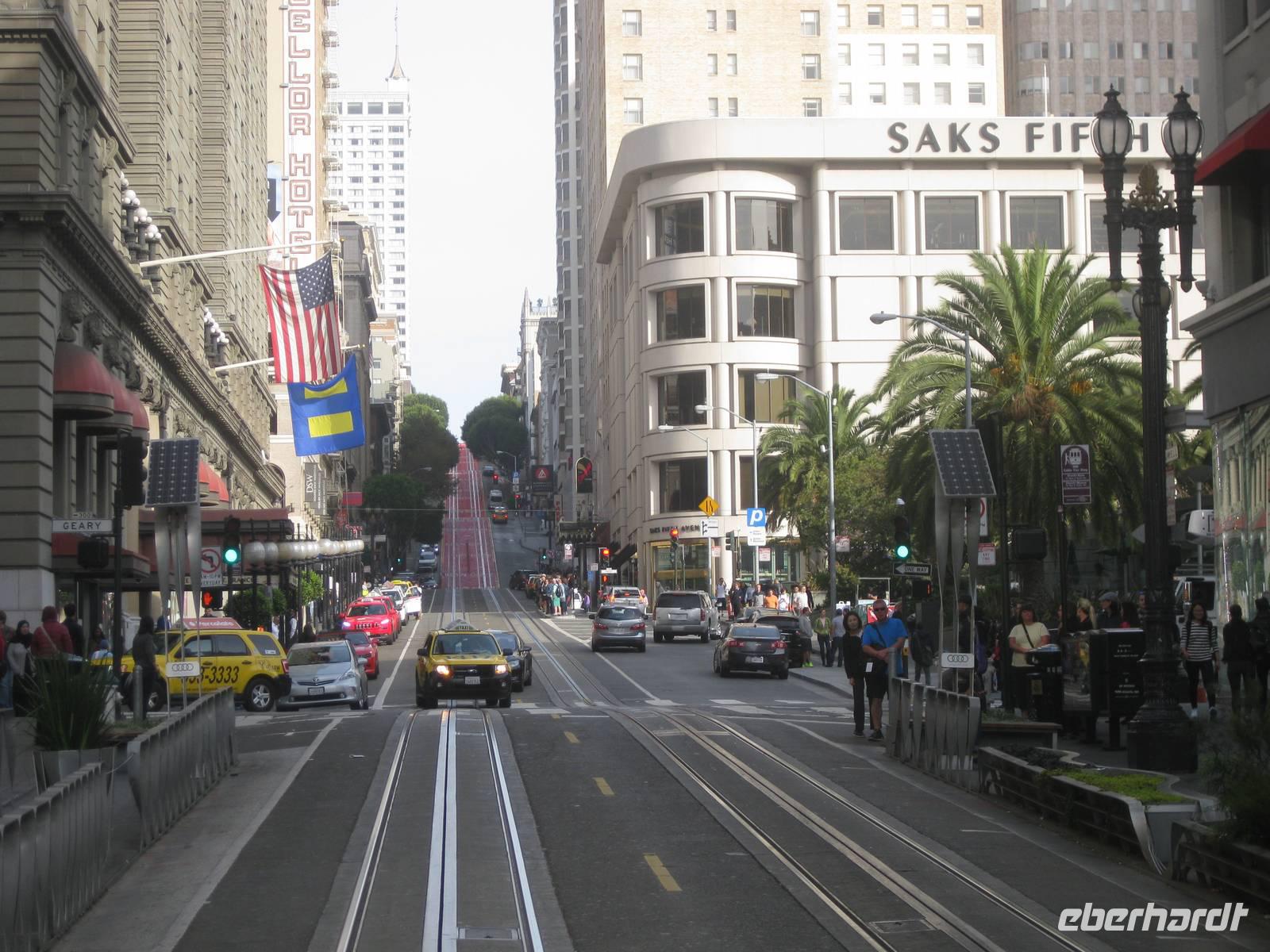 Wir haben noch etwas Zeit am Vormittag. Diese nutzen wir noch für eine Fahrt mit der Cable Car. Wir laufen vom Hotel bis zur Lombard Street, steigen dort in die Cable Car und fahren bis zur Union Square mit. Und von dort laufen wir wieder zum Hotel zurück. Alle kommen mit. Ein schöner Abschluss.